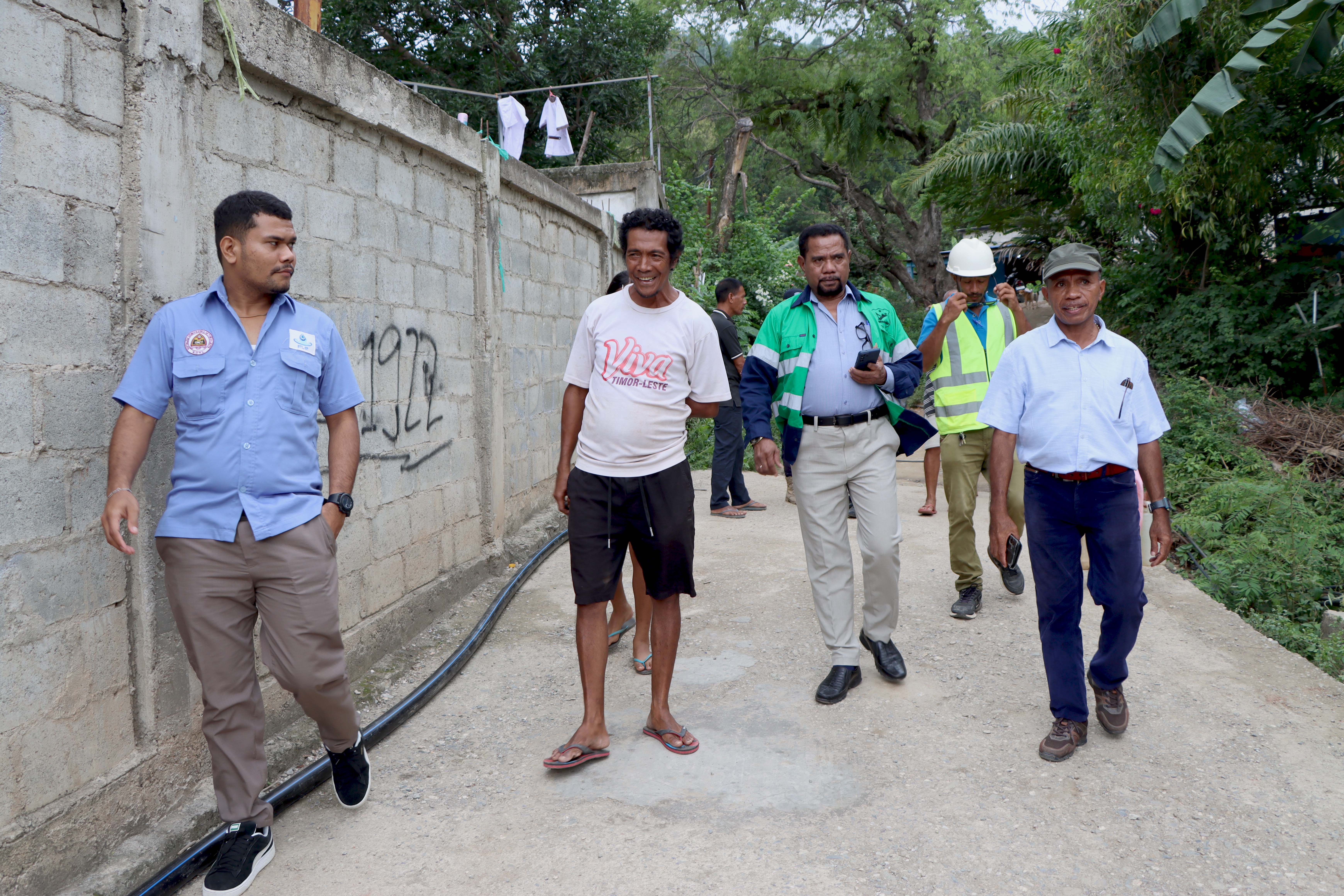 Durante iha terrenu, Vise-Prezidente KE BTL, E.P ba Asuntu Tékniku husu ba abitante sira atu pasiénsia no asesu provizória bee hosi torneira públika ne’ebé ekipa instala ona, nune’e hodi servisu melloramentu ne’e to’o finaliza.