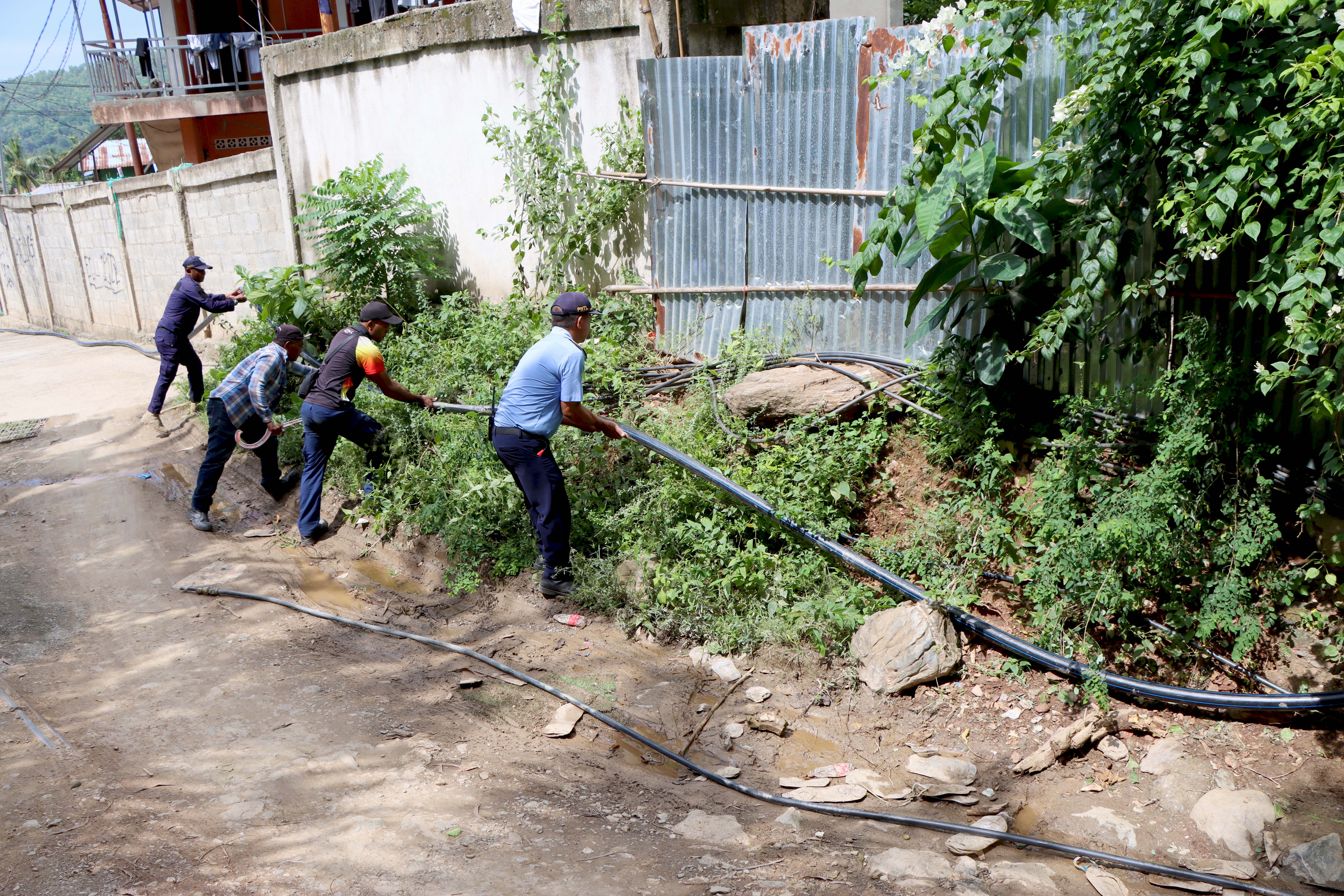 No iha parte lorokraik, ekipa kontinua instala liña distribuisaun iha Becusse, parte semitériu Becusse oin, hodi prepara halo kanalizasaun bee ba aldeia Becusse Kraik.