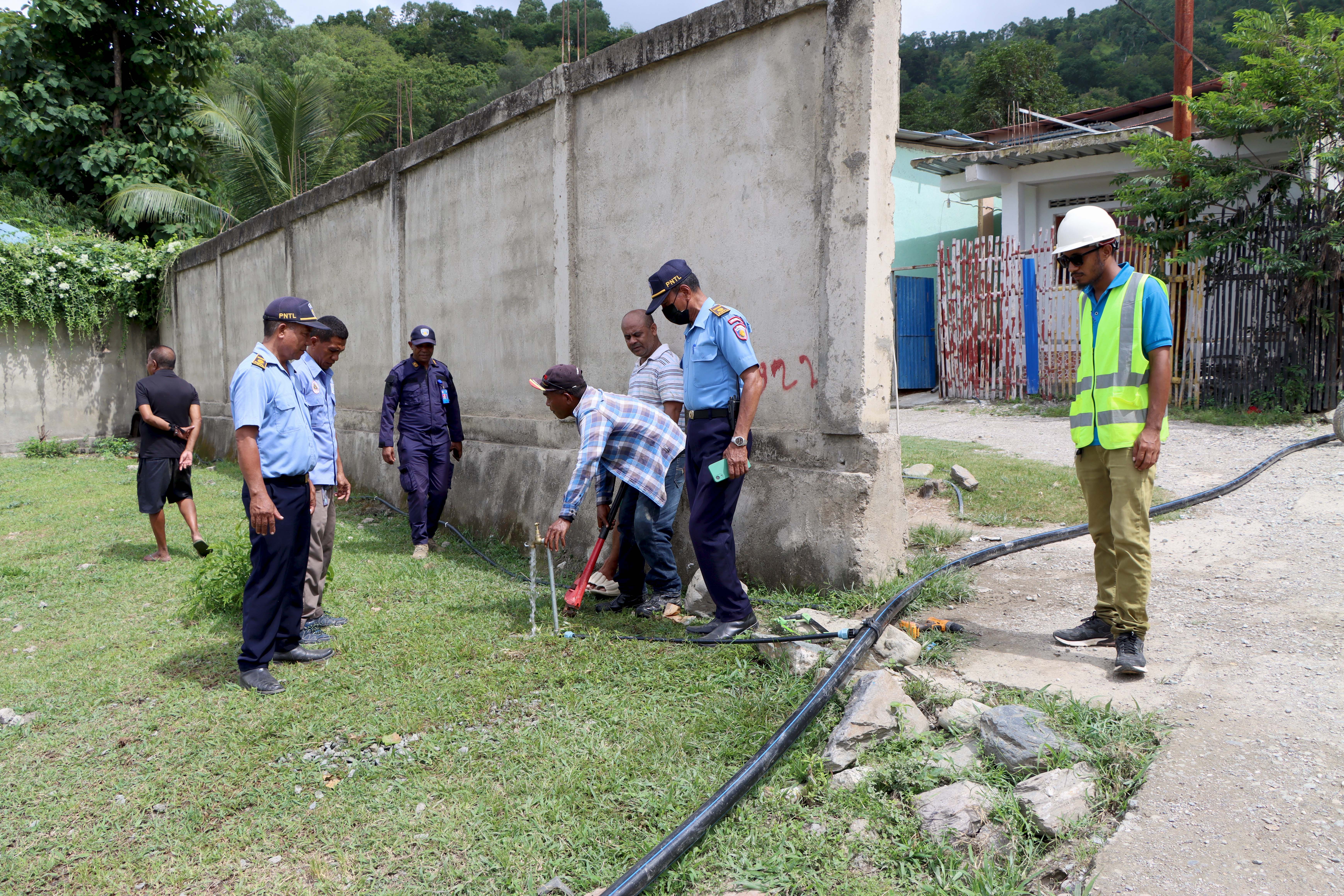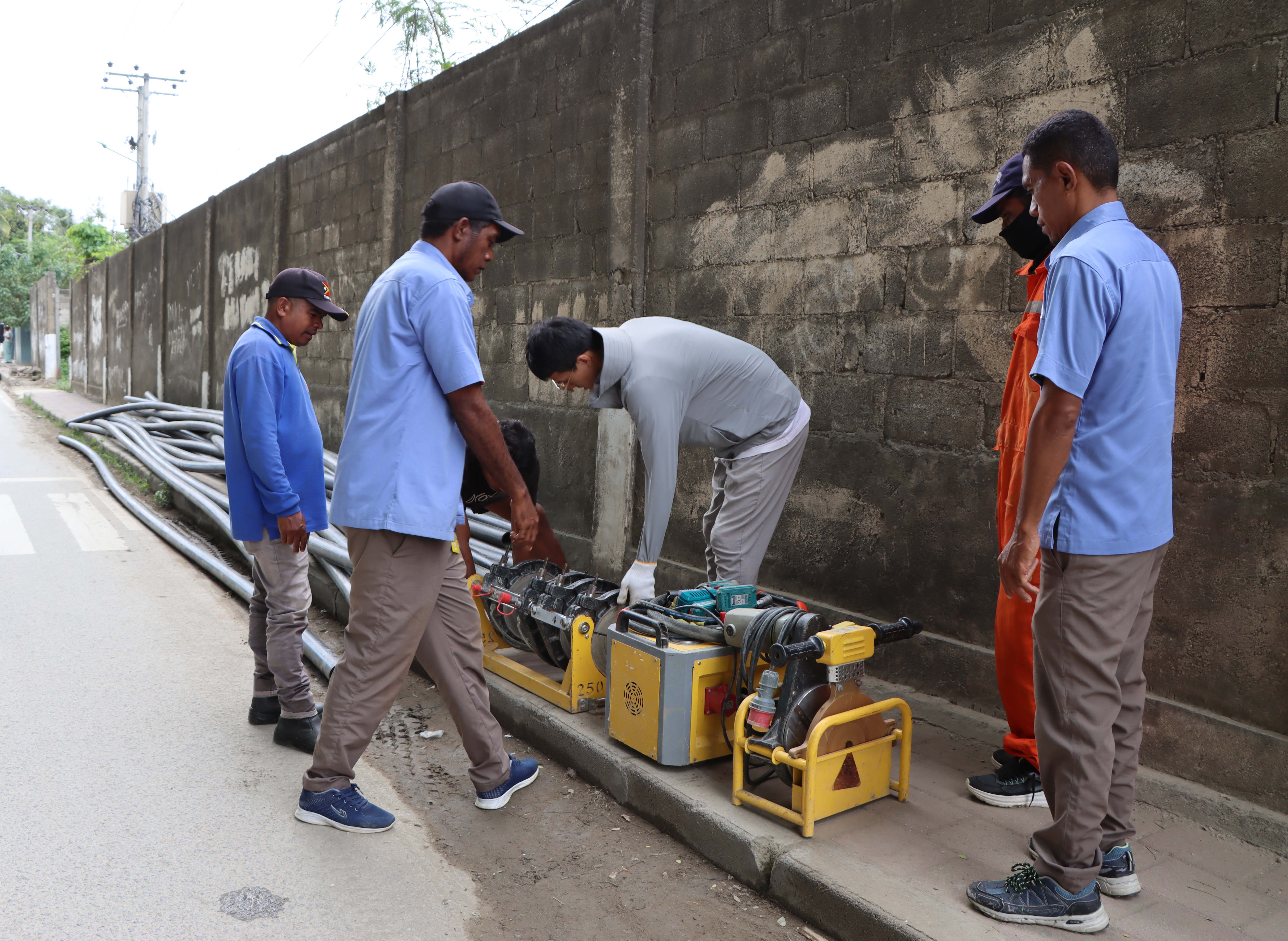 Aldende ne’e, tékniku sira mos halo pipe services kanu APC 150mm ba PE NOD 90mm no dop APC 150mm iha sede suku Becora nian.