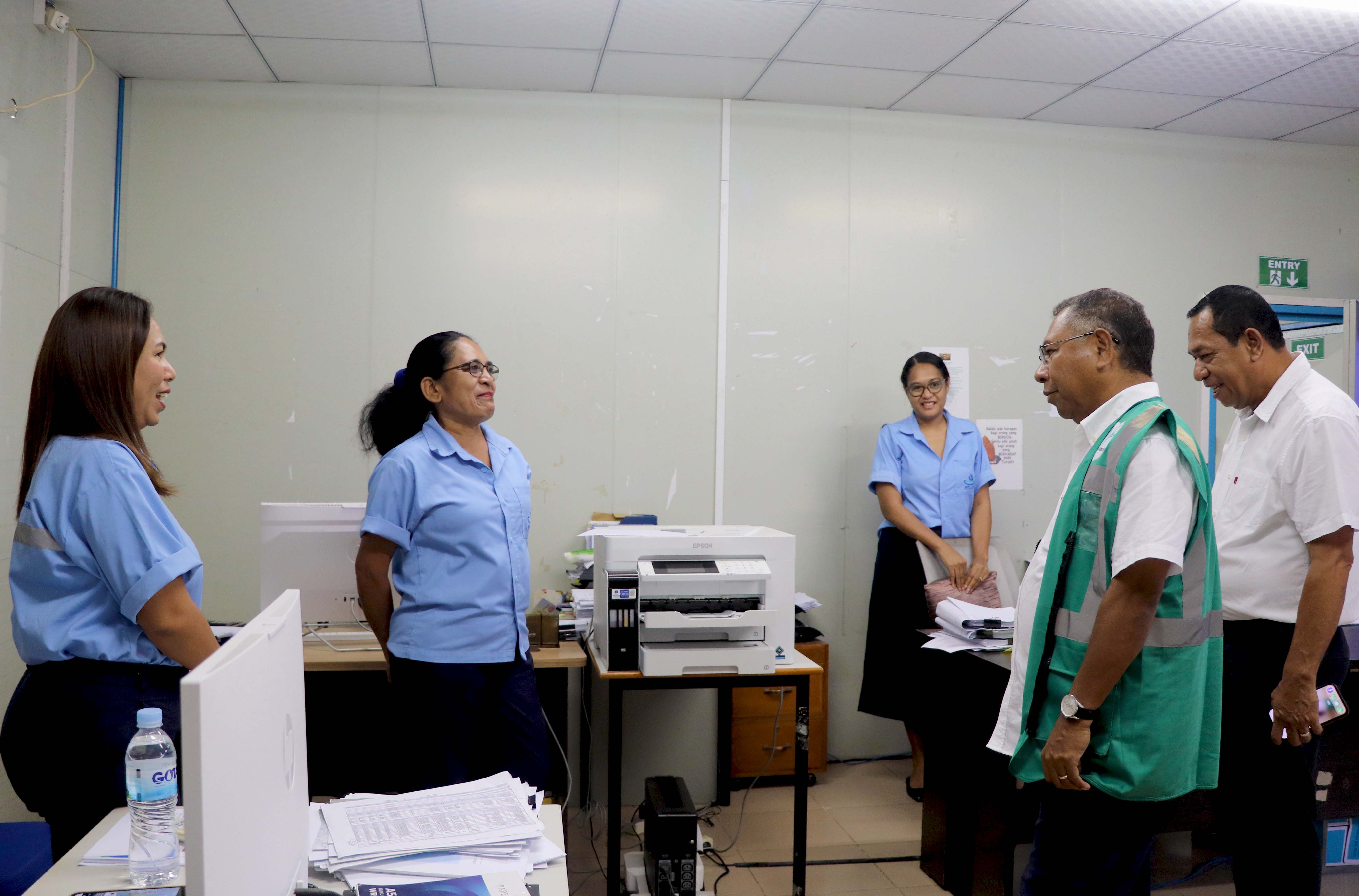 Díli, 27/10/2025, S.E Ministru Obras Públikas (MOP), Samuel Marçal hala’o vizita vizita traballu mai Bee Timor-Leste, Empreza Públika (BTL, E.P) nomos bá Project Management Unit Water and Sanitation (PMU WatSan), iha Caicoli.