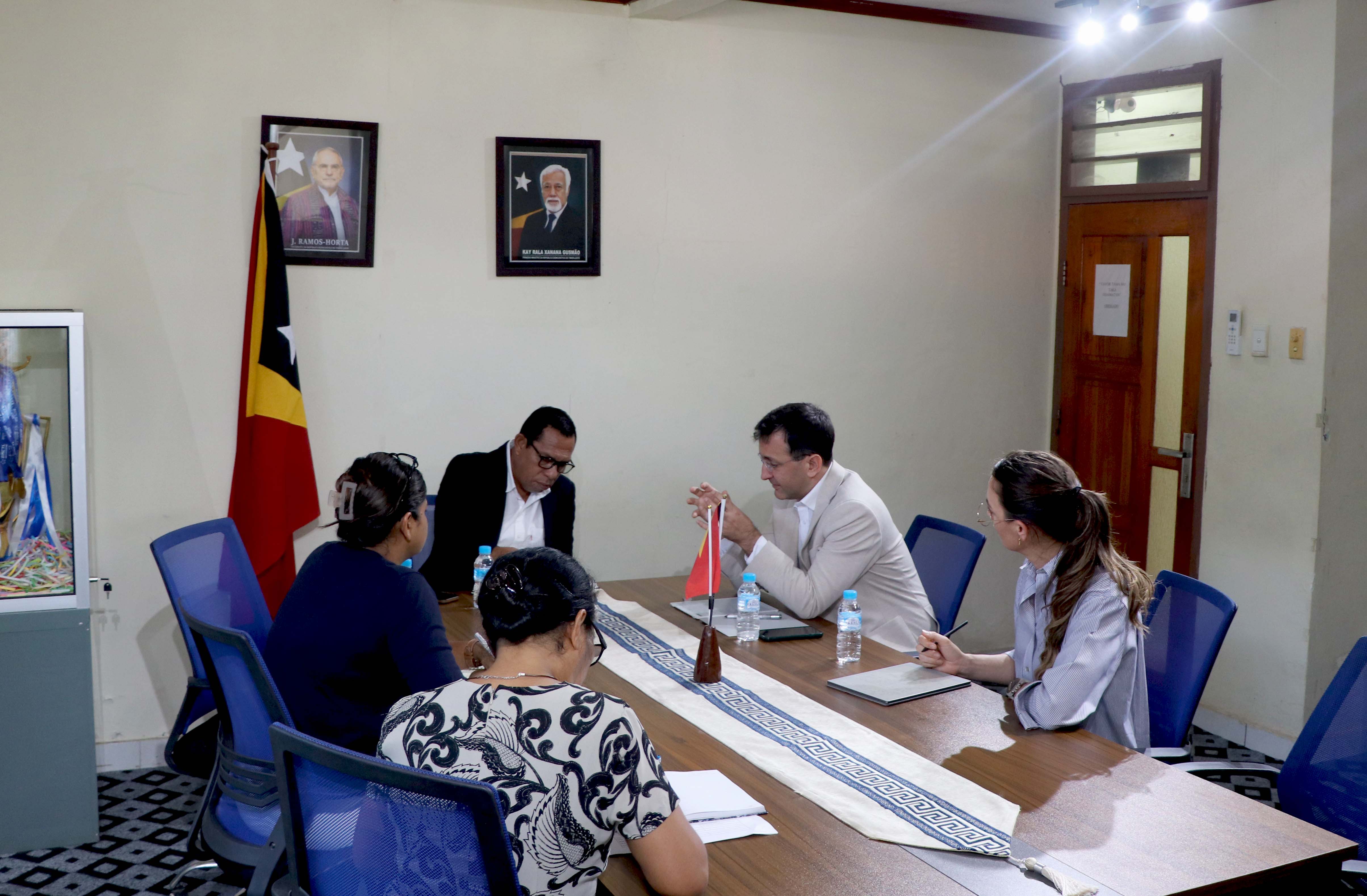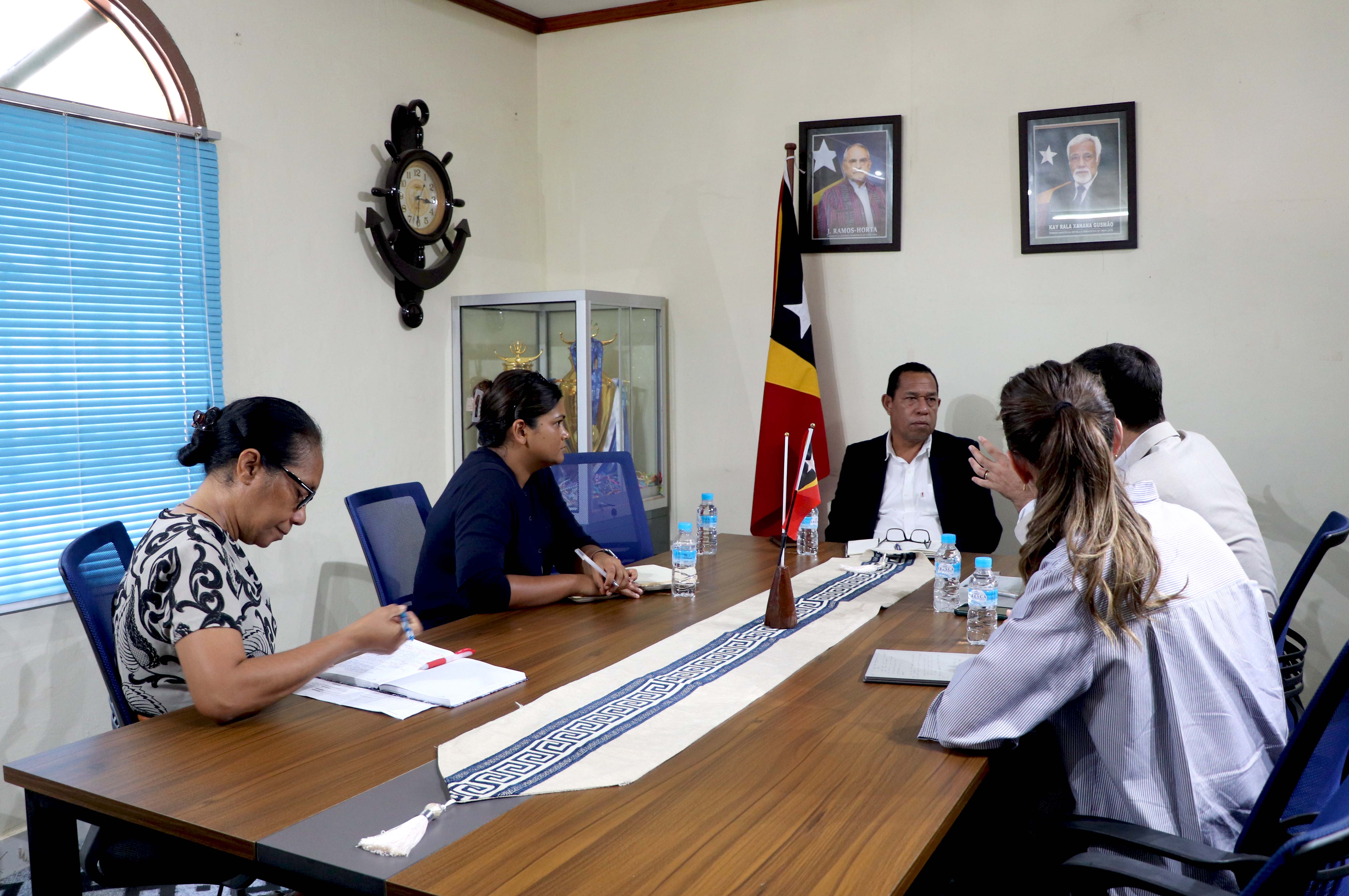 Díli, 27/10/2025. Prezidente Komisaun Ezekutiva (KE) Bee Timor-Leste, Empreza Públika (BTL, E.P), Sr. Gustavo da Cruz enkontru ho Reprezentante Rezidente Grupu Banku Mundiál nian iha Timor-Leste (TL), Sr. David Freedman ho ekipa, iha sala reuniaun Ezekutivu, BTL, E.P, Caicoli.