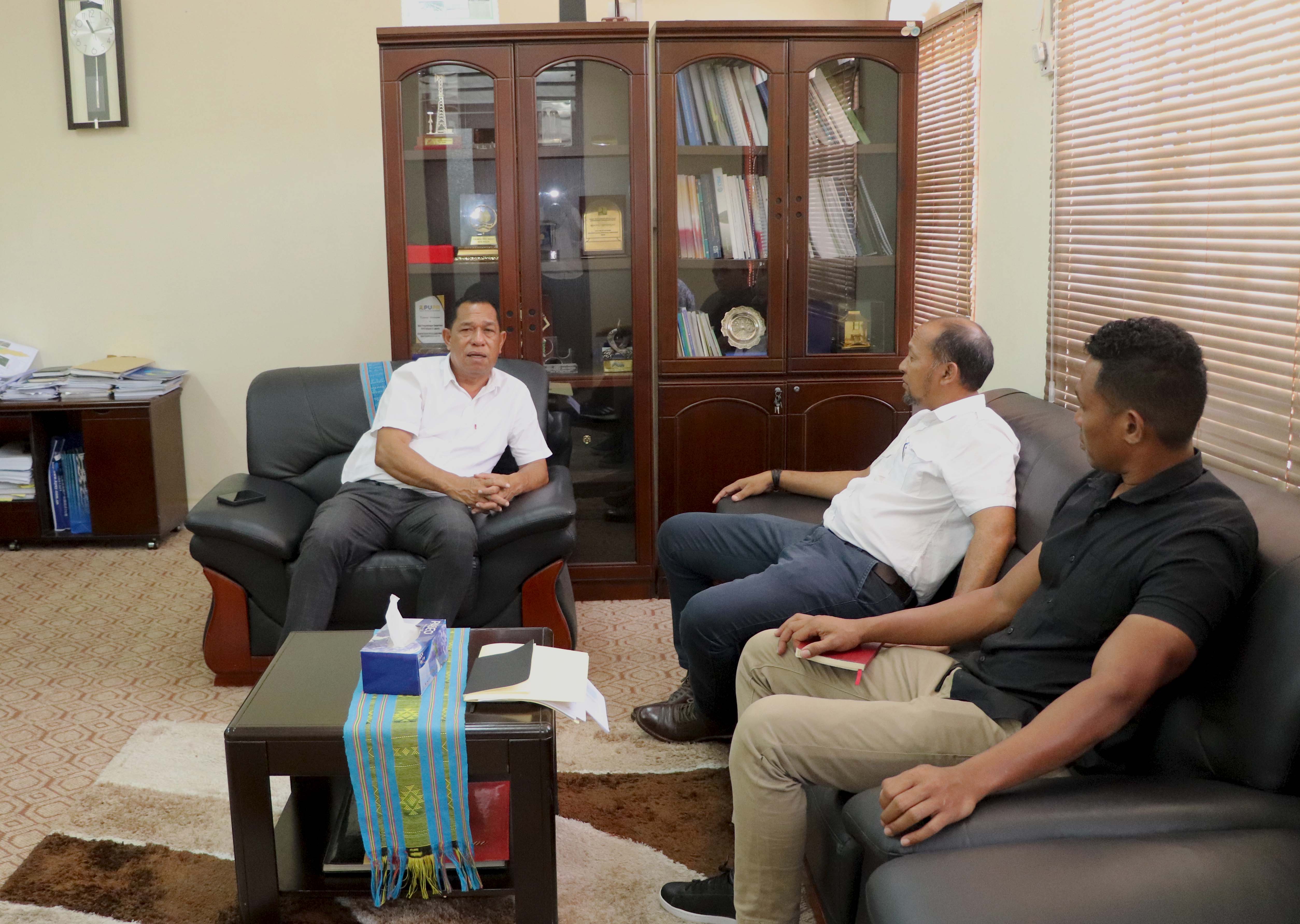 Díli, 10/11/2025. Prezidente Komisaun Ezekutiva (KE) Bee Timor-Leste, Empreza Públika (BTL, E.P), Gustavo da Cruz enkontru ho Diretór Diresaun Nasionál ba Regulasaun Bee no Saneamentu (DNRAS, sigla portugés) ho tékniku DNRAS nian, iha Prezidente nia knaar fatin BTL, E.P, Caicoli