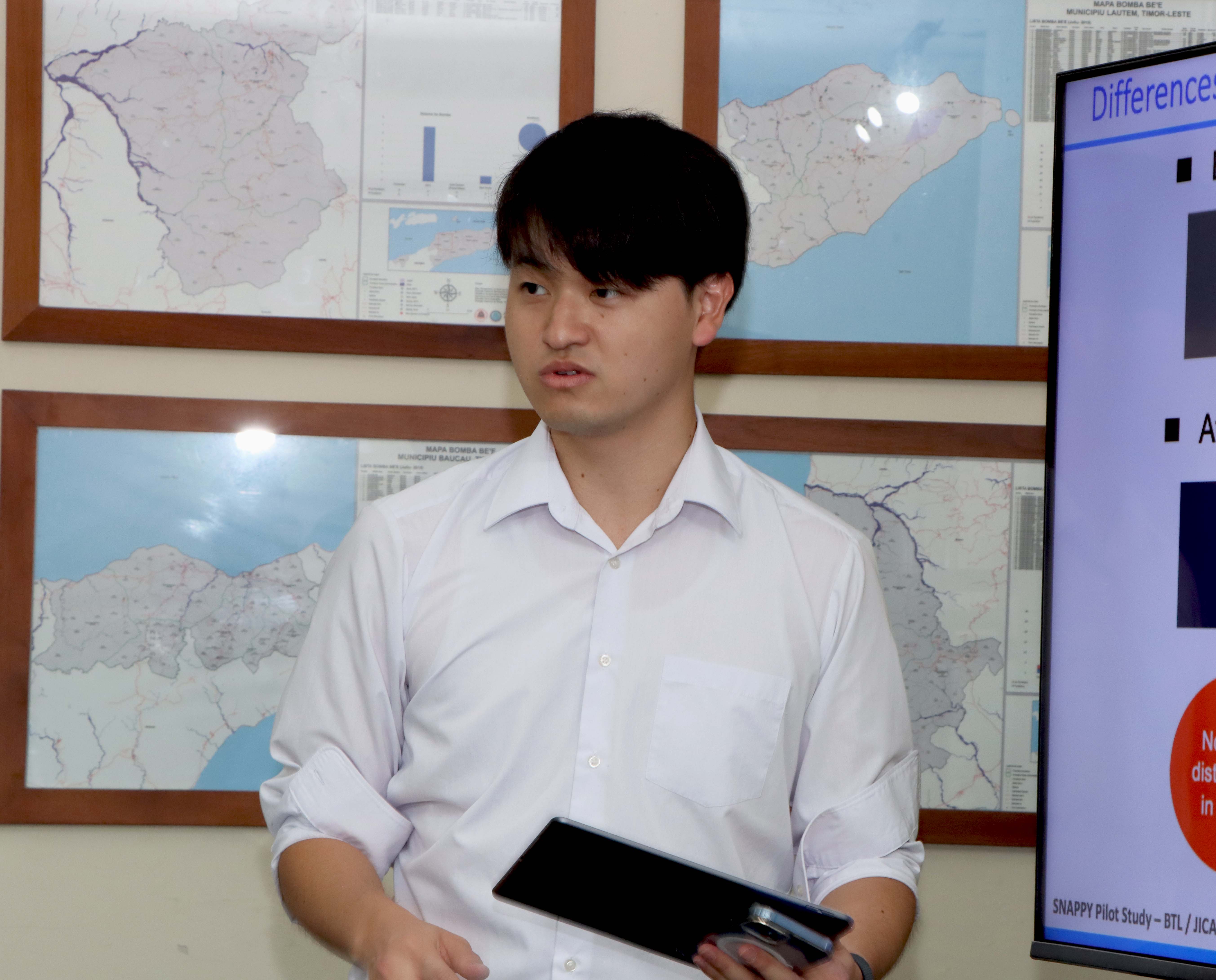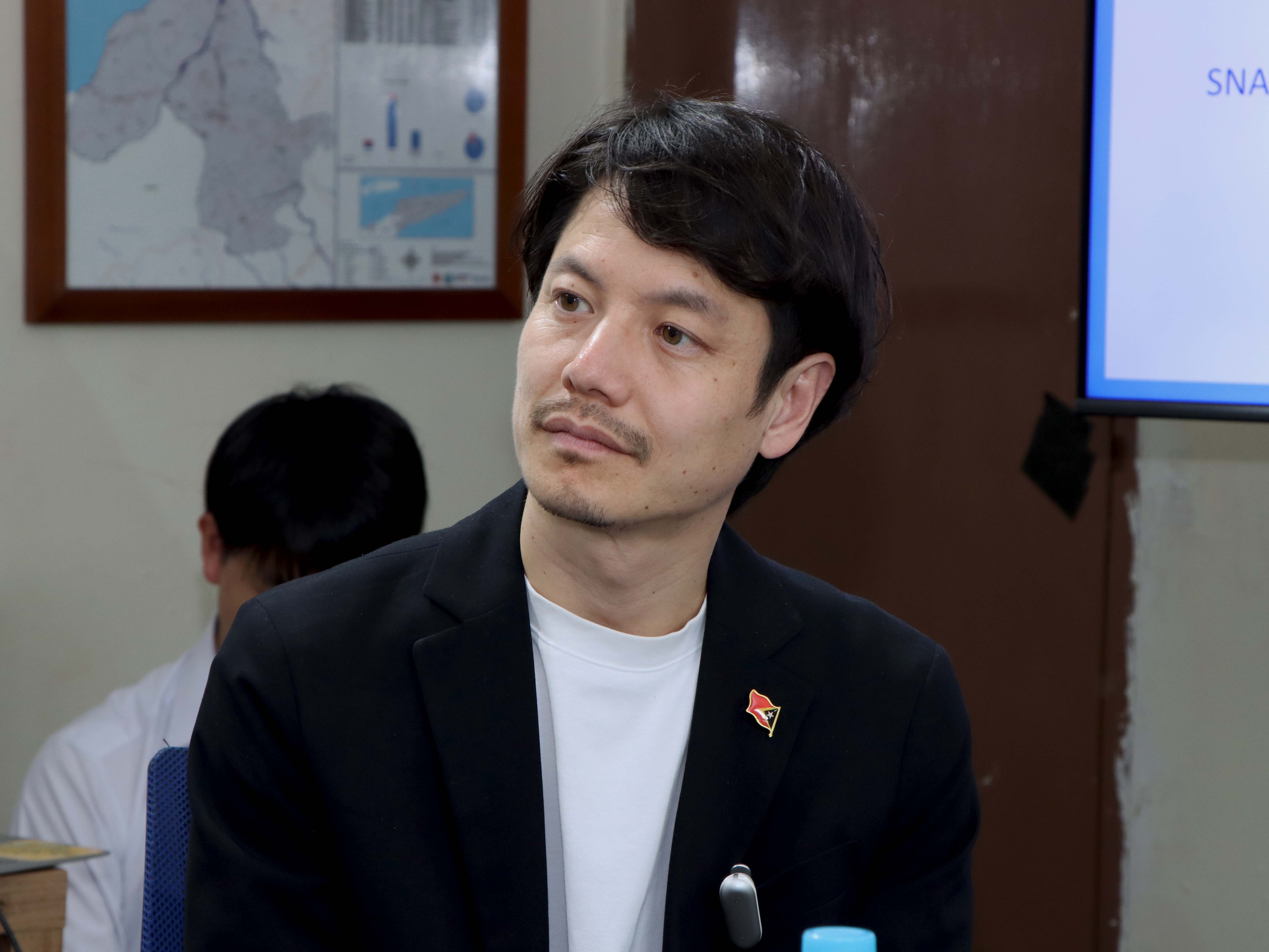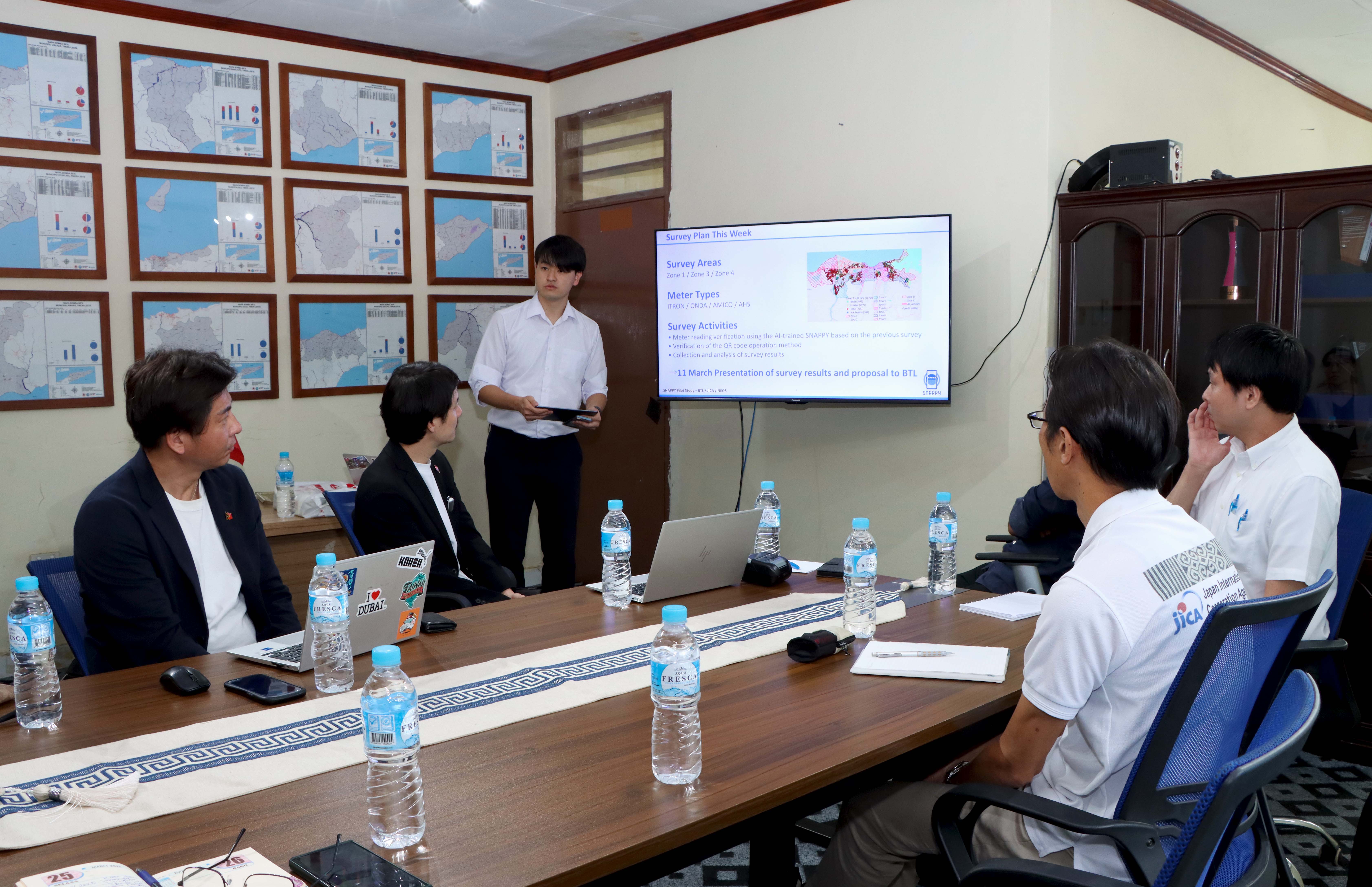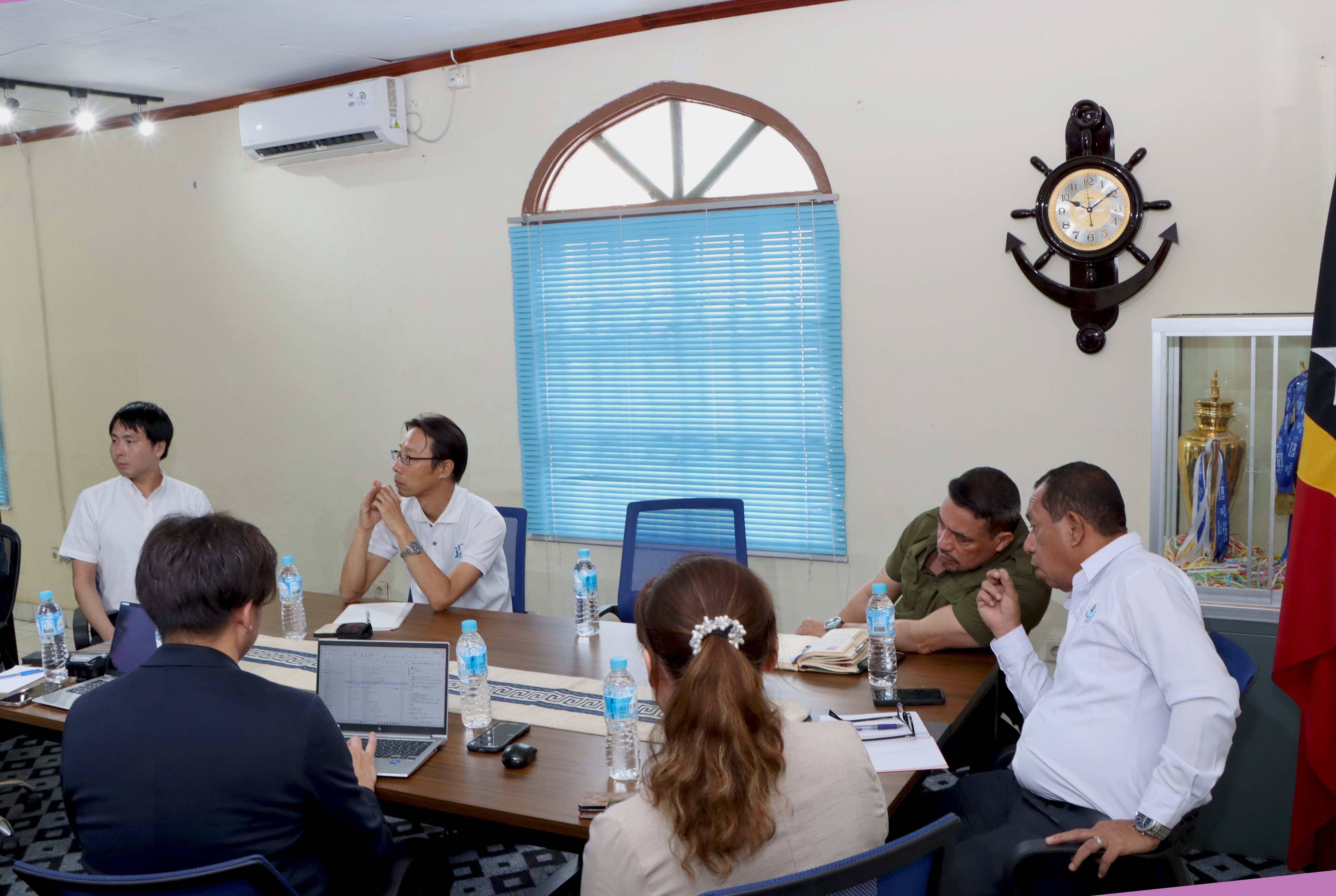 Díli, 09 Marsu 2026. Prezidente Komisaun Ezekutiva (KE) Bee Timor-Leste, Empreza Públika (BTL, E.P), Gustavo da Cruz ho Vise-Prezidente KE BTL, E.P ba Asuntu Korporativu, Manuel Tomas Amaral de Carvalho, simu vizita no enkontru ho ekipa hosi JICA ๐ป๐๐๐๐๐ข๐๐๐ก๐๐ no JICA Timor-Leste inklui empreza NEOS hosi Japaun, iha sala reuniaun Ezekutivu BTL, E.P sentrál, Caicoli.