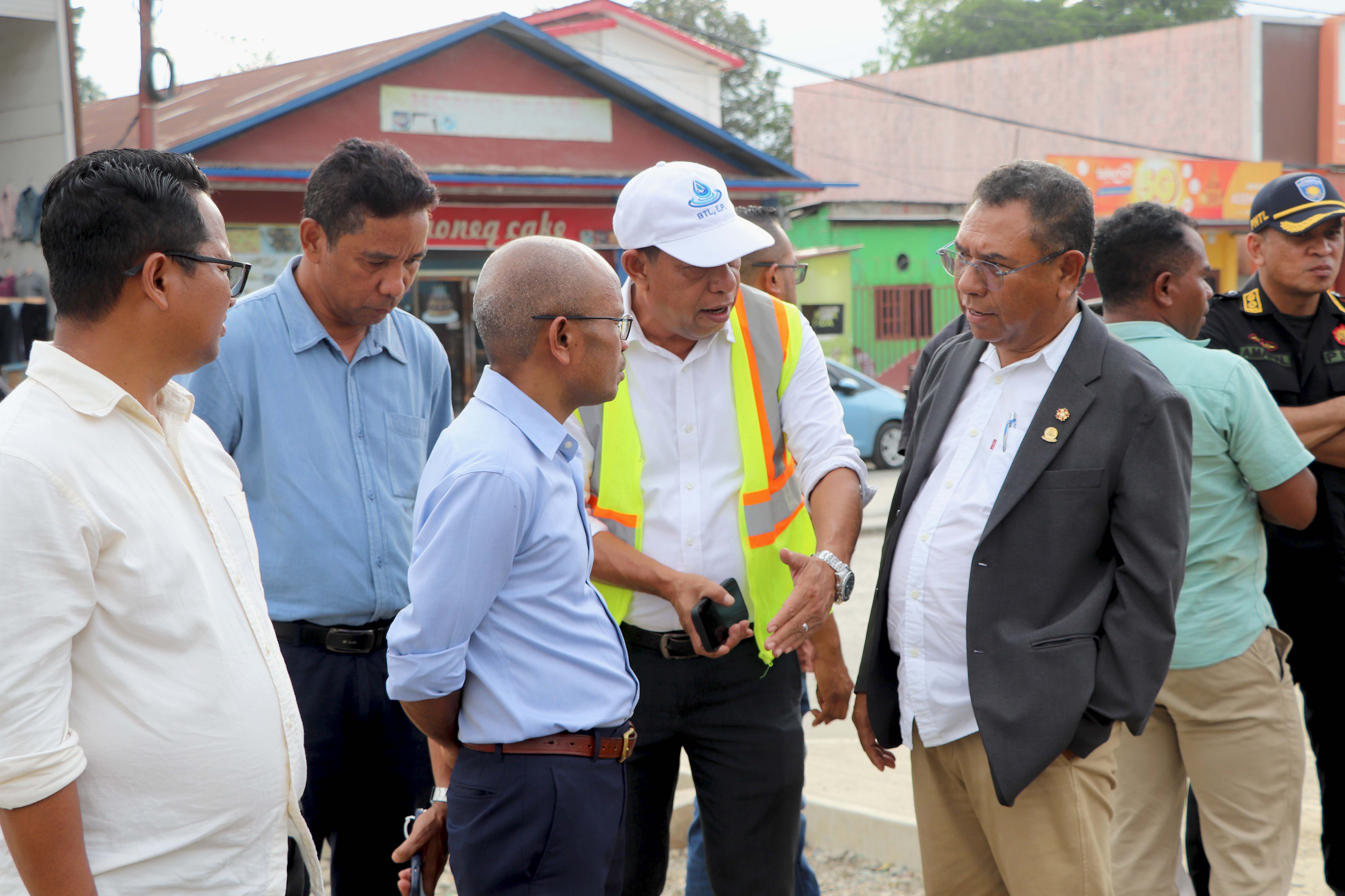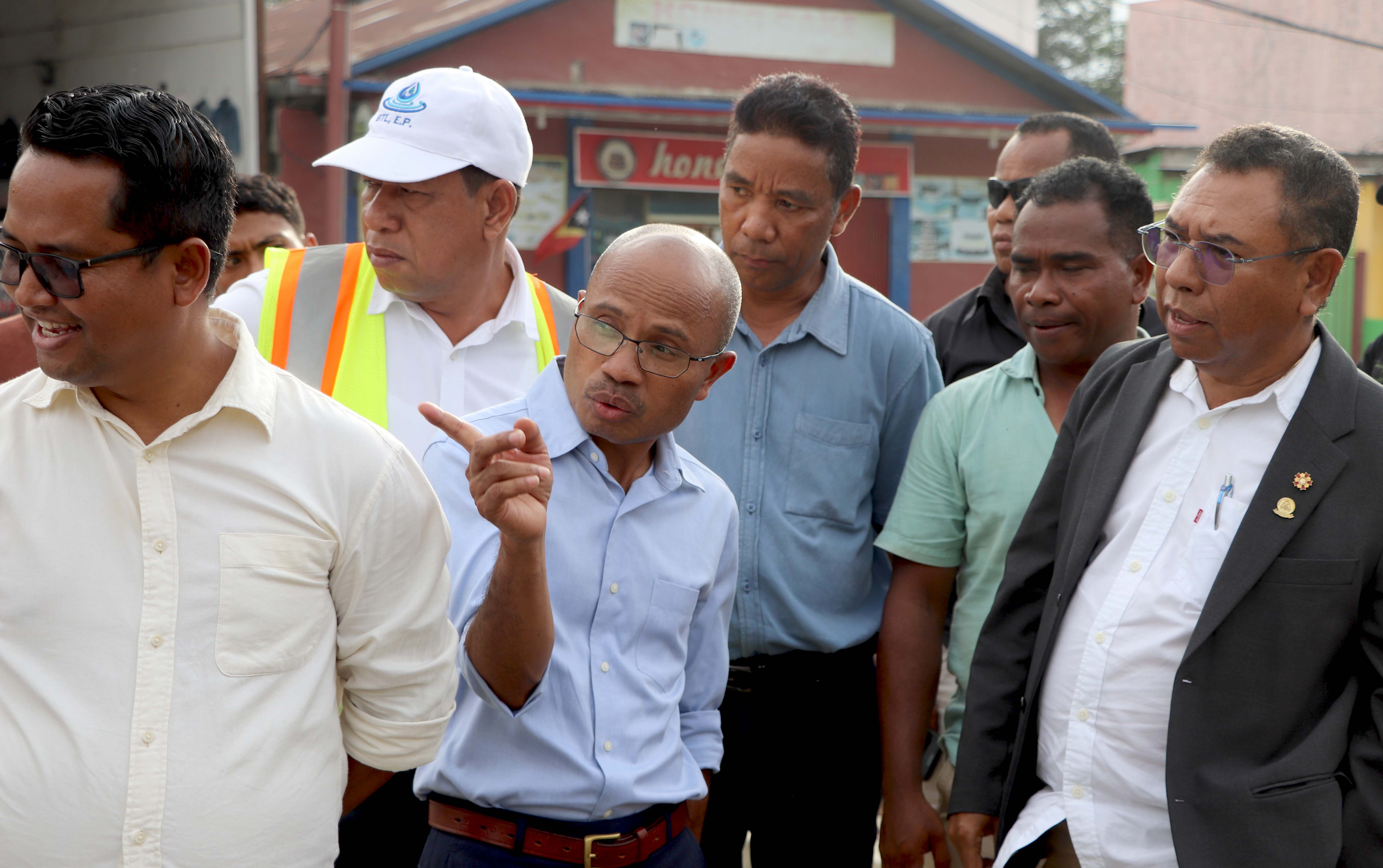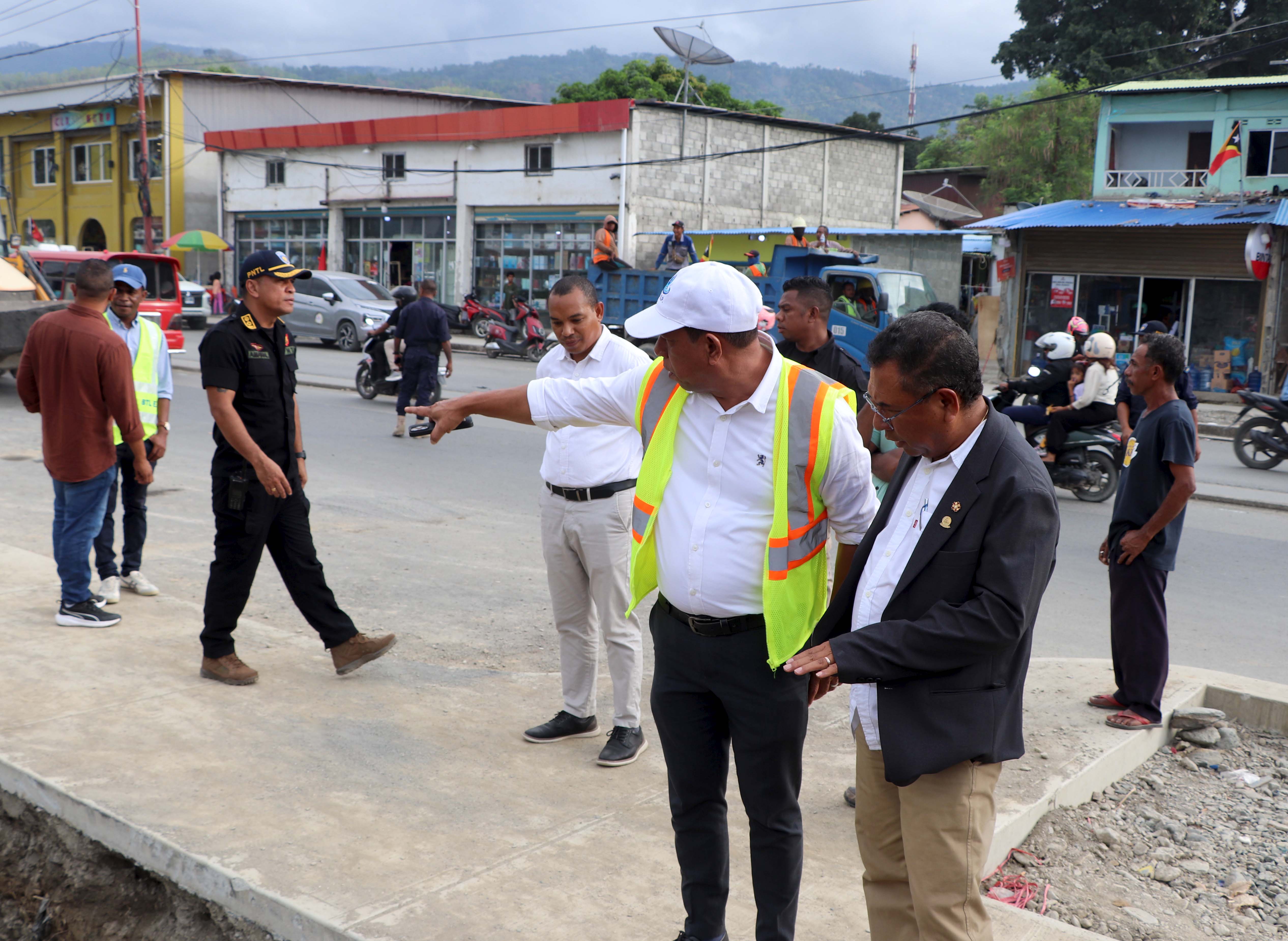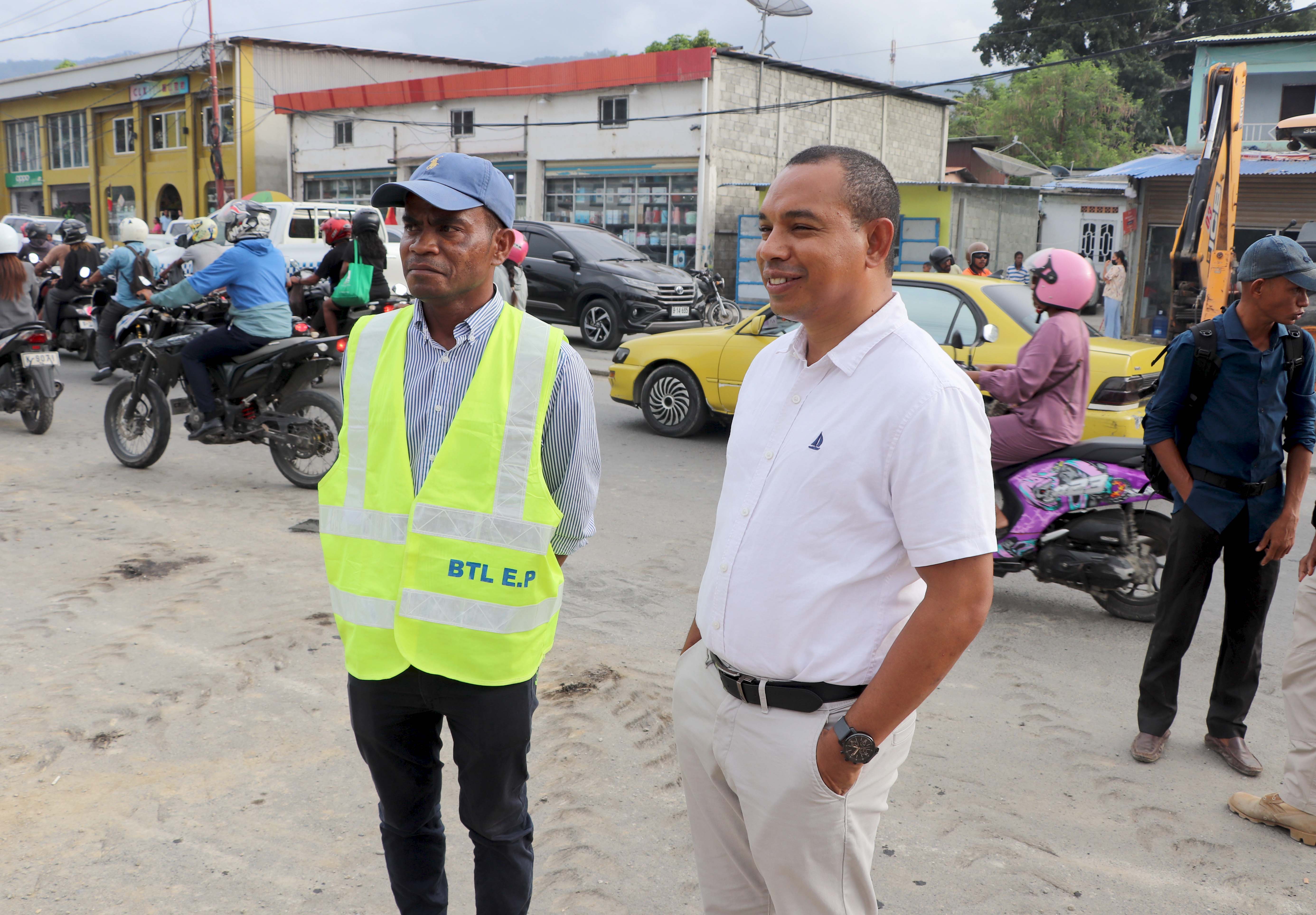 Díli, 18/11/2026. Prezidente Komisaun Ezekutiva Bee Timor-Leste, Empreza Públika (BTL, E.P), Gustavo da Cruz ho Diretór João da Cruz Cardoso no Jestór Infraestrutura hamutuk ho Prezidente Komisaun EDTL, E.P ho ekipa akompaña S.E Ministru Obras Públikas (MOP), Samuel Marçal, halo monitorizasaun ba implementasaun projetu pilotu konstrusaun kabu eletrisidade ๐‘†๐‘ข๐‘๐‘ก๐‘’๐‘Ÿ๐‘Ÿ๐‘Ž๐‘›๐‘’ฬ‚๐‘œ, iha diresaun Culuhun bá Becora.