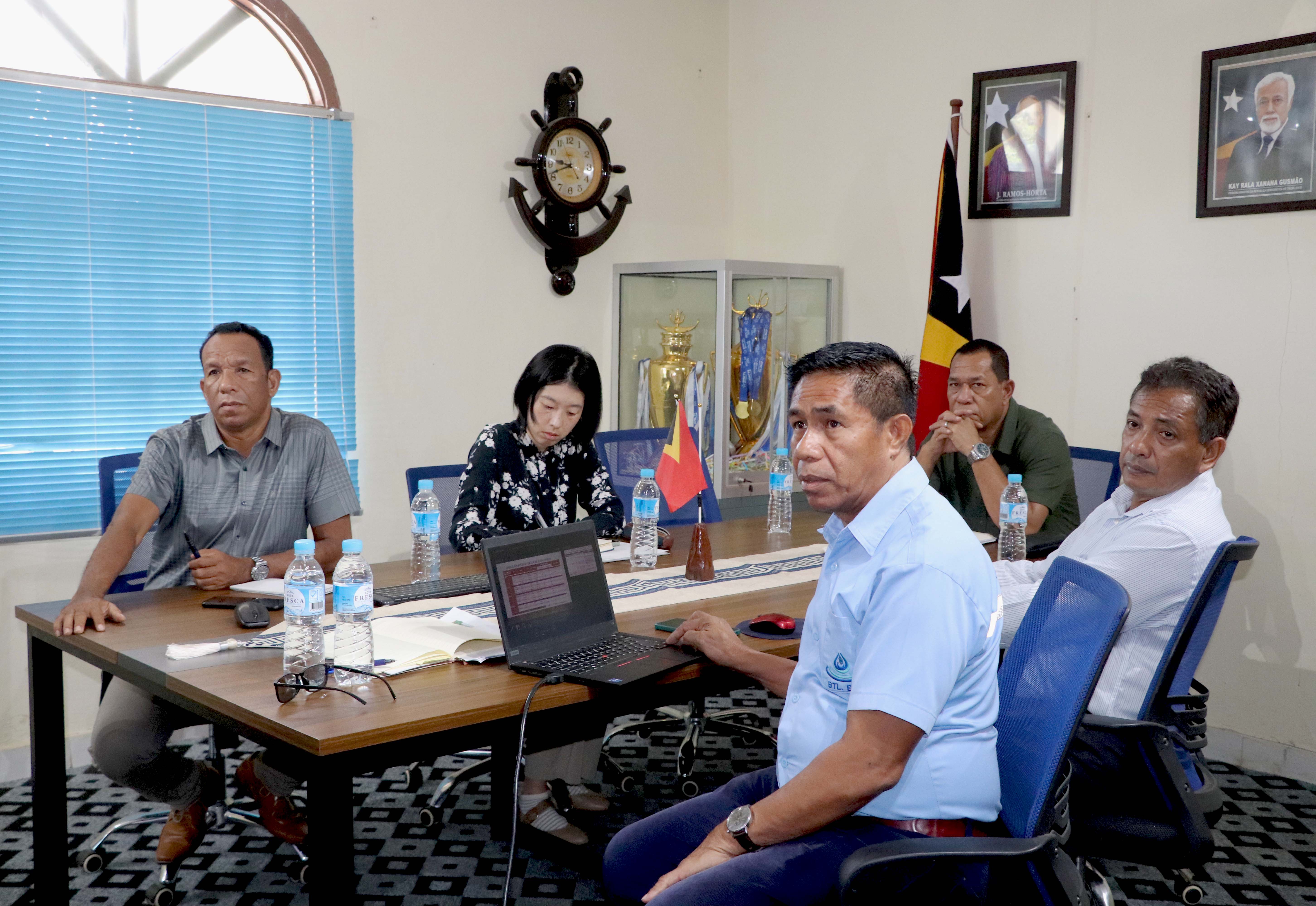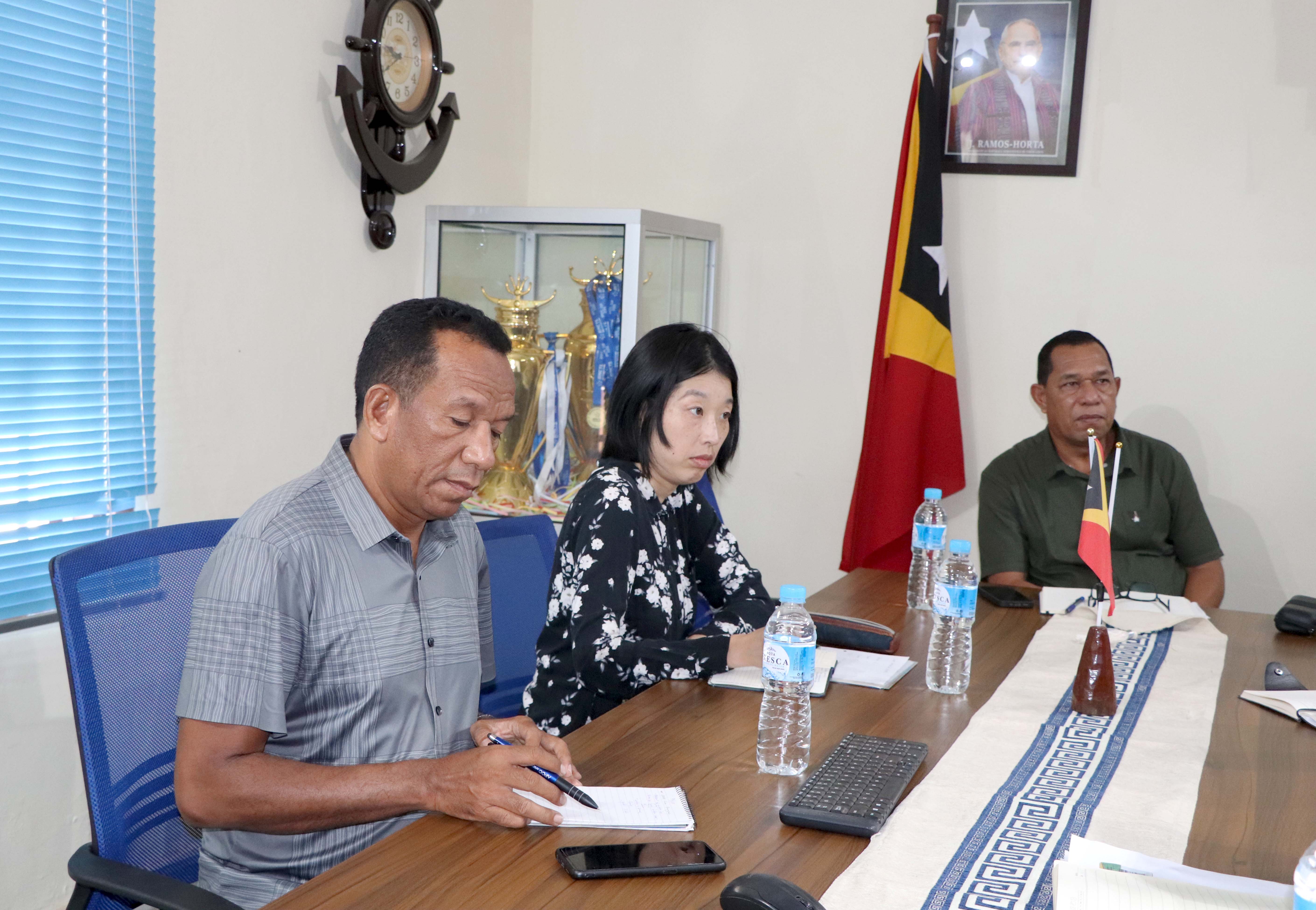 Díli, 02/12/2025. Prezidente Komisaun Ezekutiva (KE) Bee Timor-Leste, Empreza Públika (BTL, E.P), Gustavo da Cruz, akompaña hosi Diretór DOM, Aleixo dos Santos no Diretór DAF, Sidónio Freitas, enkontru ho ekipa hosi parseiru Unicef, kona-bá implementasaun projetu instalasaun tanke rezervatóriu iha Munisípiu haat. Enkontru ne’e rasik, hala’o iha sala reuniaun Ezekutivu BTL, E.P, Caicoli.