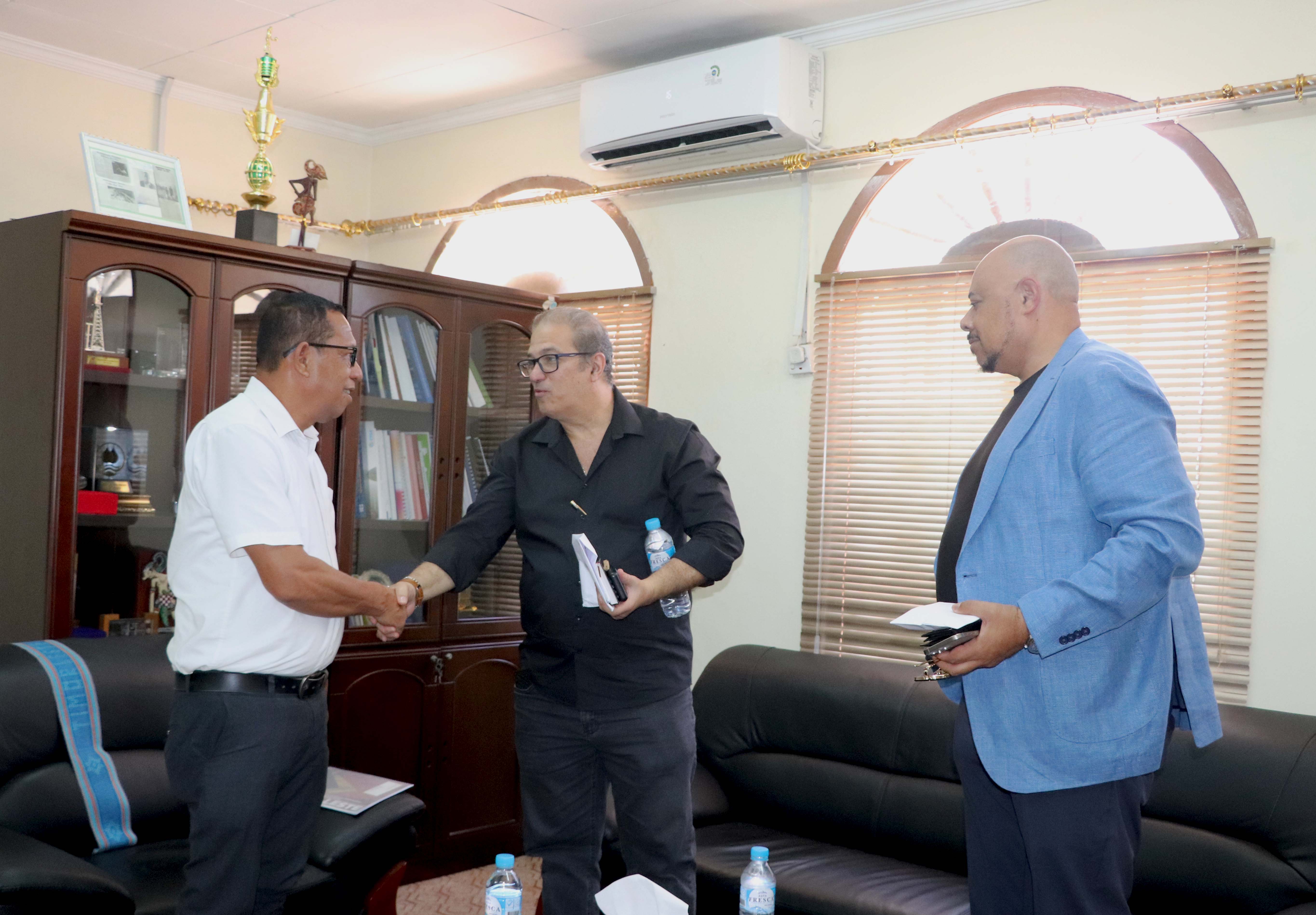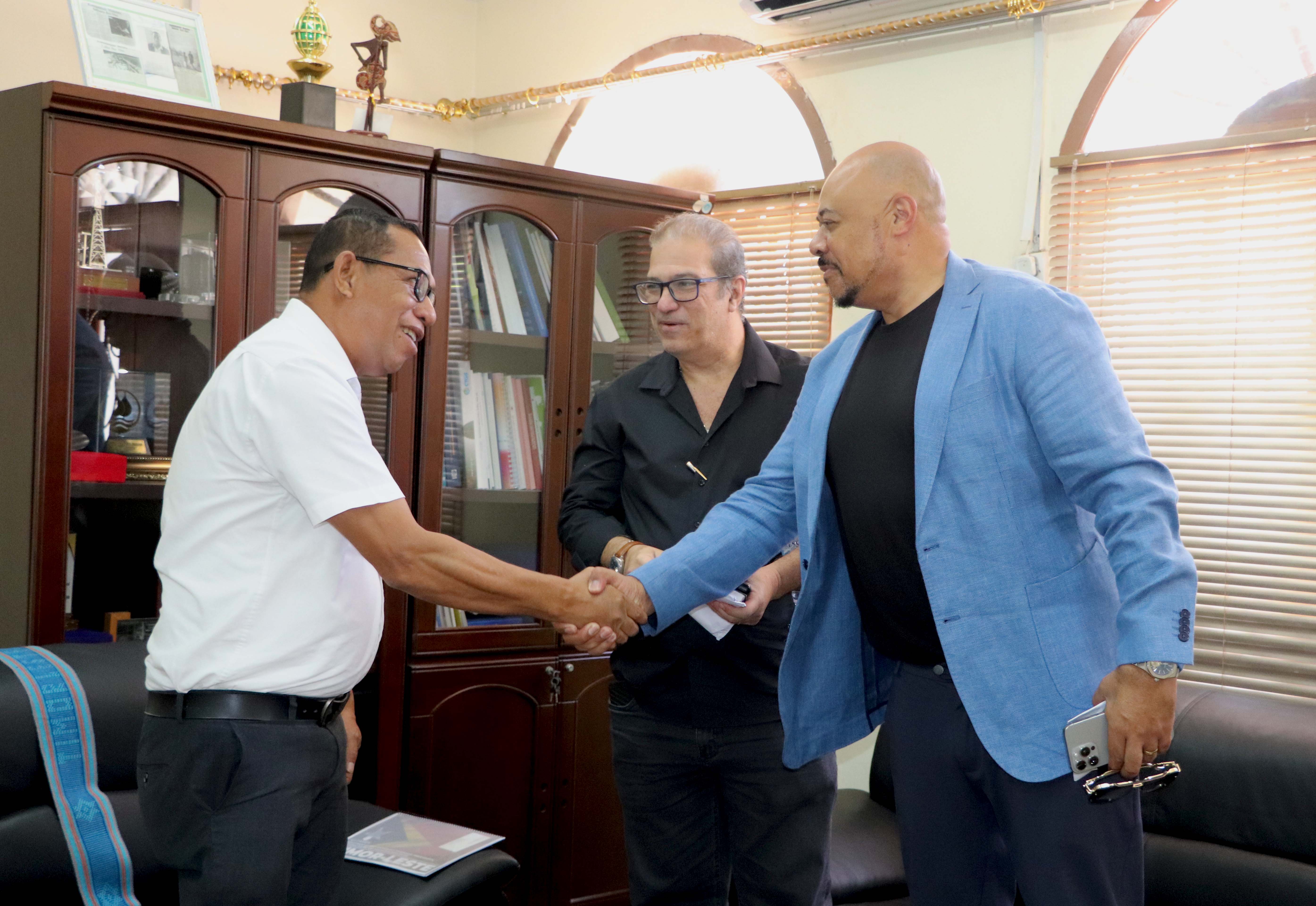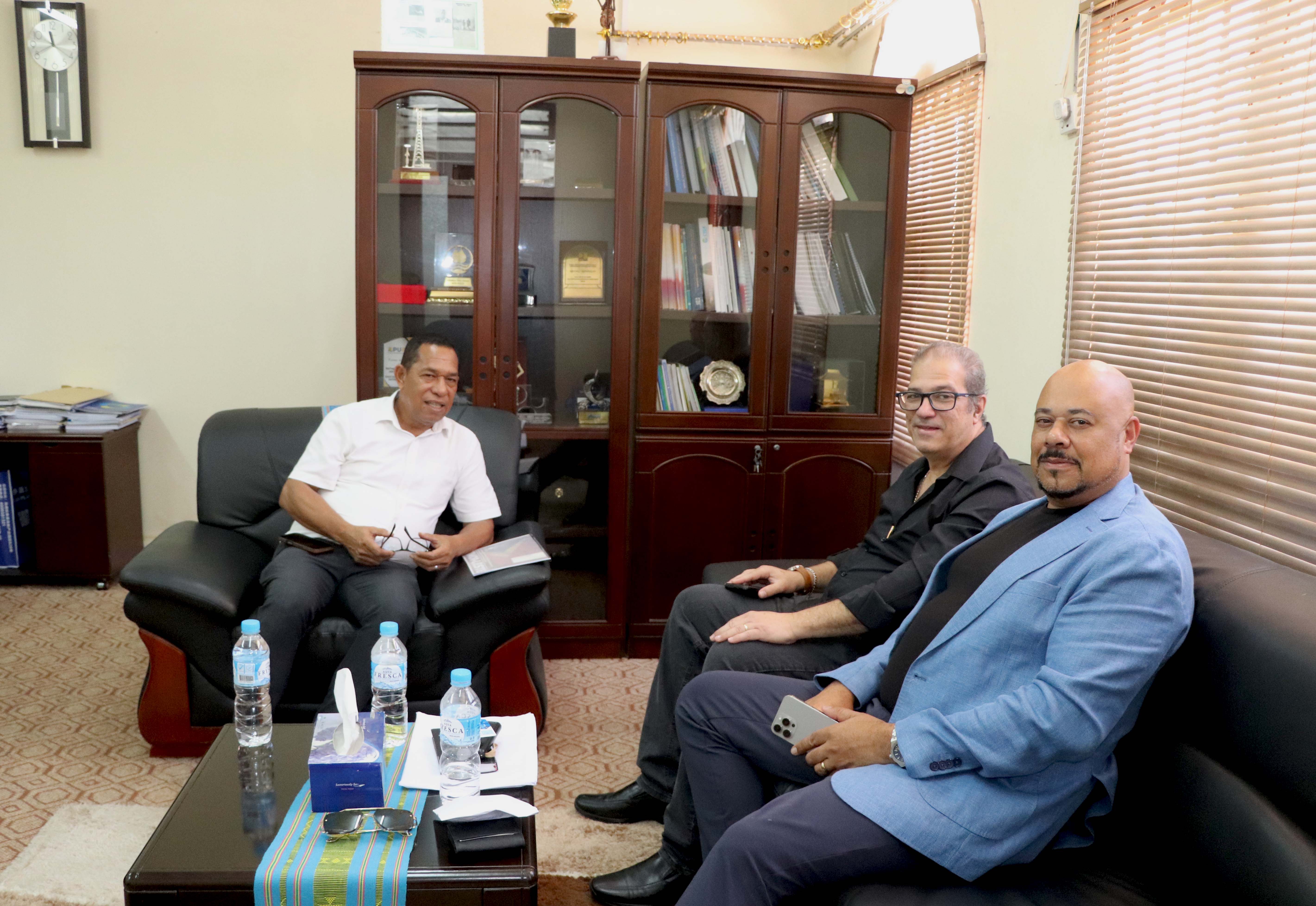 Díli, 15/10/2025. Prezidente Komisaun Ezekutiva (KE) Bee Timor-Leste, Empreza Públika (BTL, E.P), Gustavo da Cruz simu vizita no enkontru ho 𝑀𝑎𝑛𝑎𝑔𝑖𝑛𝑔 𝑃𝑎𝑟𝑡𝑛𝑒𝑟 empreza Clearox hosi Brasil, iha BTL, E.P, Caicoli.