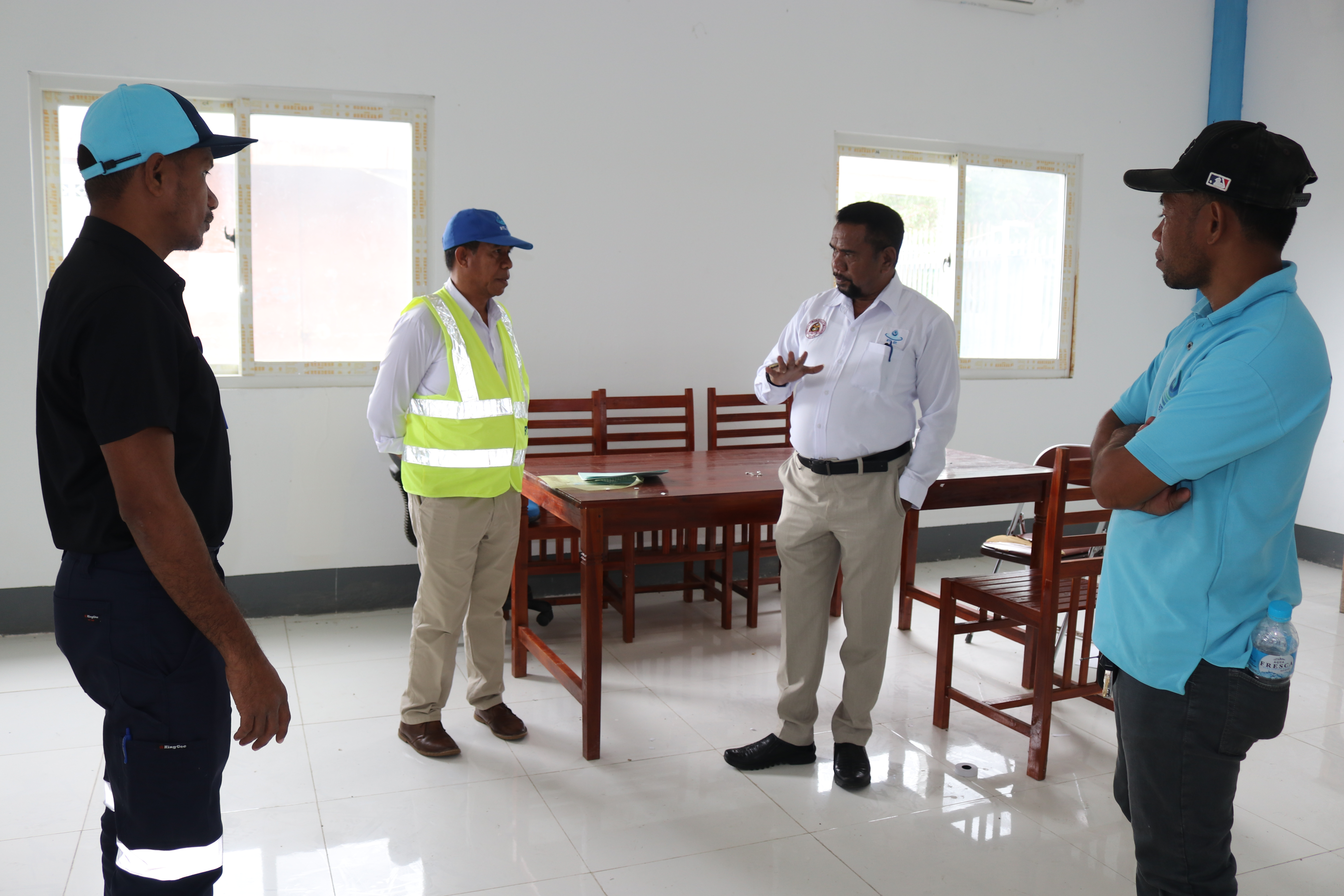 Díli, 31/01/2025. Jestór Infraestrutura Bee Timor-Leste, Empreza Públika (BTL, EP) ho Enjeñeiru sira, Monitoriza projetu Water System Emergency Repair Bee Moos Section 3, Dili and Aileu Municipality, iha área Casnafar.