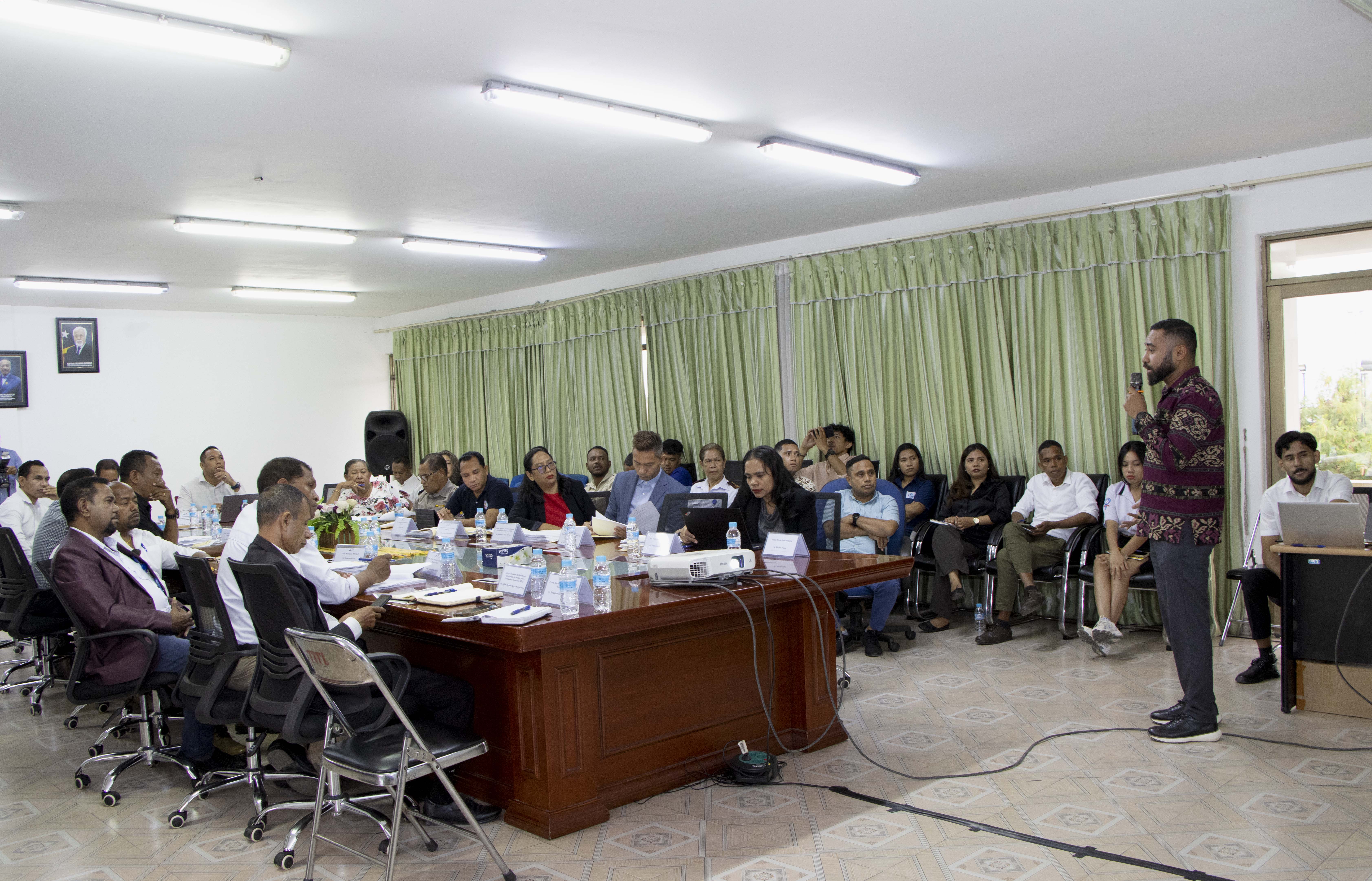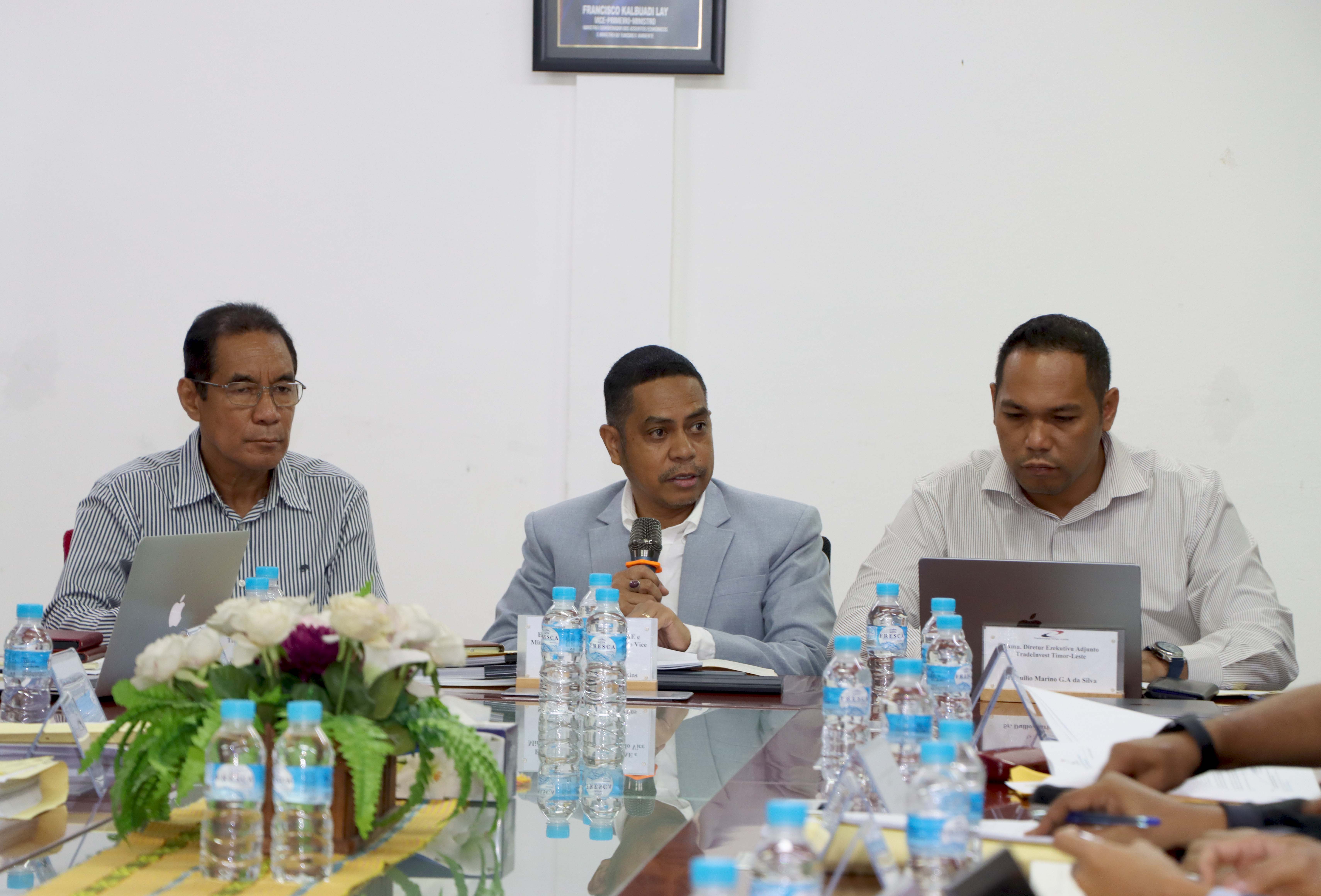 𝐃𝐢́𝐥𝐢, 𝟏𝟕 𝐌𝐚𝐫𝐬𝐮 𝟐𝟎𝟐𝟔. Vise-Prezidente Komisaun Ezekutiva (KE) BTL, E.P ba Asuntu Tékniku, José Filipe Ximenes Smith, akompaña hosi Jestór RP&GIS BTL, E.P, Almeida Boavida partisipa iha aprezentasaun téknika ba proposta investimentu hosi empreza Prime Timor Enterprise, Lda, Sali-Magu, Unip Lda, EMG-MRT Ilimanu, Lda no Emperior S.A, iha salaun enkontru TradeInvest Timor-Leste.