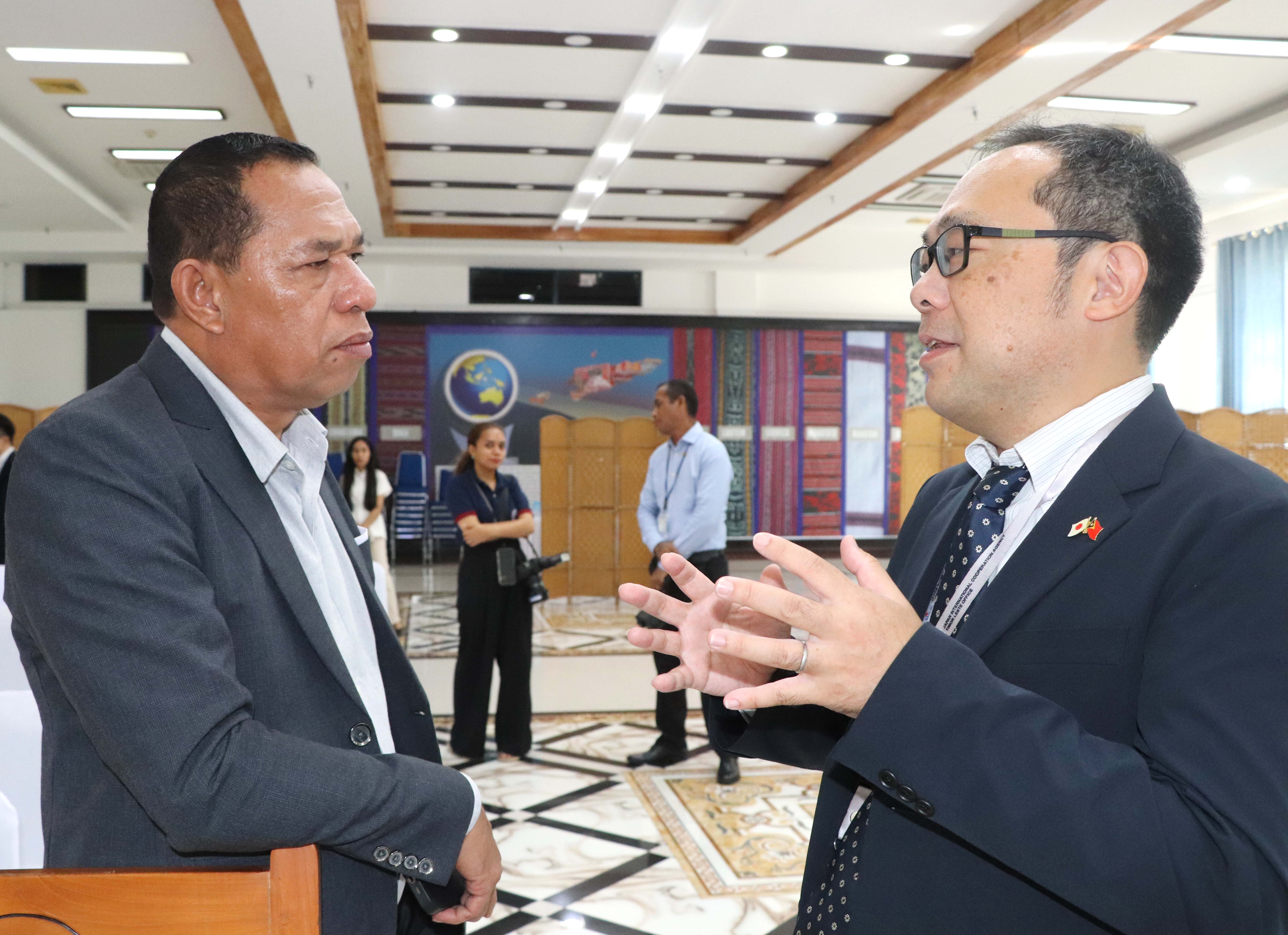 Díli, 11/12/2025. Prezidente Komisaun Ezekutiva (KE) Bee Timor-Leste, Empreza Públika (BTL, E.P), Gustavo da Cruz, partisipa iha seremónia asinatura akordu troka nota entre Governu Timor-Leste (TL), liuhosi Ministériu Negósiu Estranjeiru no Kooperasaun (MNEK) ho Governu Japaun, liuhosi Embaixada Japaun iha TL, ba Programa Dezenvolvimentu Ekonómiku no Sosiál, kona-bá projetu apoia ekipamentu pezadu ba Institutu Jestaun Ekipamentu no Apoiu Dezenvolvimentu Infraestrutura, Institutu Públiku (IGEADI, I.P, sigla portugés), ho fundu millaun $3. Selebrasaun akordu ne’e, realiza iha salaun Nobre, MNEK, Praia dos Coqueiros, Díli.