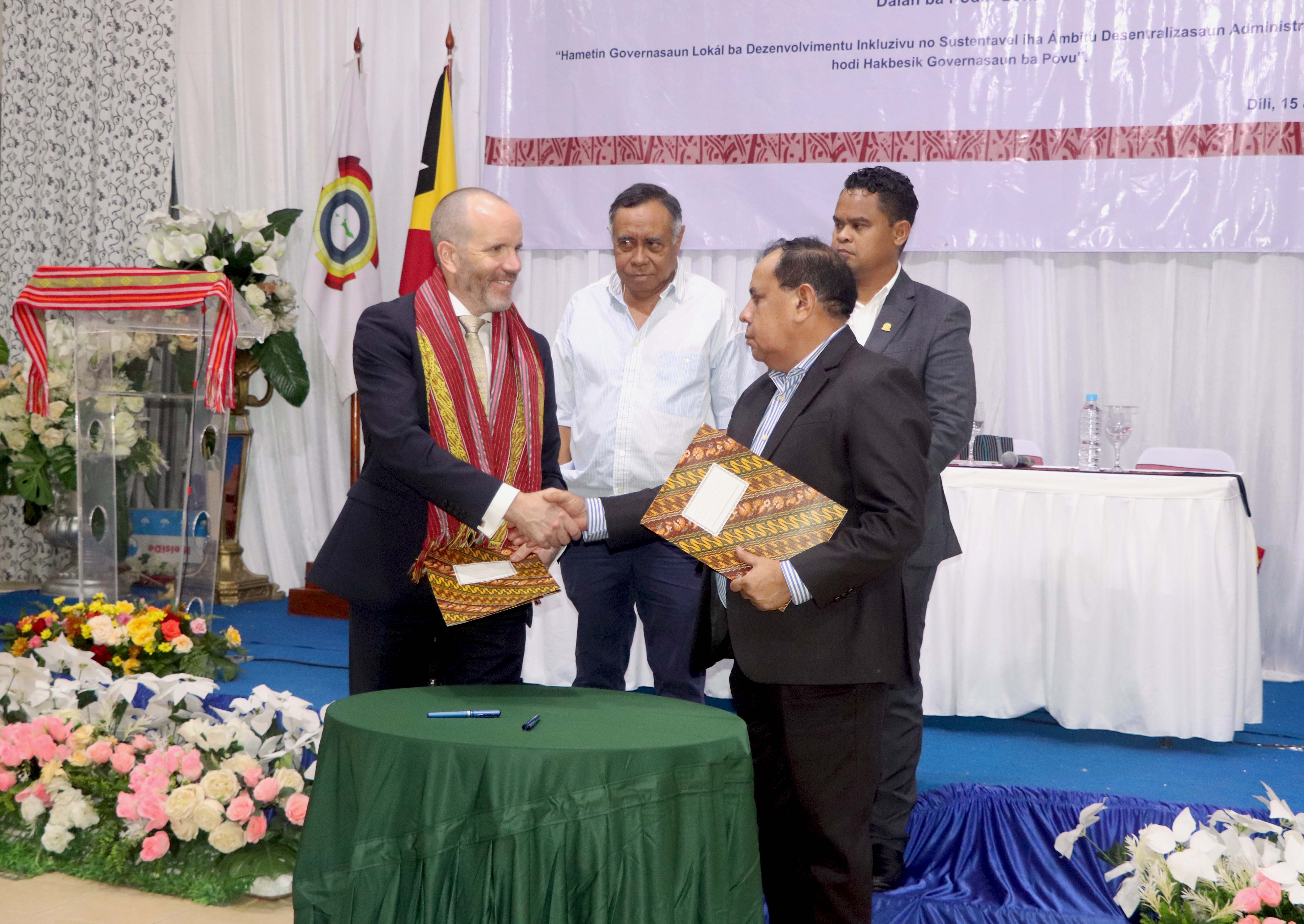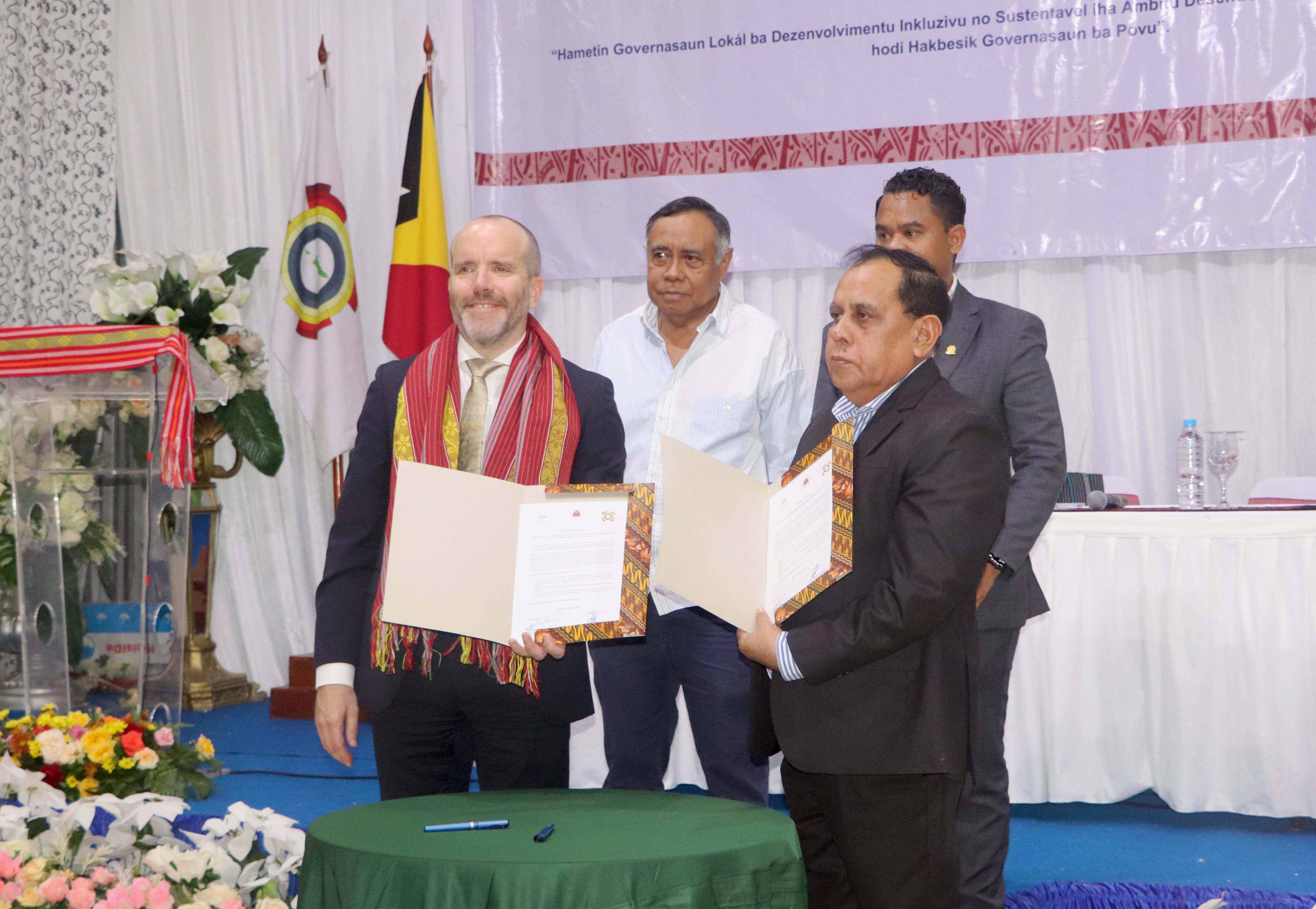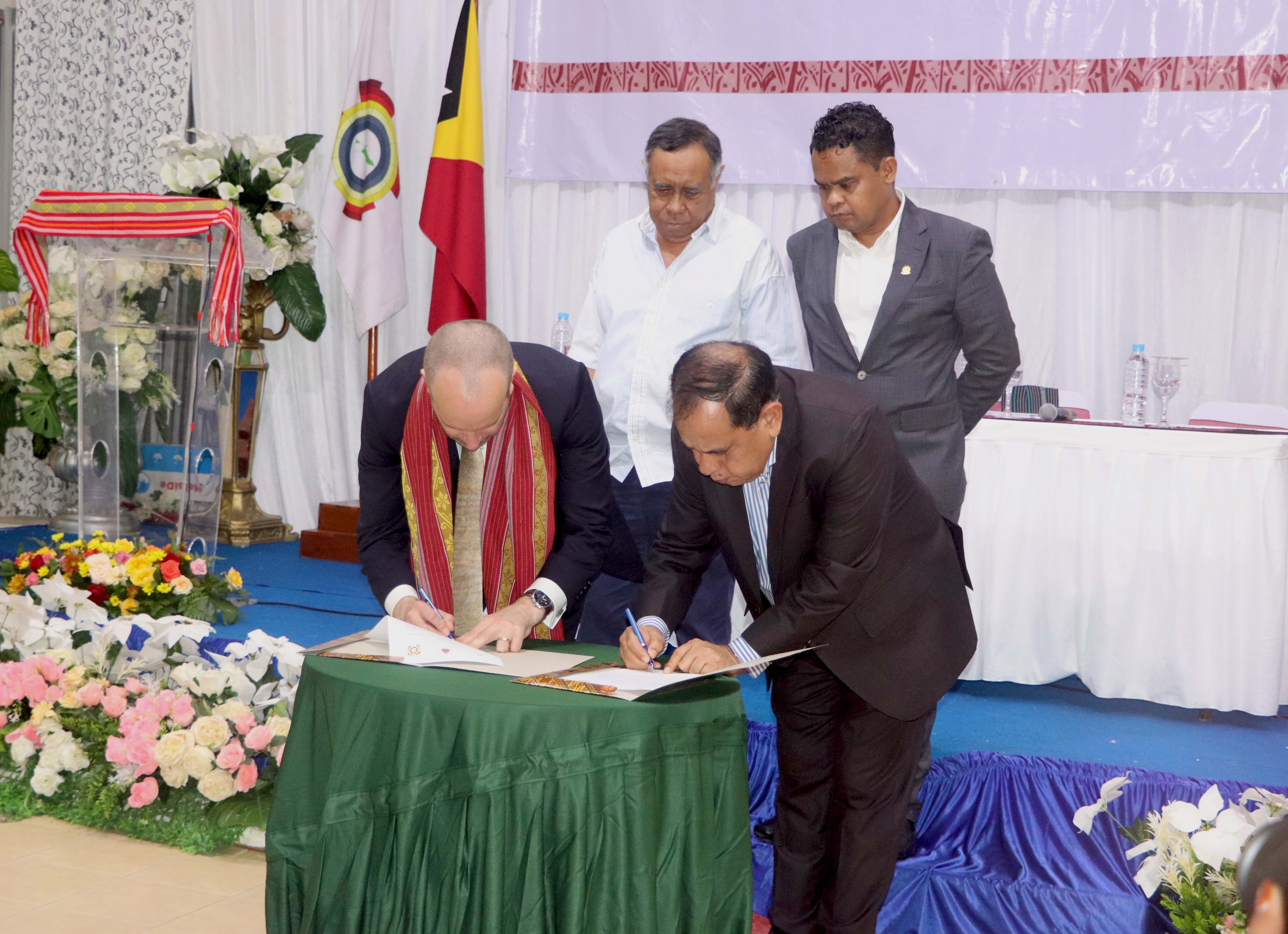 Iha okaziaun ne’e, asina termu entrega ekipamentu eletróniku hosi Governu Austrália ba Governu Timor-Leste liuhosi MAE, hafoin entrega fila-fali ba Prezidente Autoridade Munisípiu sira.