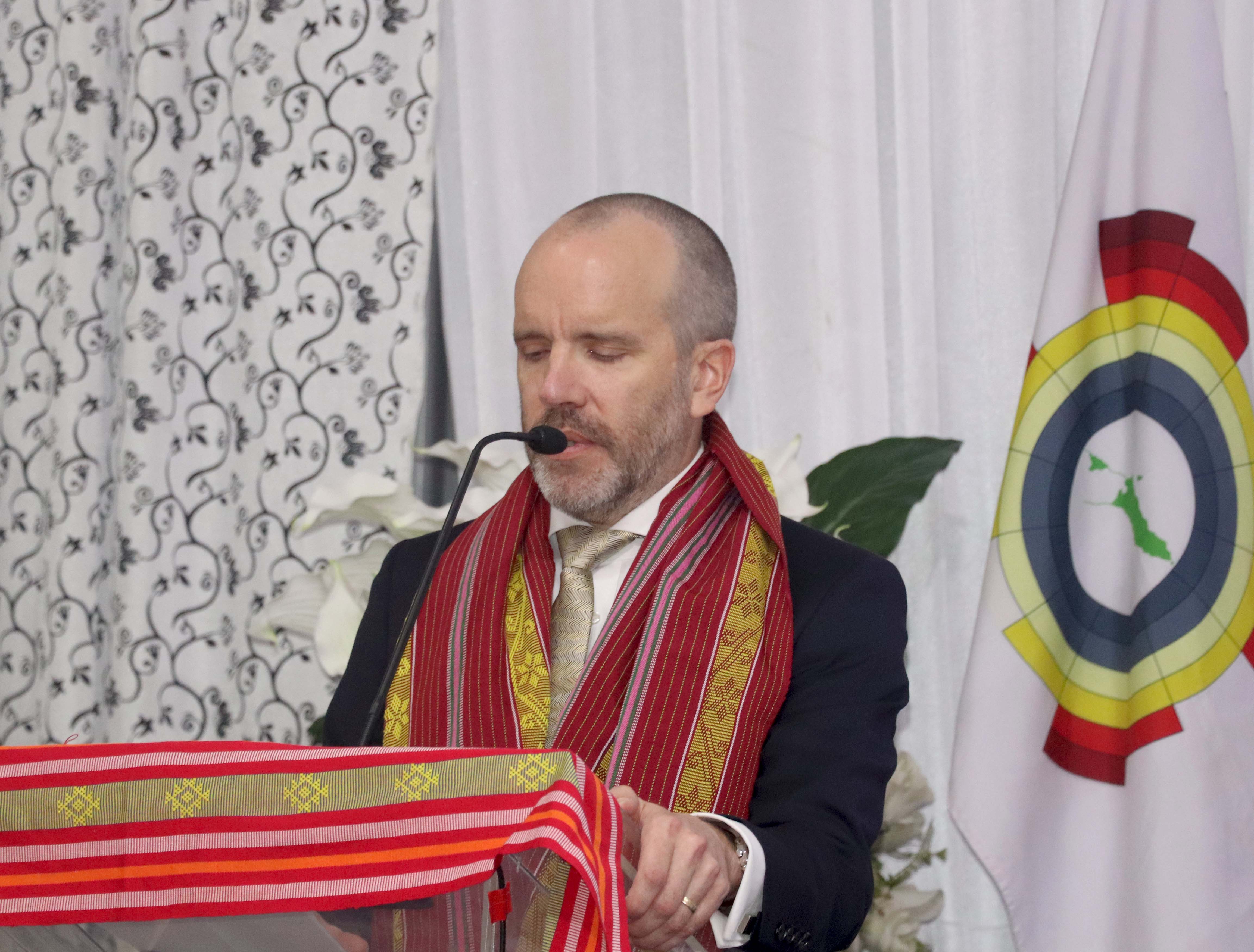 Díli, 15/09/2025. Vise-Prezidente Komisaun Ezekutiva (KE) Bee Timor-Leste, Empreza Públika (BTL, E.P) ba Asuntu Tékniku, Sr. José Filipe Ximenes Smith, partisipa iha Semináriu Nasionál kona-bá Desentralizasaun iha Timor-Leste: Progresu, Dezafiu no Oportunidade, Dalan ba Poder Lokál, ne'ebé realiza iha salaun Delta Nova, Díli.