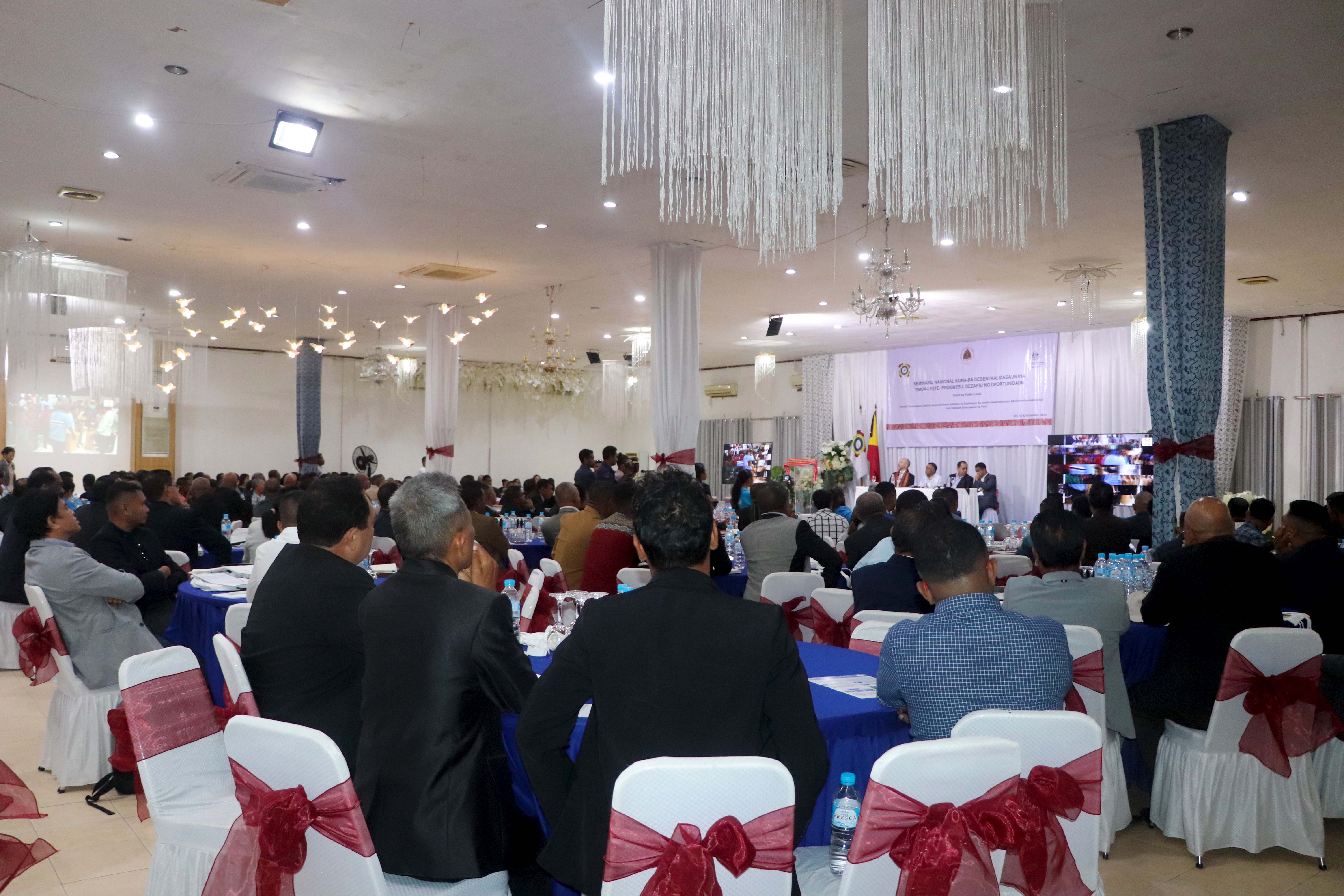 Partisipa iha Semináriu Nasionál ne’e, S.E MAE, S.E MPIE, reprezentante Embaixadór Austrália nian, dirijente hosi MAE Prezidente Autoridade Munisípiu sira, Ministériu relevante no partisipante relevante sira seluk