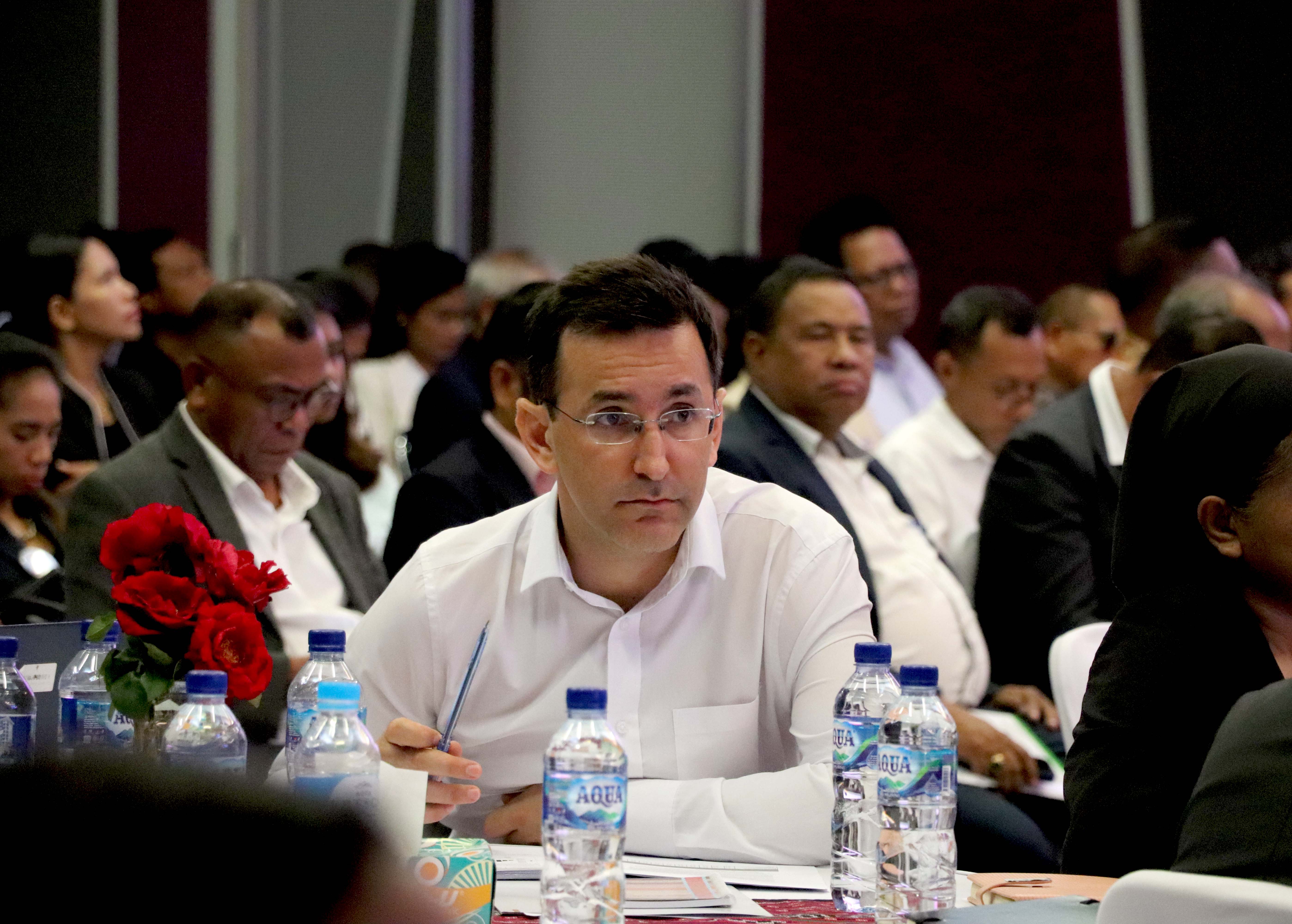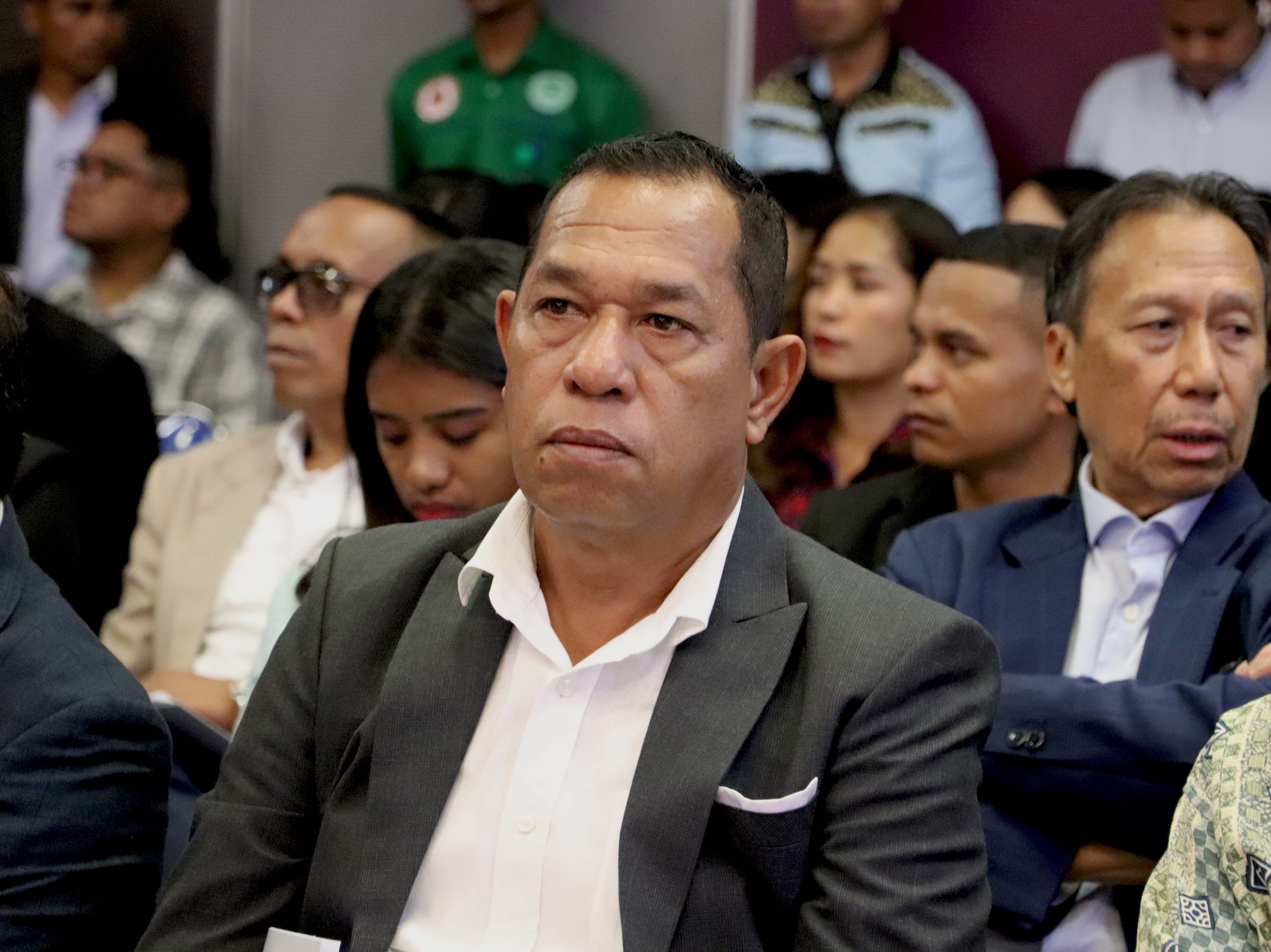 Díli, 16/10/2025. Prezidente Komisaun Ezekutiva (KE) Bee Timor-Leste, Empreza Públika (BTL, E.P), Gustavo da Cruz partisipa iha Semináriu Nasionál kona-bá Panorama Orsamentál Tinan 2026 nian, ne’ebé realiza iha salaun auditóriu Kay Rala Xanana Gusmão, Ministériu Finansas, Aitarak-Laran, Díli.
