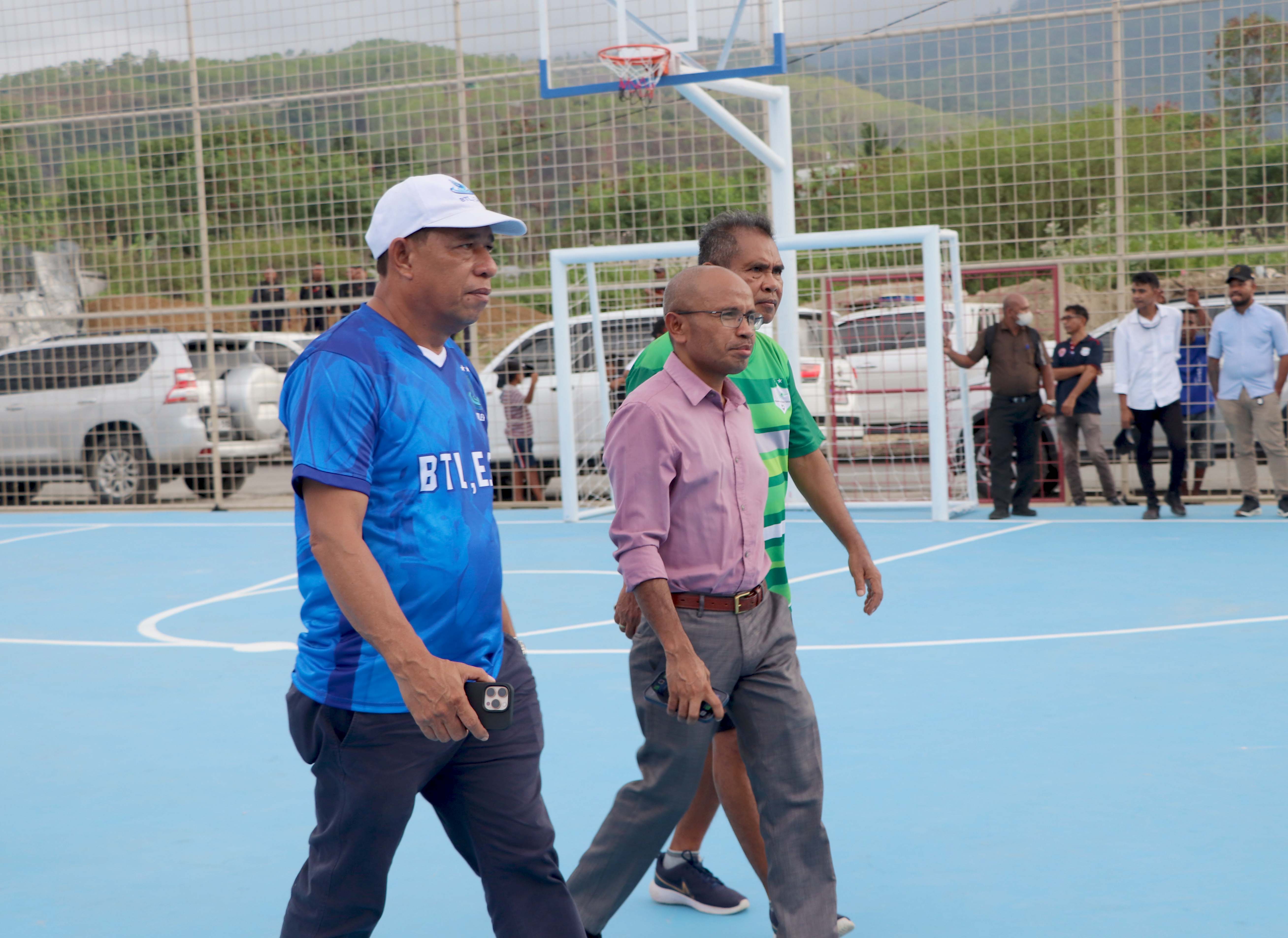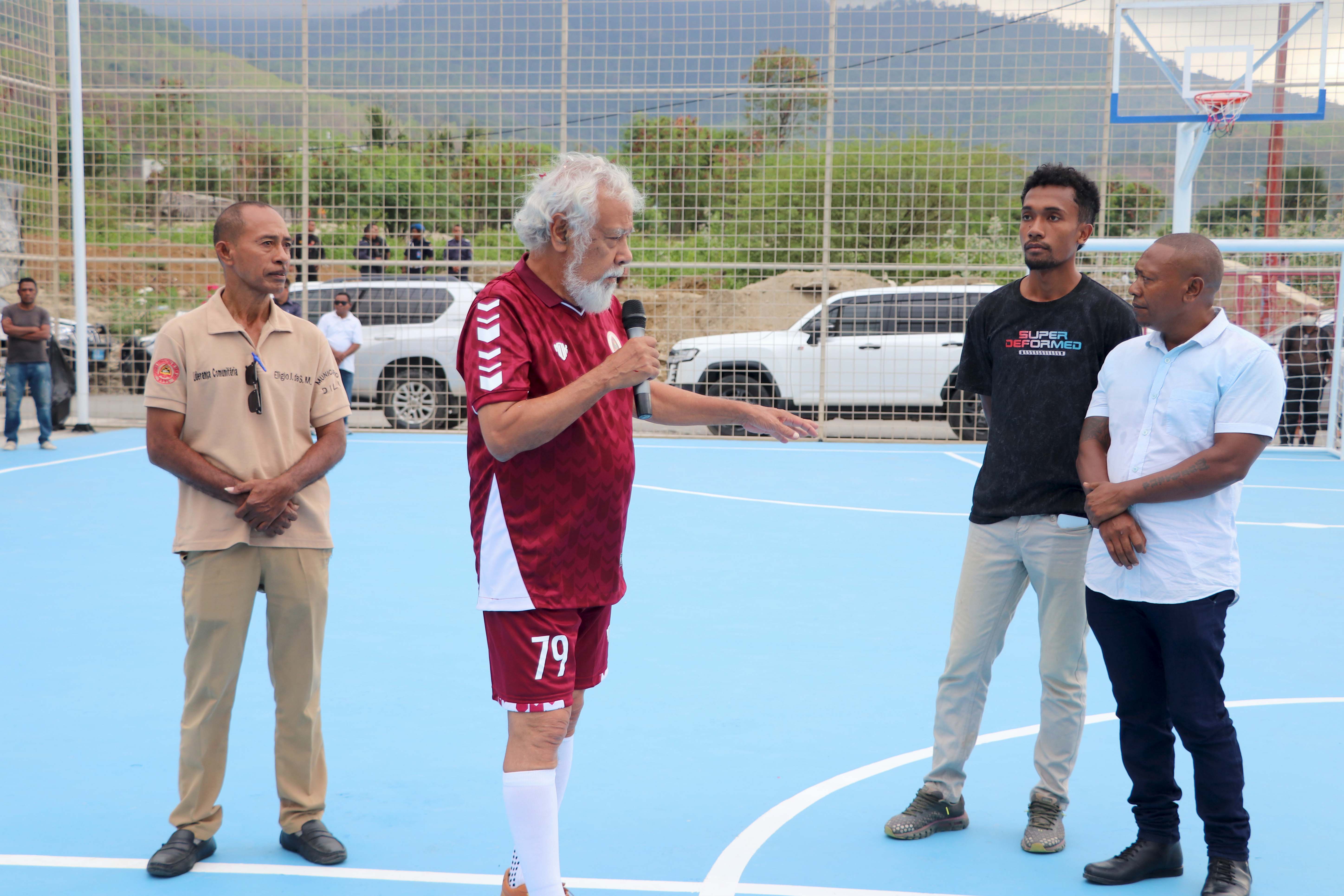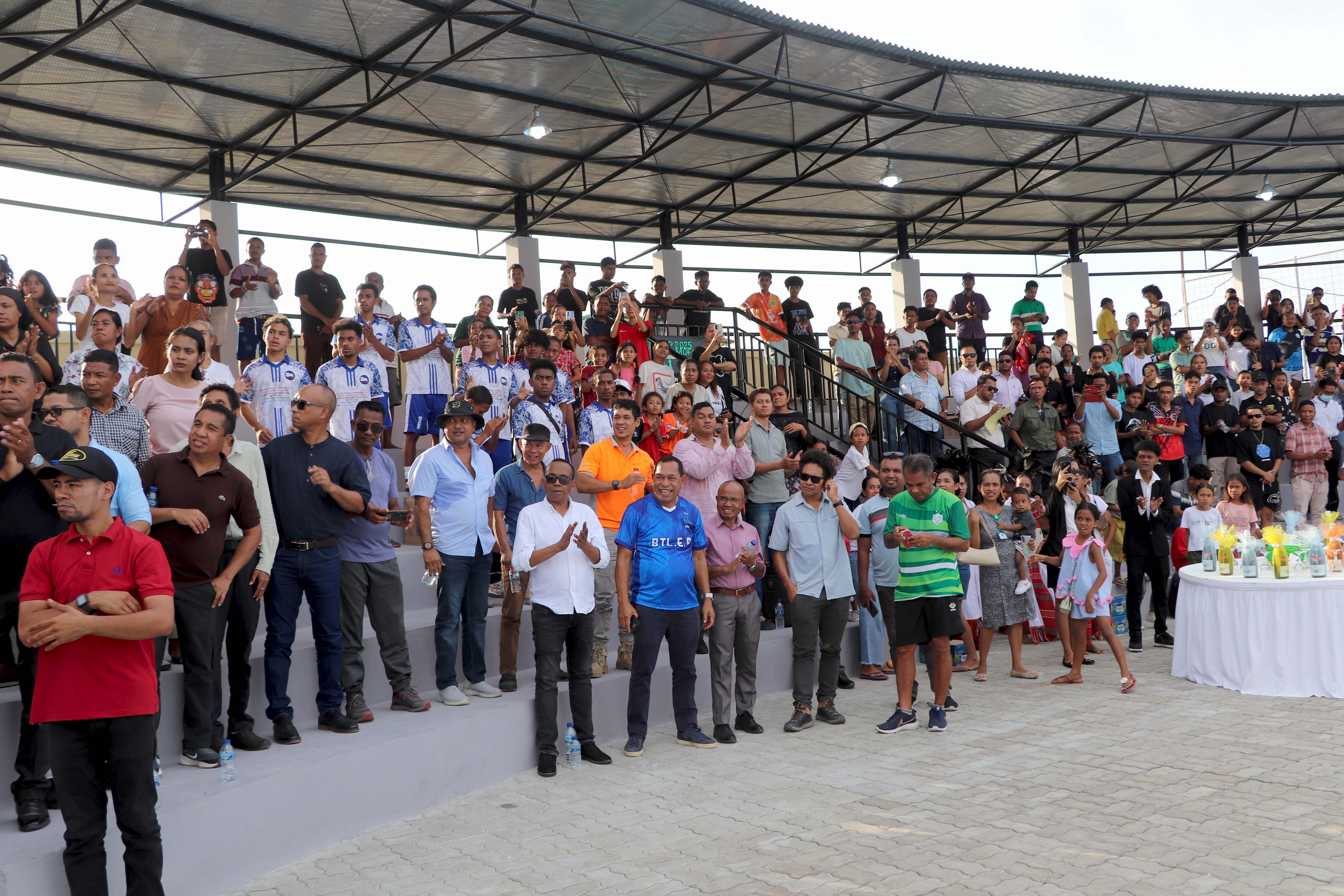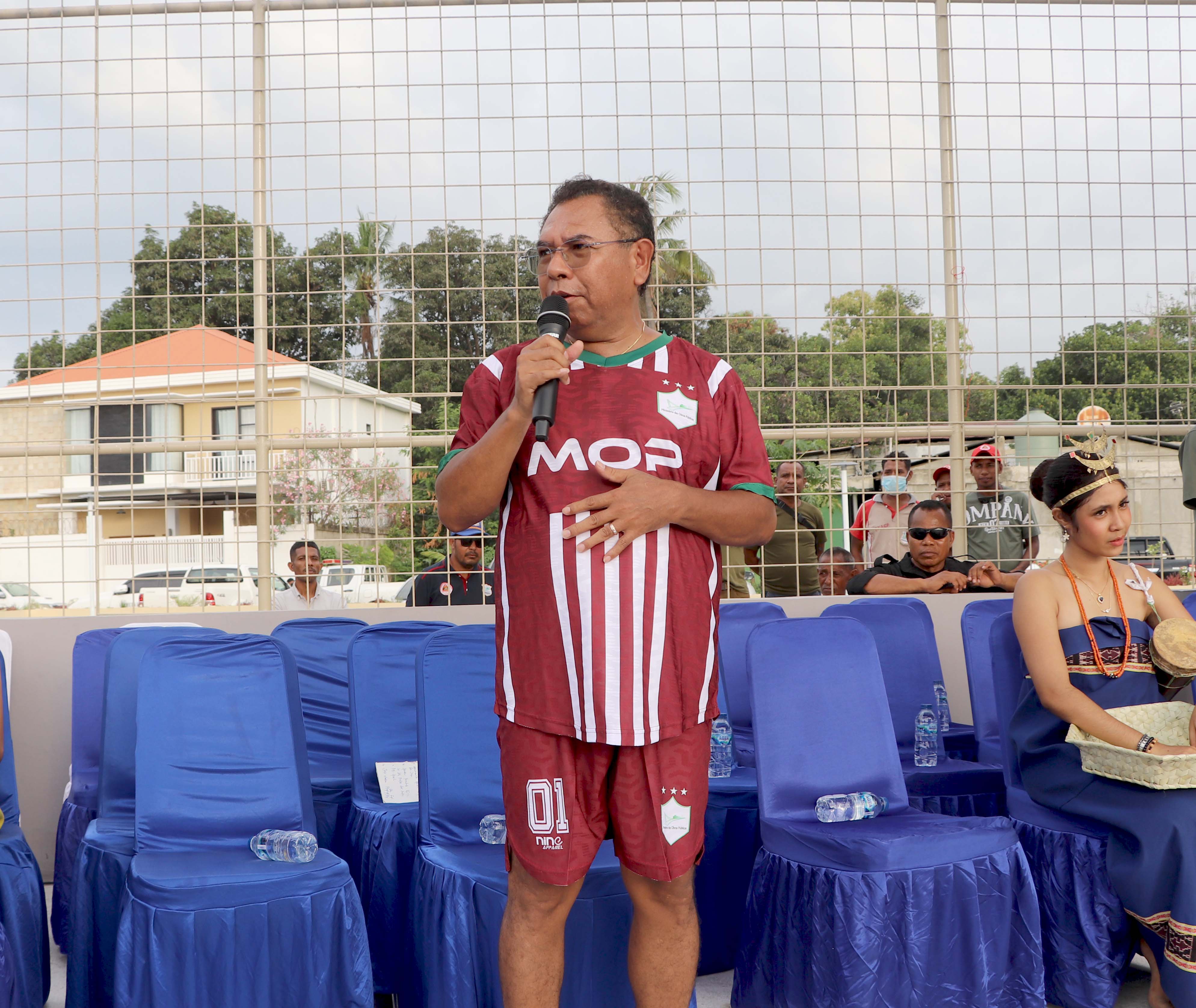Dili, 04/12/2025. Prezidente Komisaun Ezekutiva (KE) Bee Timor-Leste, Empreza Públika (BTL, E.P), Gustavo da Cruz, partisipa iha seremónia inaugurasaun Kampu Futsal Multi Funsaun Xananai, ne'ebé lokaliza iha Delta 4, Aldeia São José, Suku Comoro, Postu-administrativu Dom Aleixo.