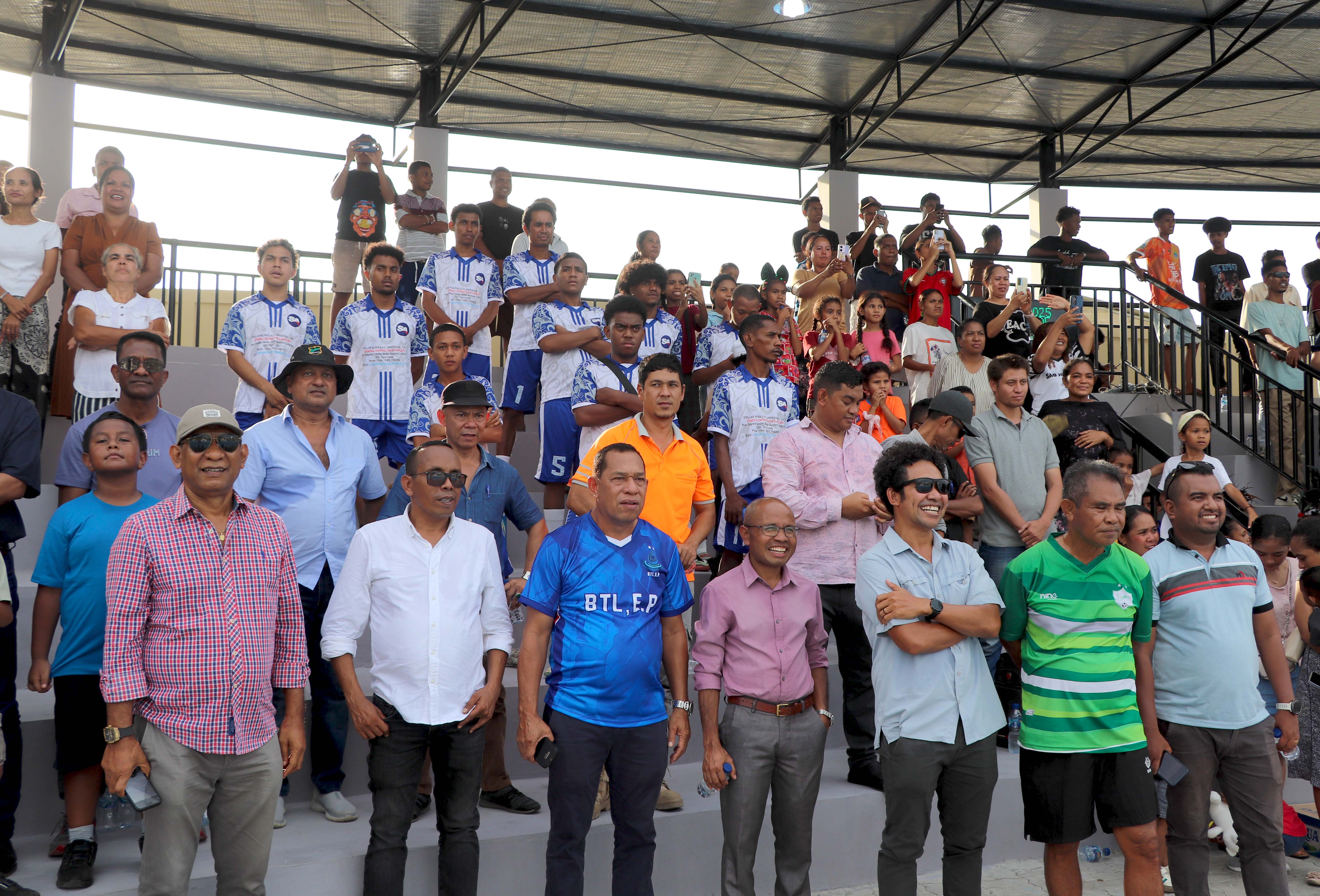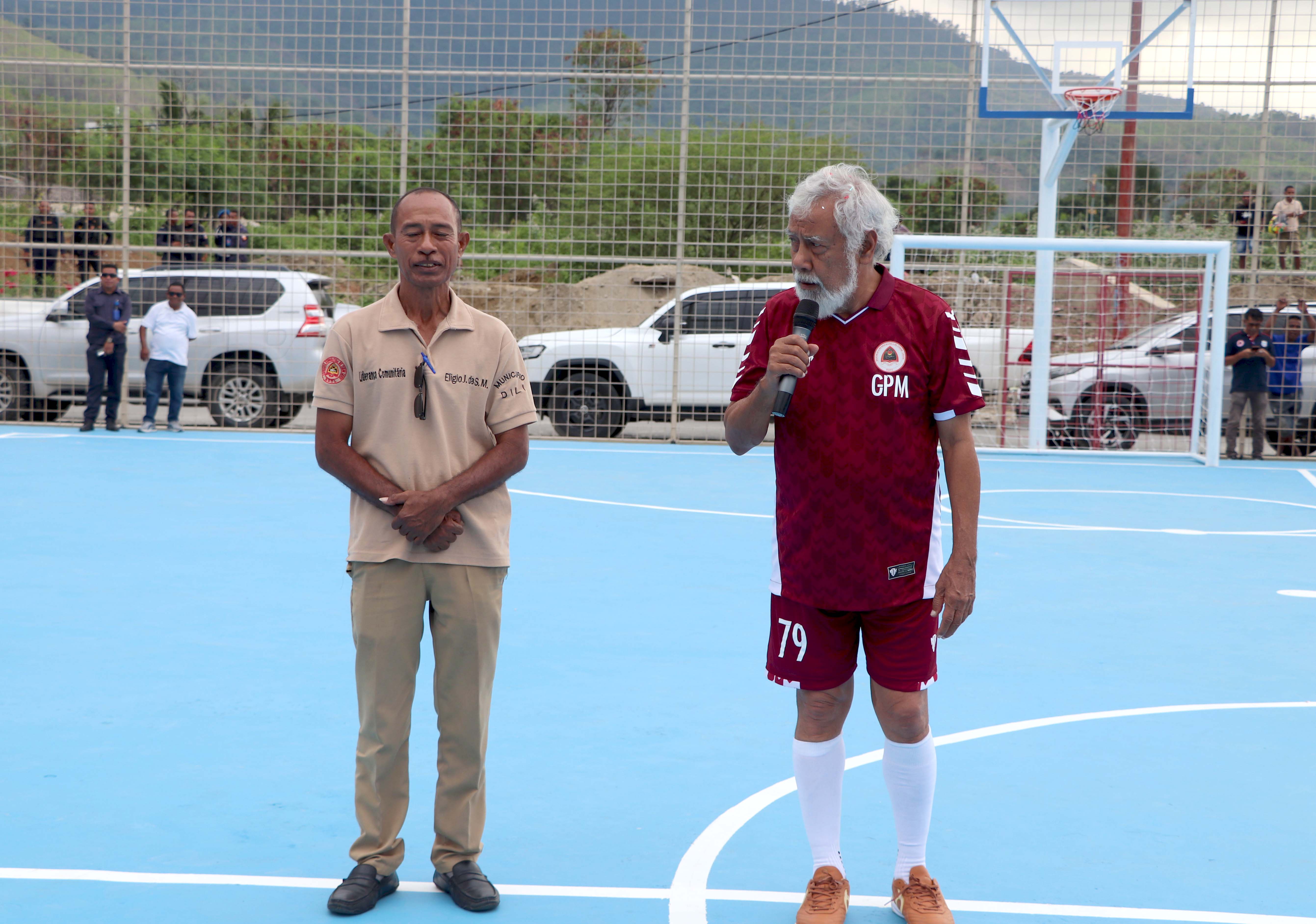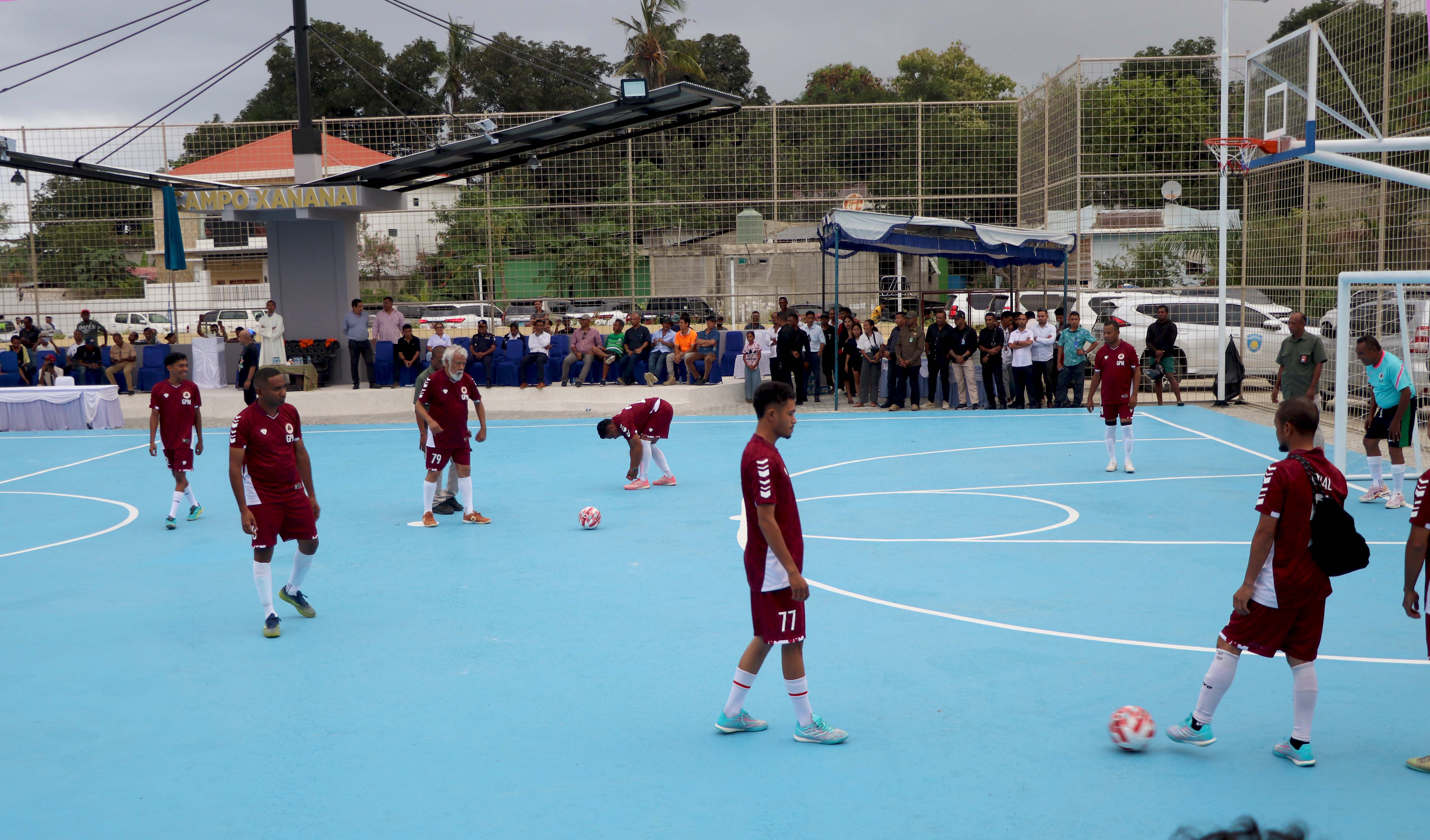 Dili, 04/12/2025. Prezidente Komisaun Ezekutiva (KE) Bee Timor-Leste, Empreza Públika (BTL, E.P), Gustavo da Cruz, partisipa iha seremónia inaugurasaun Kampu Futsal Multi Funsaun Xananai, ne'ebé lokaliza iha Delta 4, Aldeia São José, Suku Comoro, Postu-administrativu Dom Aleixo.