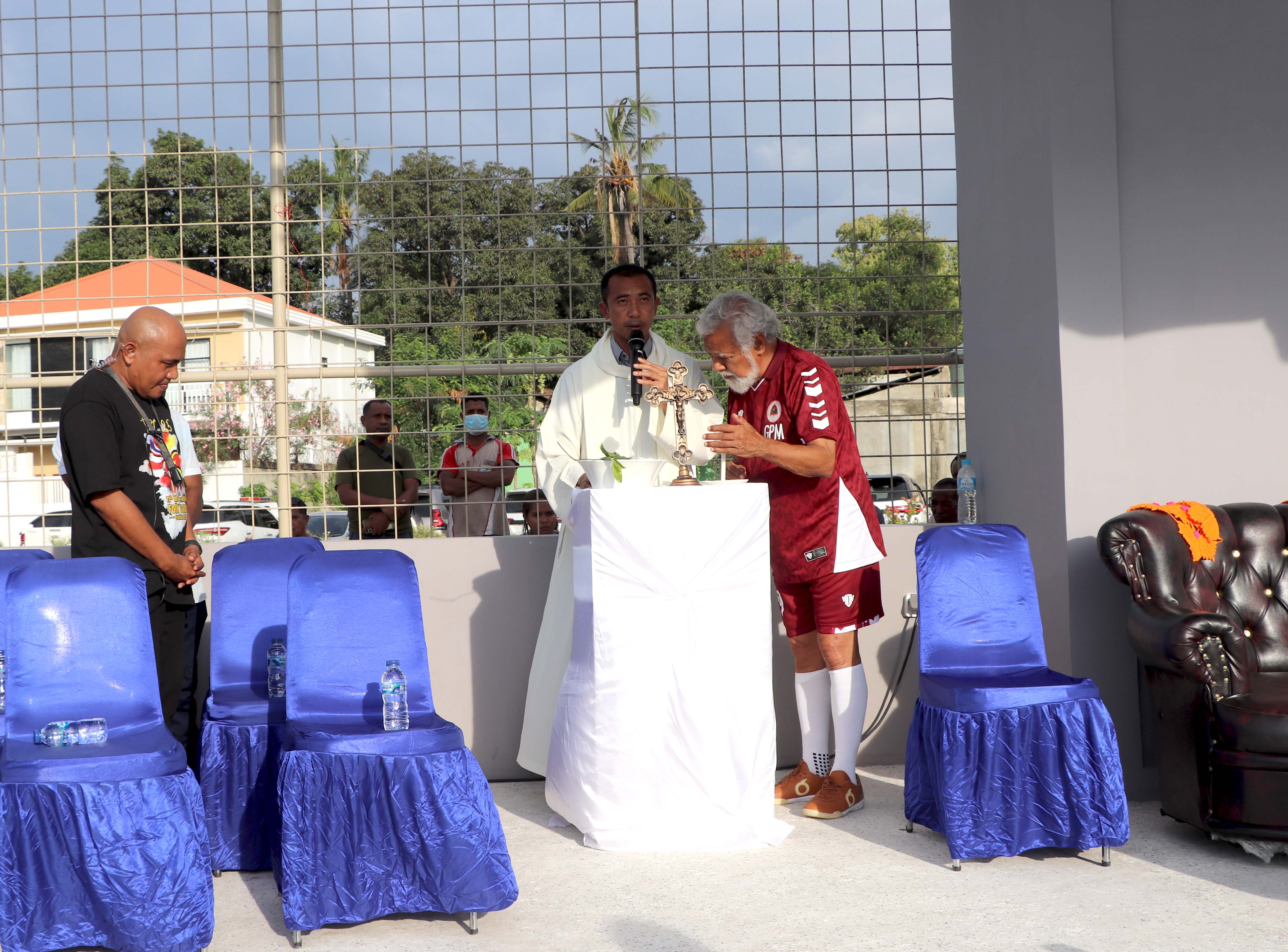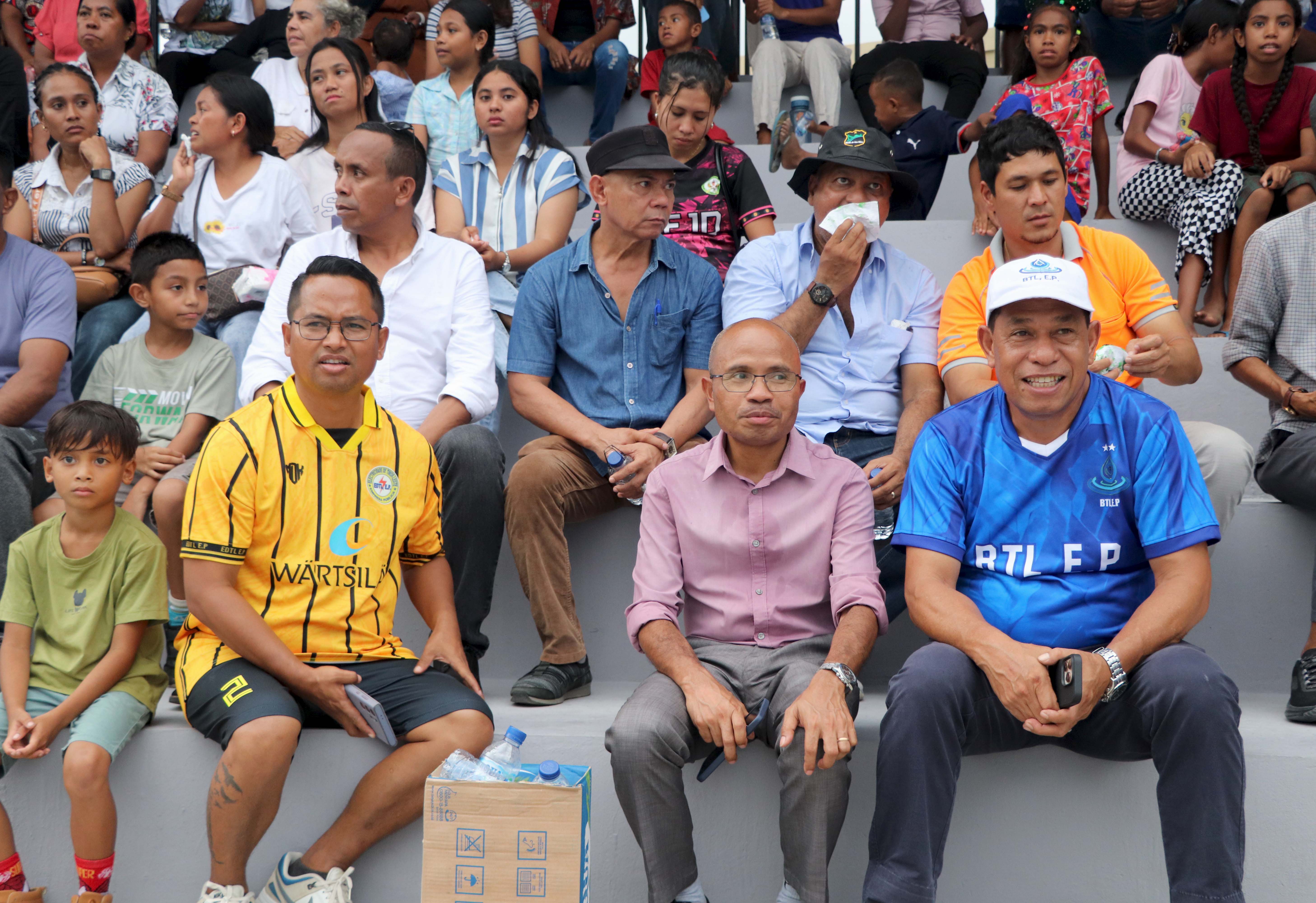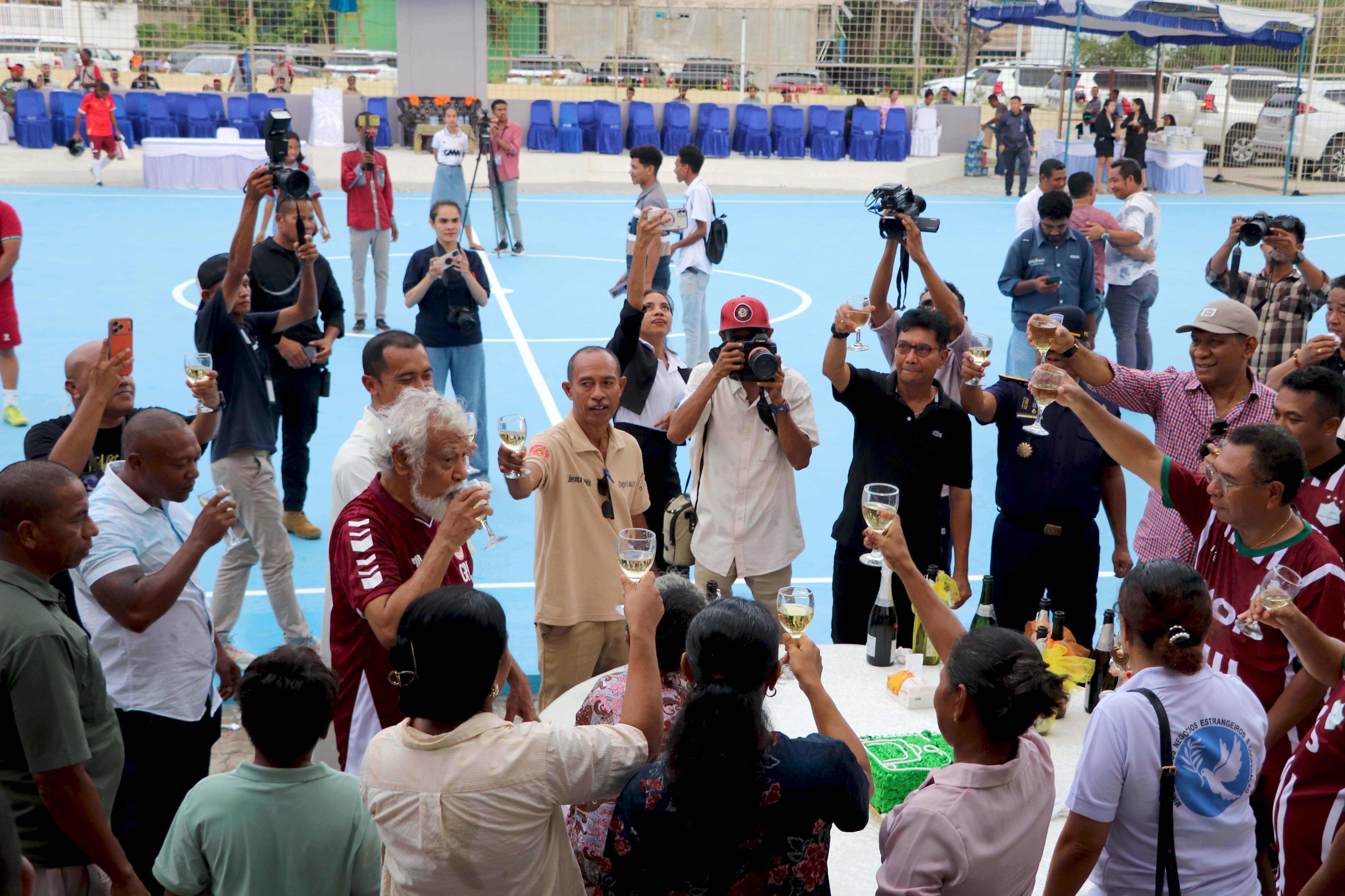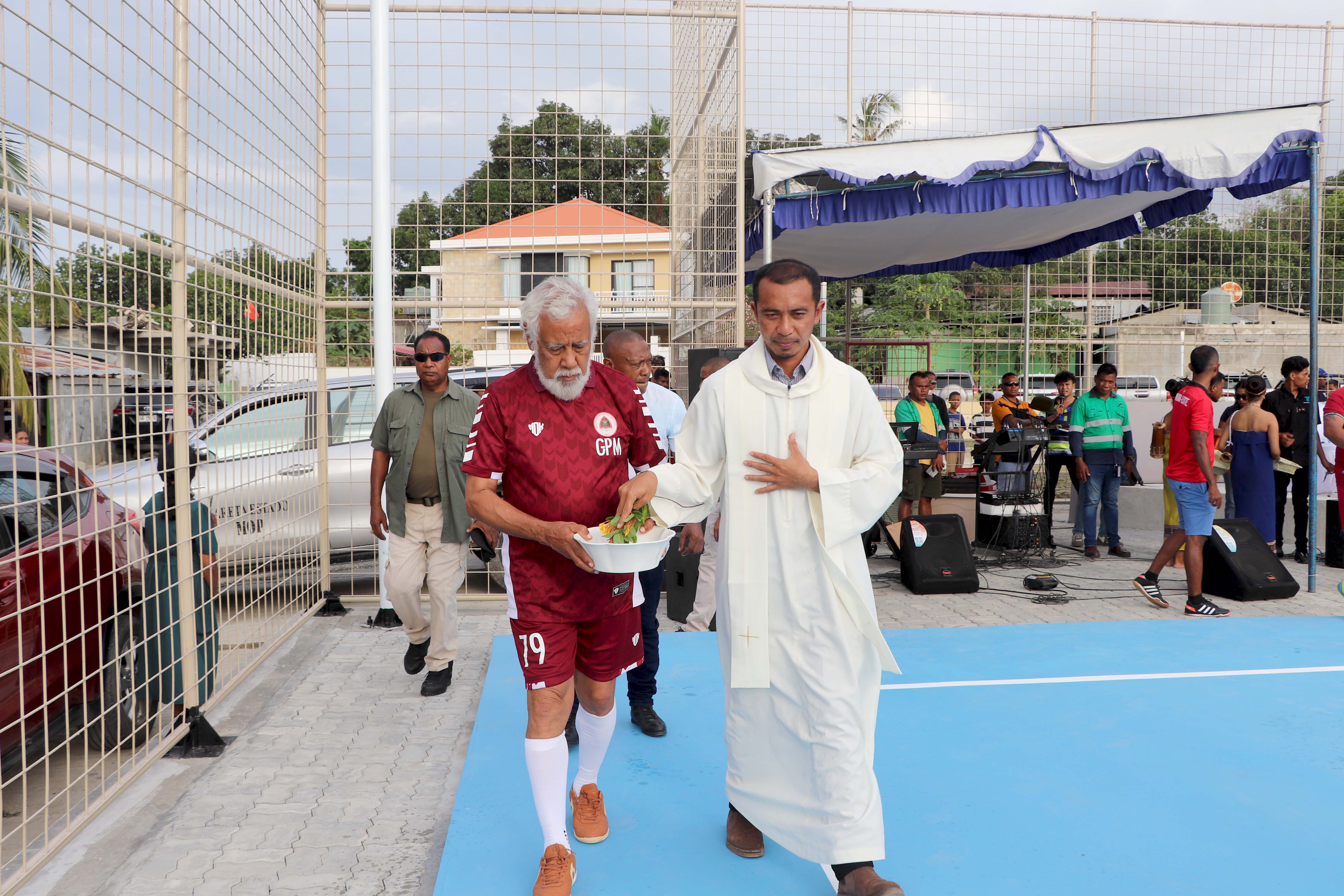 Dili, 04/12/2025. Prezidente Komisaun Ezekutiva (KE) Bee Timor-Leste, Empreza Públika (BTL, E.P), Gustavo da Cruz, partisipa iha seremónia inaugurasaun Kampu Futsal Multi Funsaun Xananai, ne'ebé lokaliza iha Delta 4, Aldeia São José, Suku Comoro, Postu-administrativu Dom Aleixo.