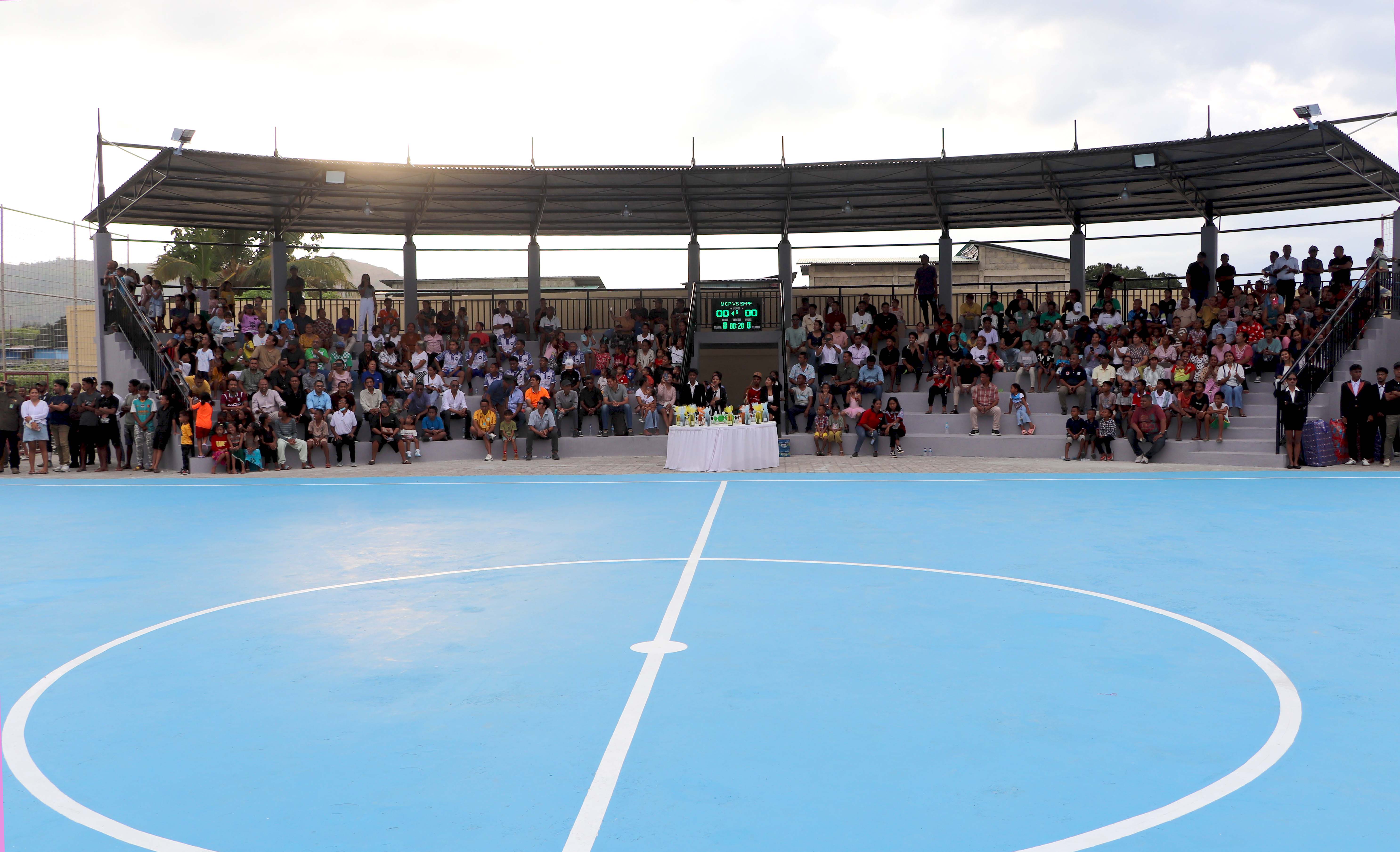 Kampu Futsal Multi funsaun ne’e, finansia husi Ministeriu Obras Públikas ne’ebé kompleta ho fasilidade públika iha fatin referida.