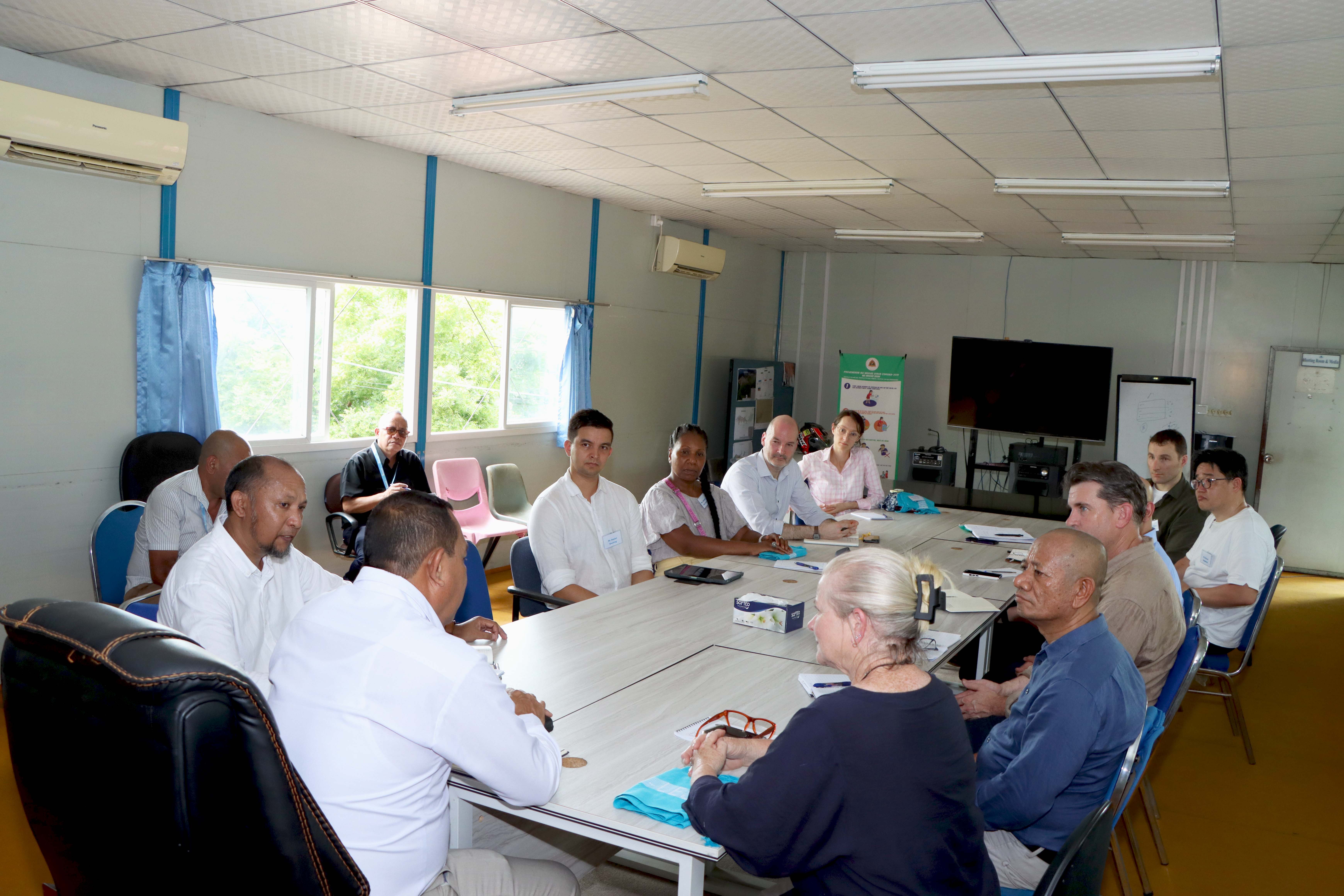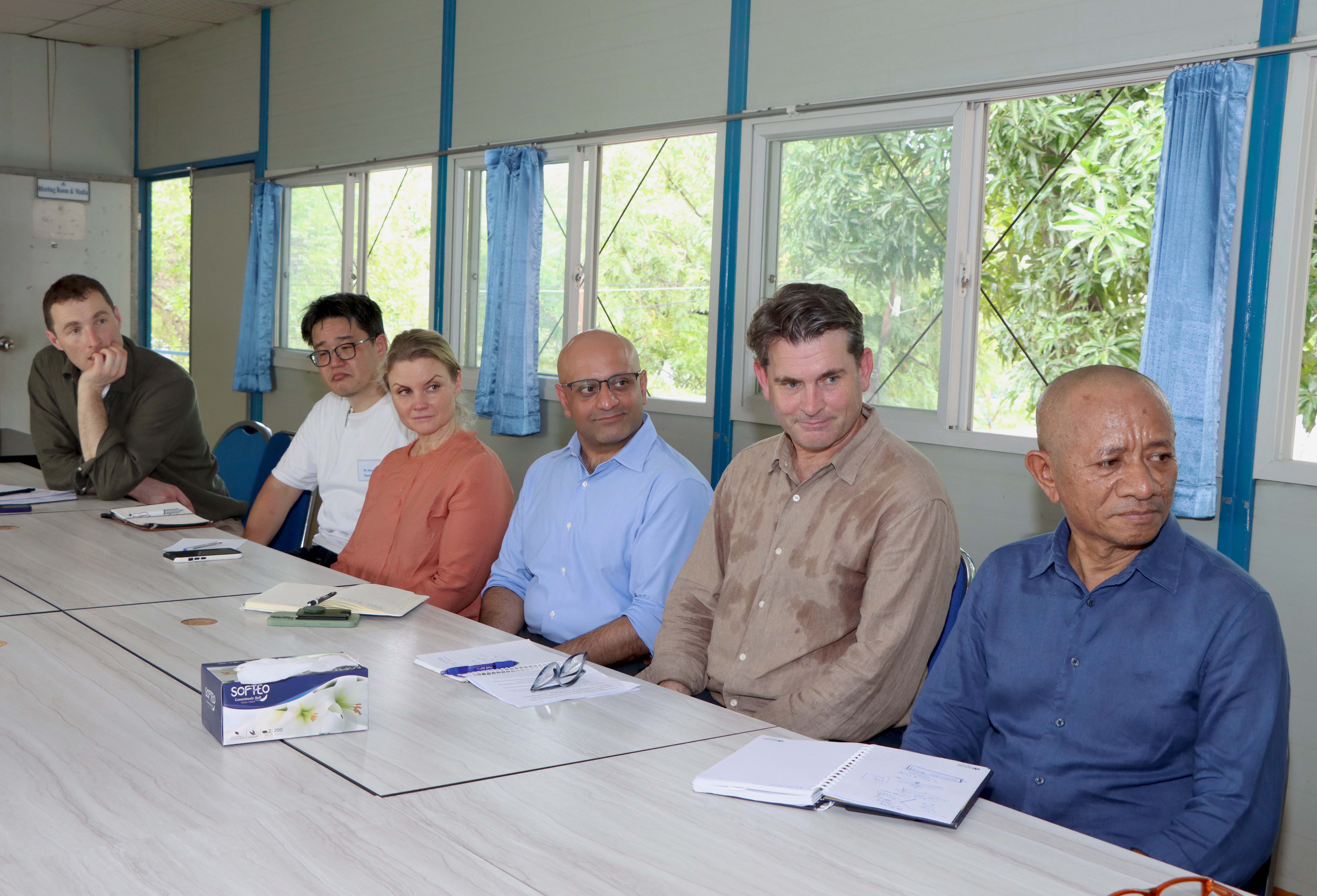 Díli, 23 Fevereiru 2026. Prezidente Komisaun Ezekutiva BTL, E.P, Gustavo da Cruz ho Diretór Nasionál DNRAS, Marcolino da Costa de Jesus Babo, simu vizita hosi parseiru WaterAid Timor-Leste ho delegasaun hosi WaterAid Englatera, Austrália, Japaun, Olandés, Papua Nova Guiné, Canadá no Filipa, iha edifisiu sentrál BTL, E.P, Caicoli.