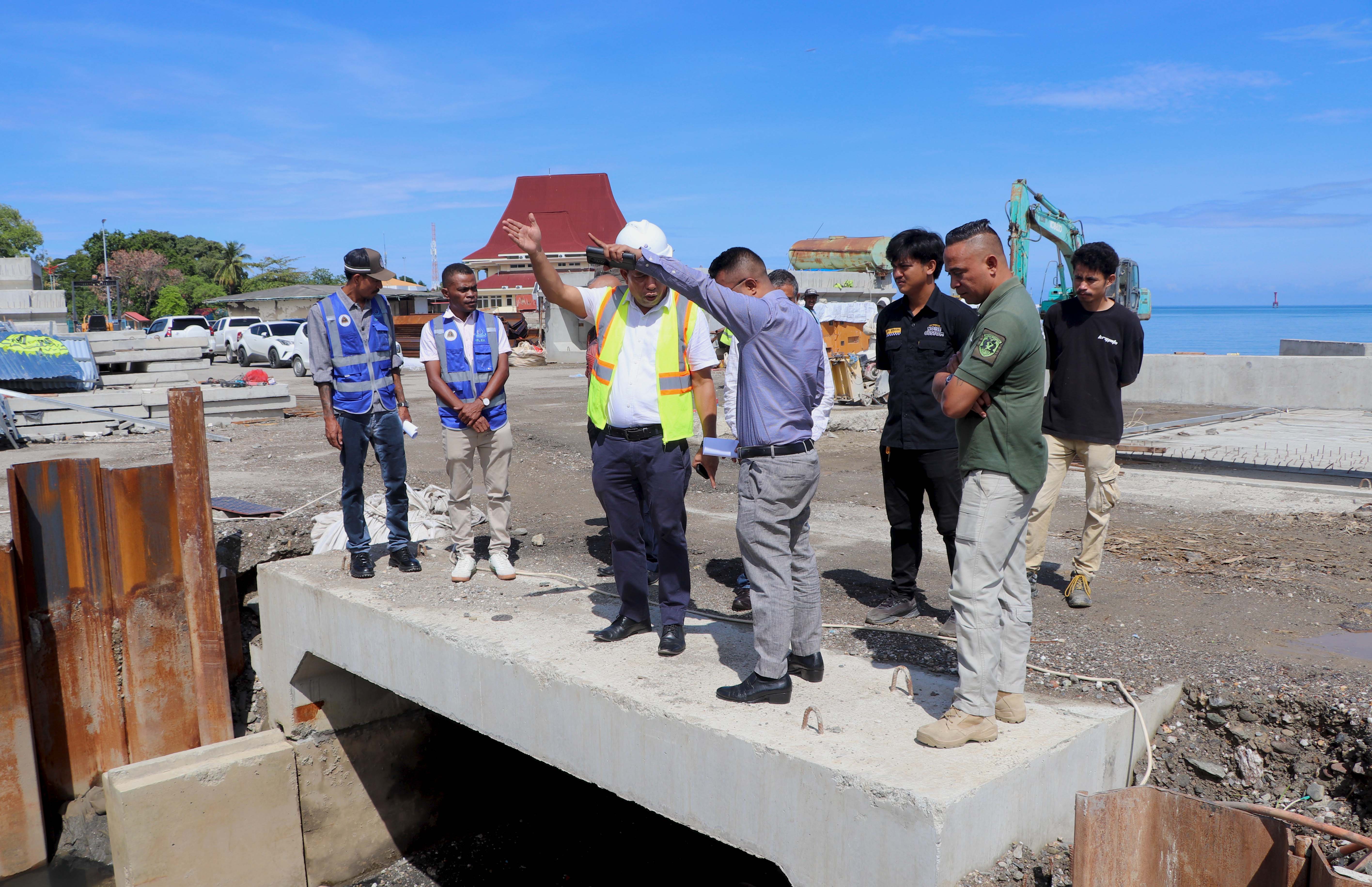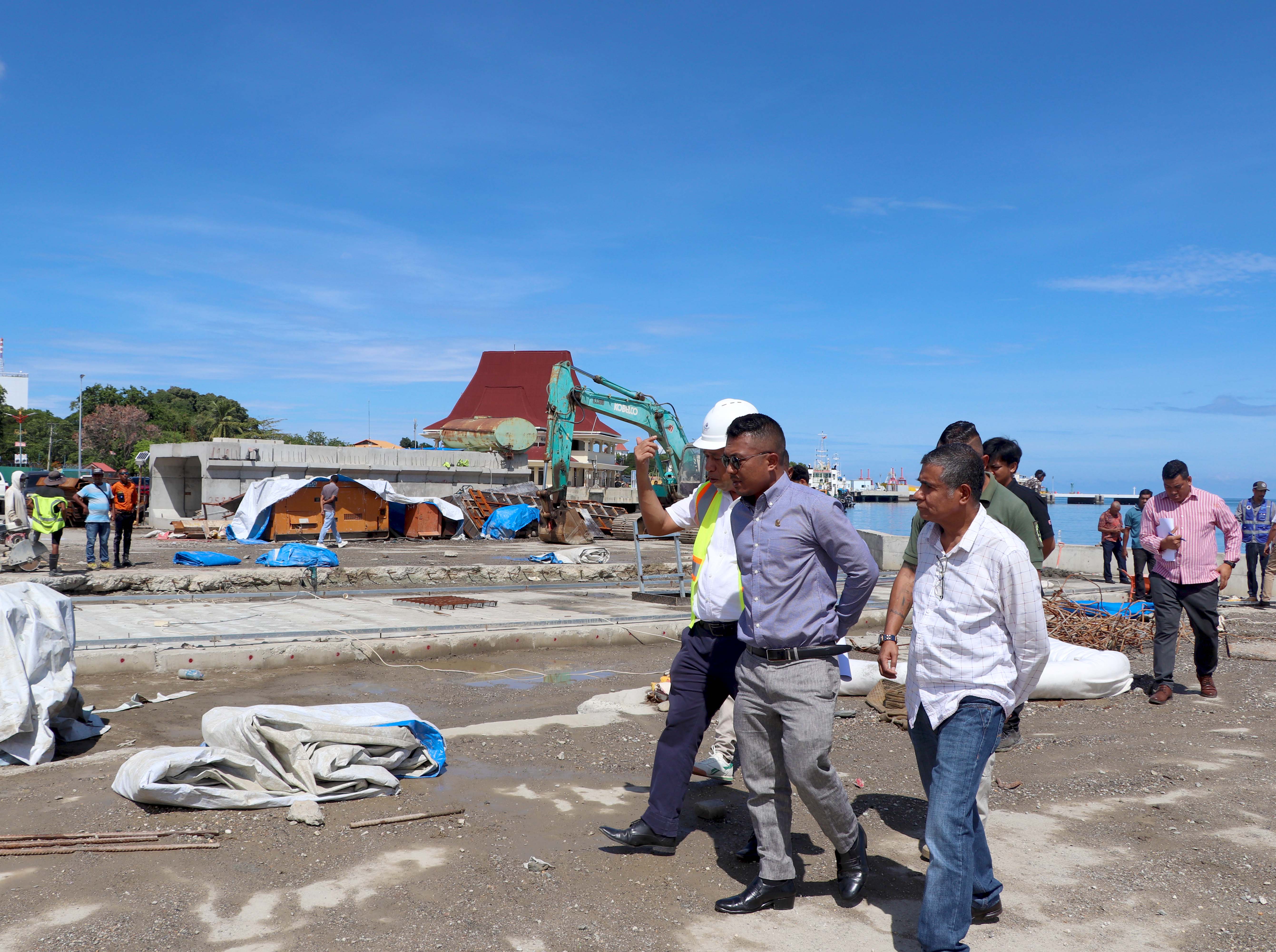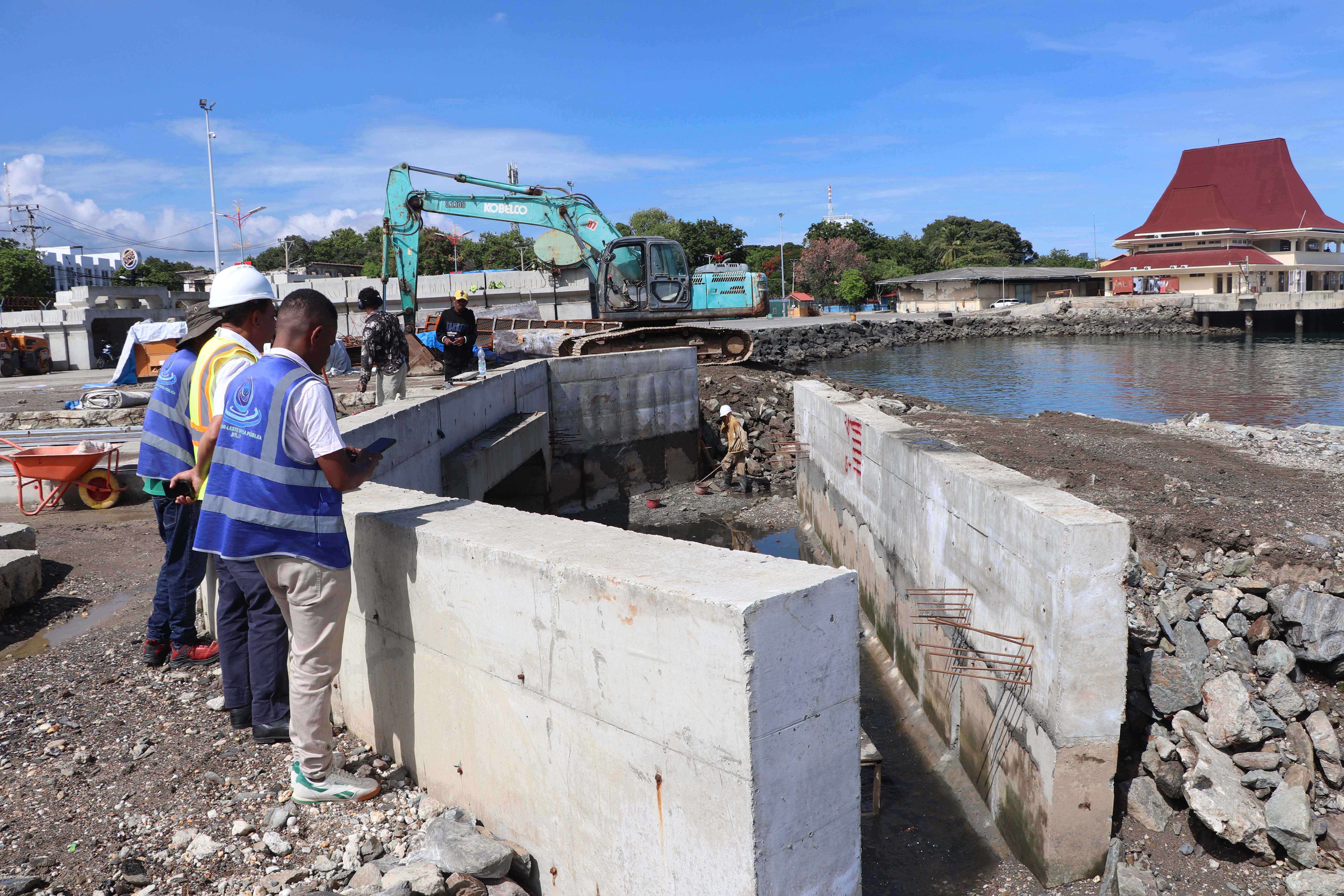 Díli,10/12/2025. Prezidente Komisaun Ezekutiva (KE) Bee Timor-Leste, Empreza Públika (BTL, E.P), Gustavo da Cruz, akompaña hosi Jestór Infraestrutura ho Enjeñeiru BTL, E.P nian, hamutuk ho Sekretáriu Estadu Eletrisidade Bee no Saneamentu (SEEAS, sigla portugés) ho ekipa, monitoriza projetu drenazen D-4, iha Porto Díli.