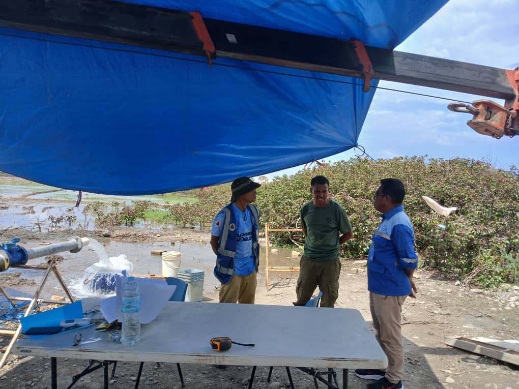 Manatuto, 04/12/2025, Hafoin finaliza servisu perfurasaun nian, Enjeñeiru hosi Diresaun Enjeñaria no Investimentu (DEI) akompaña kompañia H2O halo teste bombeamentu ou pumping test ba perfurasaun bee, ne’ebé lokaliza iha Postu-administrativu Laleia, Munisípiu Manatuto, durante oras 24, atu bele hatene constant rate bee hosi perfurasaun ne’e.