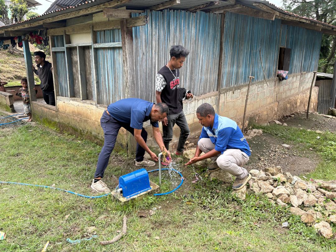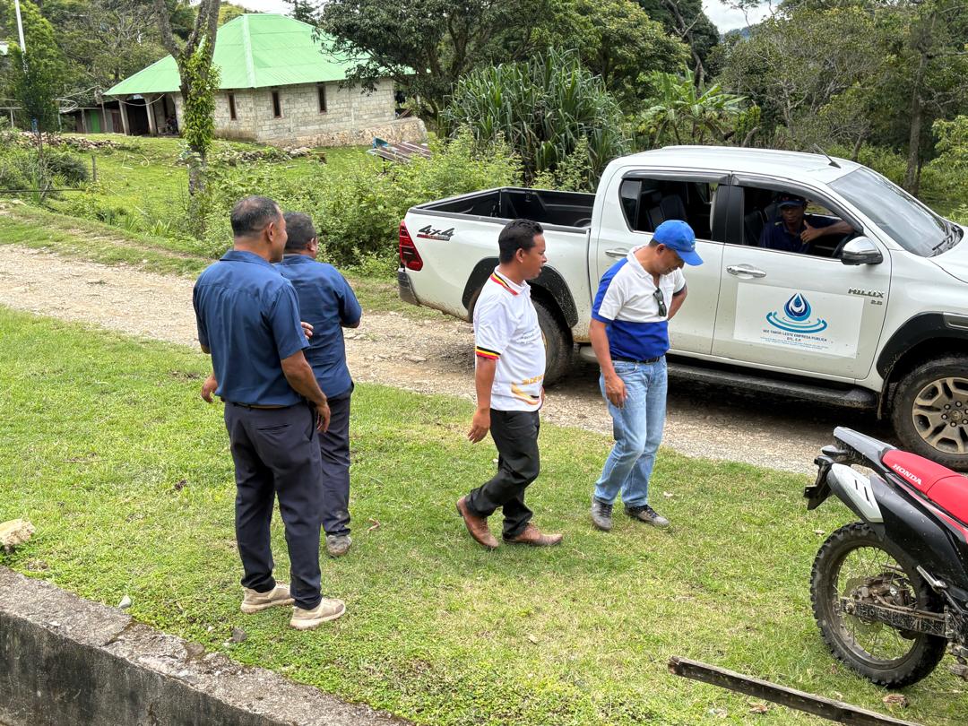 Covalima, 27 Fevereiru 2026. Diretór DEI BTL, E.P, João da Cruz Cardoso ho Jestór Infraestrutura BTL, E.P hamutuk ho Koordenadór BTL, E.P Munisípiu Covalima, monitoriza implementasaun projetu konstrusaun sistema fornesimentu bee moos, iha Postu-adminitrativu Fatululik, Munisípiu Covalima. Monitorizasaun ne'e akompaña hosi Administradór Postu-adminitrativu Fatululik no Lideransa Komunitária suku Beidasi.