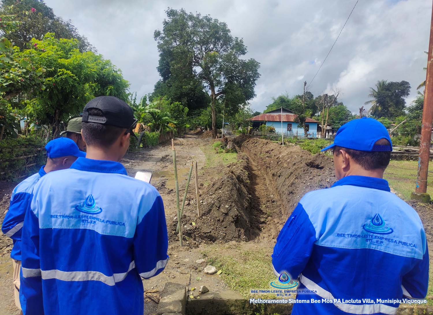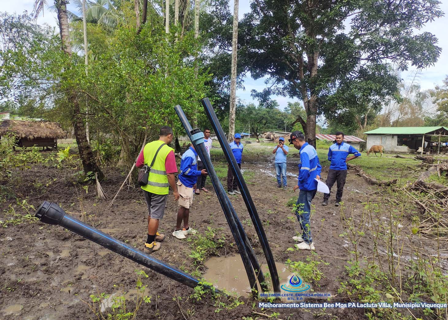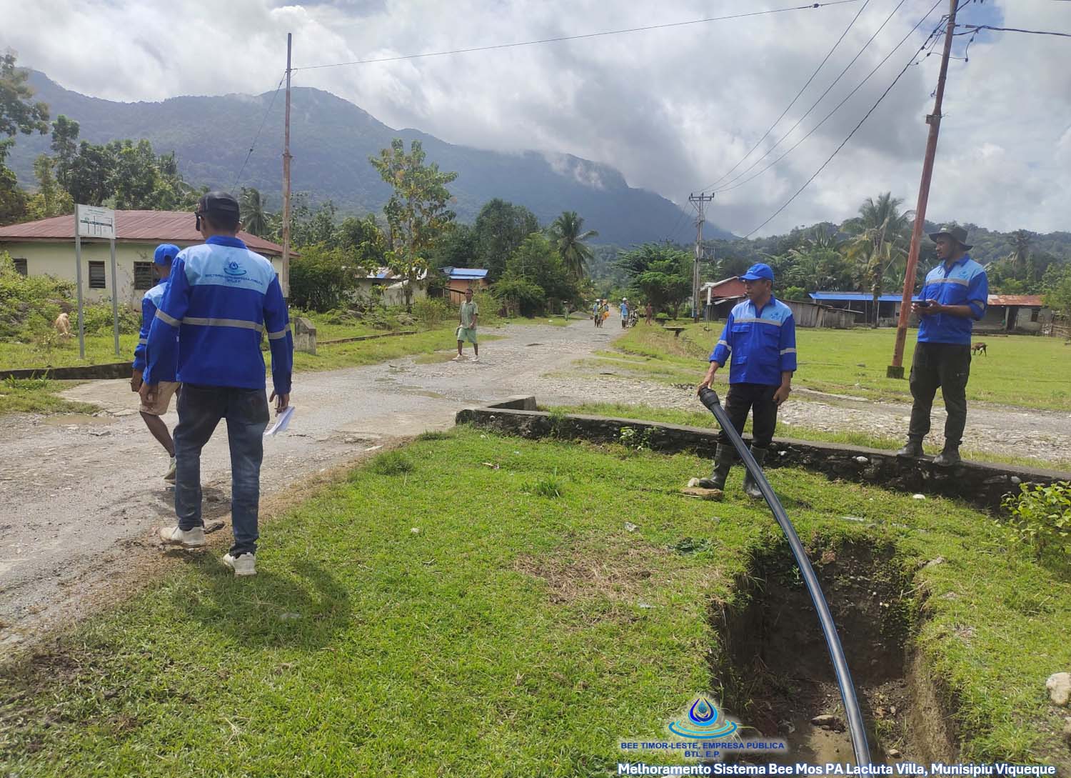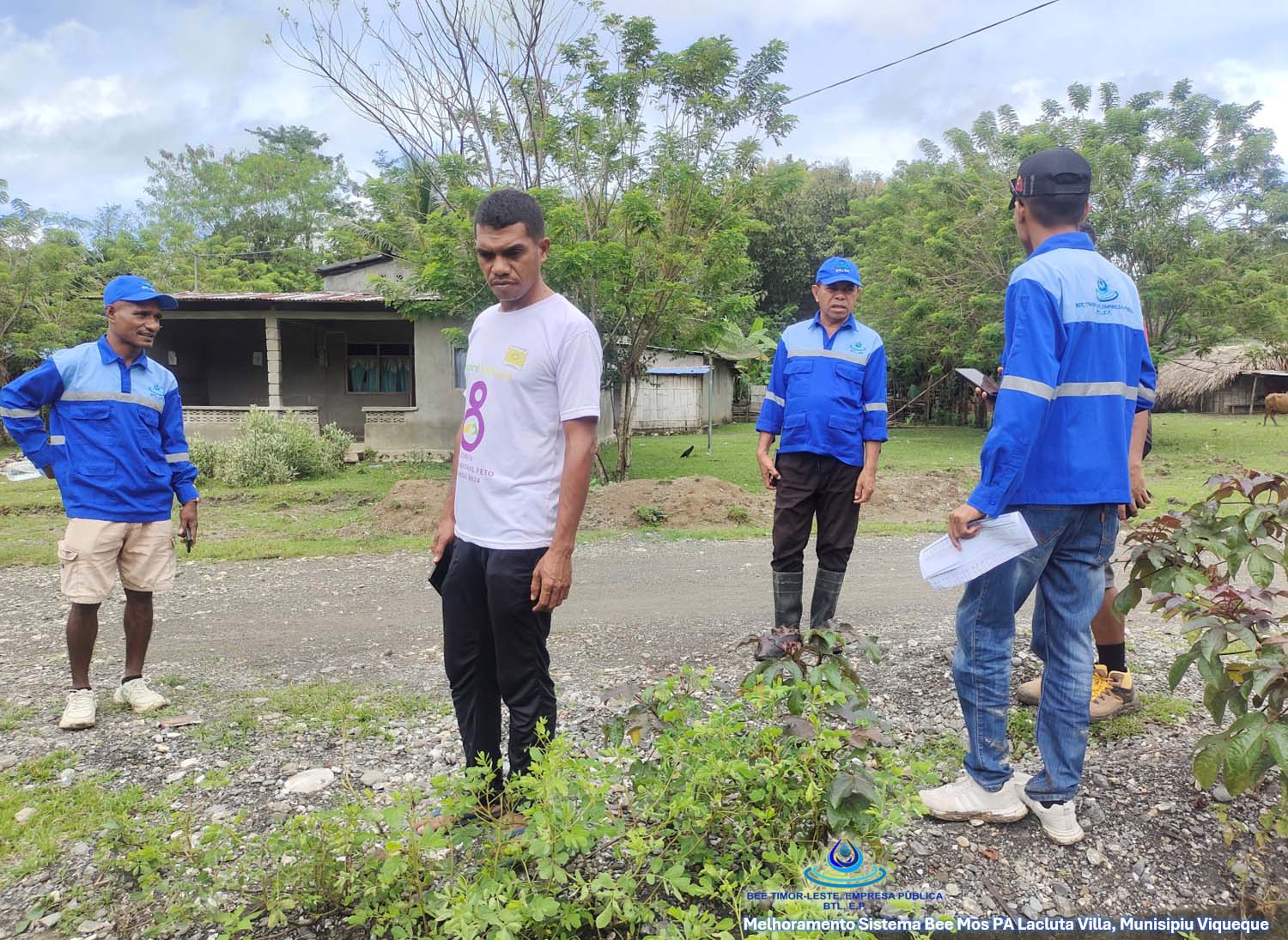 Viqueque, 03/06/2024, Iha loron 28 fulan maiu tinan ne’e, enjeñeiru hosi Departmentu Infraestrutura, Diresaun Enjeñaria no Investimentu (DEI) Bee Timor-Leste, Empreza Públika (BTL, E.P) hamutuk ho Koordenadór BTL, E.P munisípiu Viqueque, Supervisor BTL, E.P ne’ebé destakadu iha Lacluta halo monitorizasaun ba projetu melloramentu sistema bee moos ne’ebé implementa hela iha postu-administrativu Lacluta, munisípiu Viqueque.