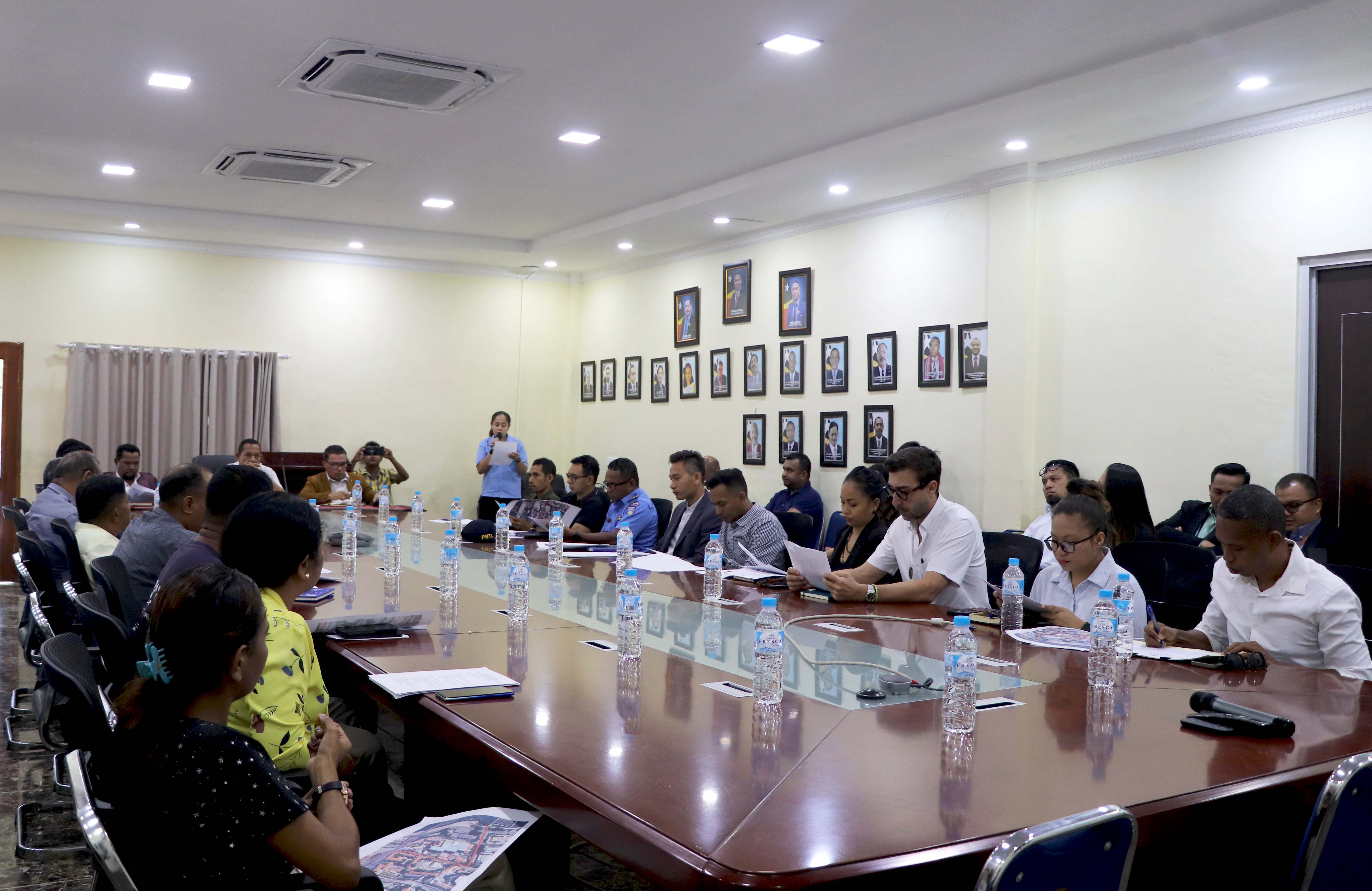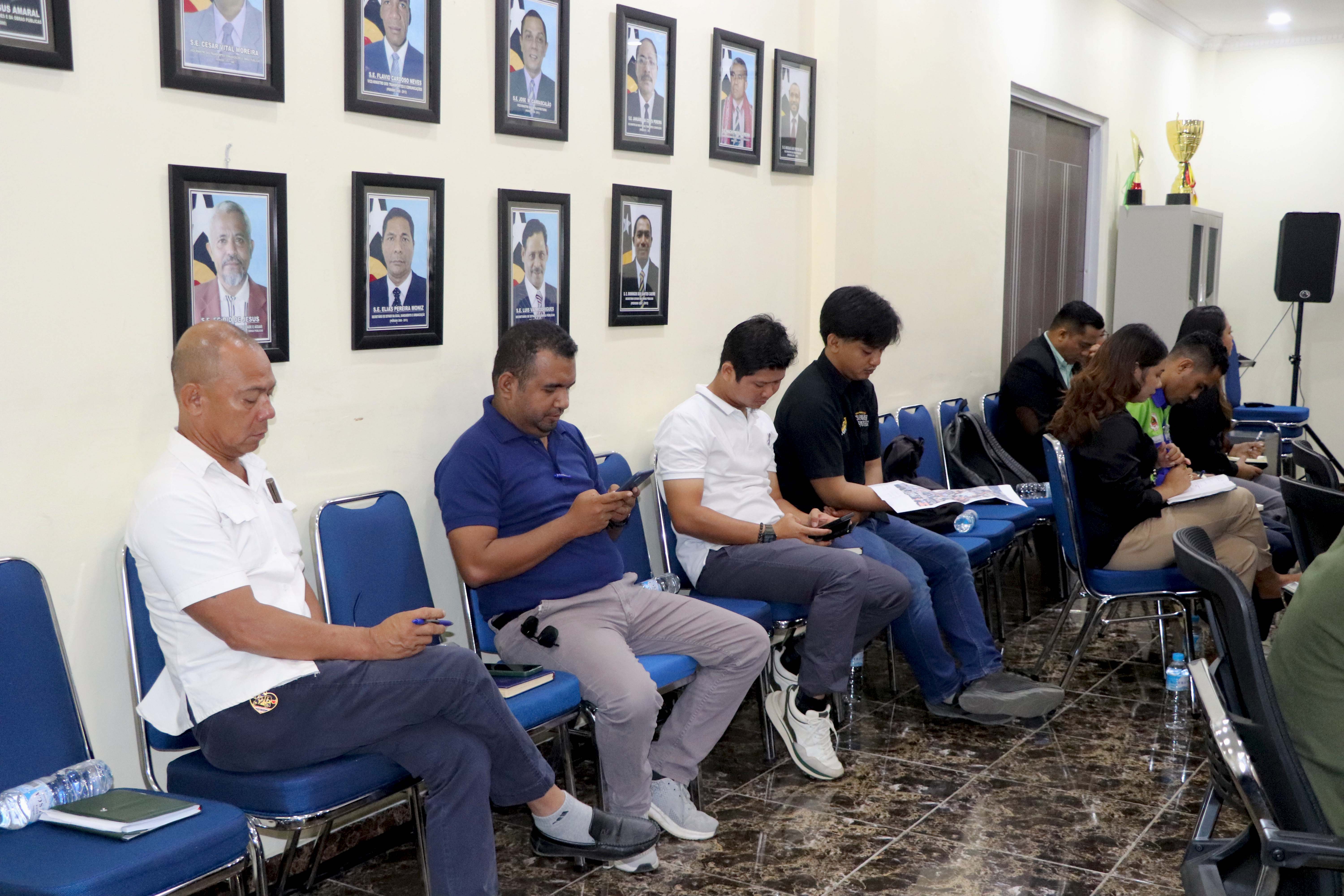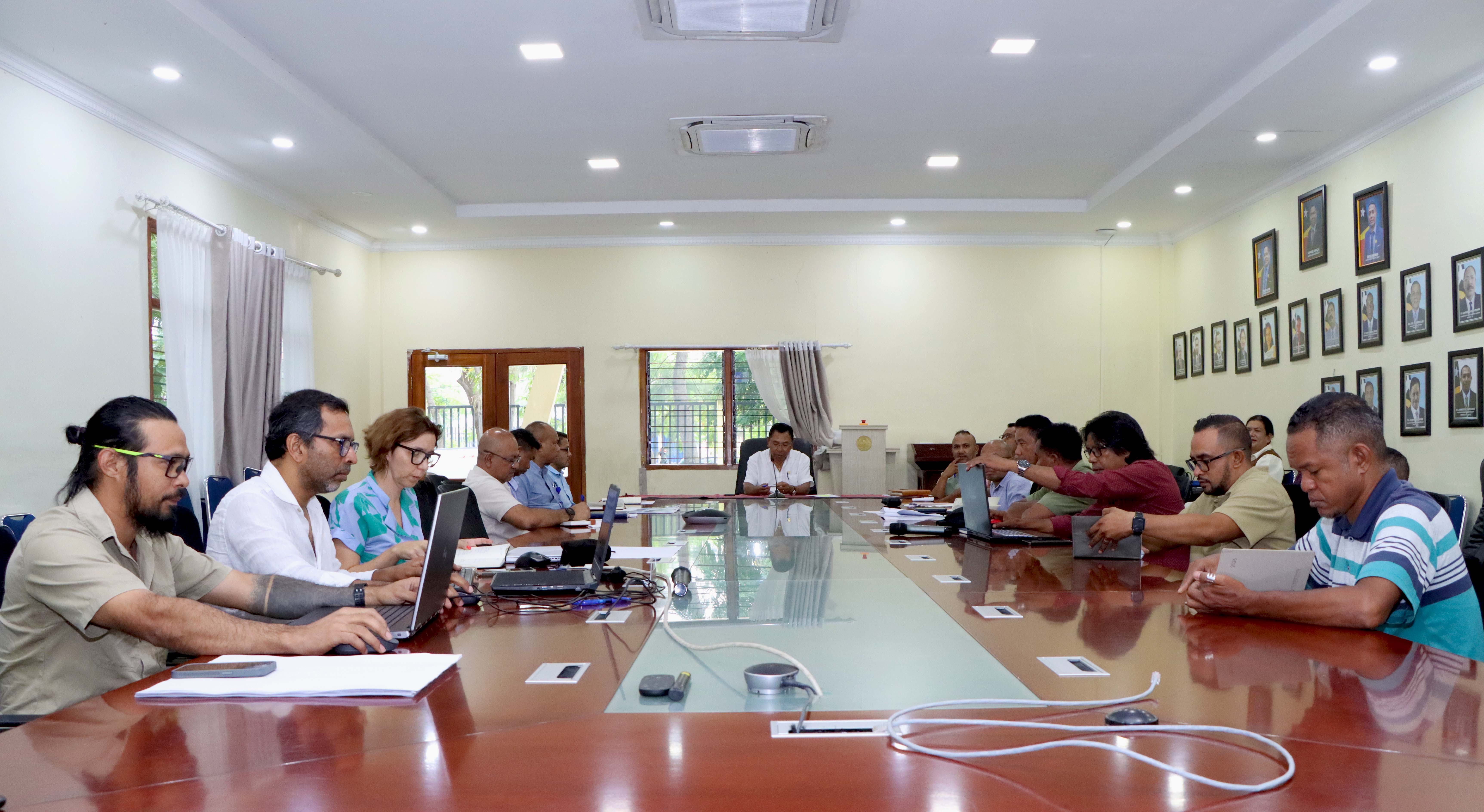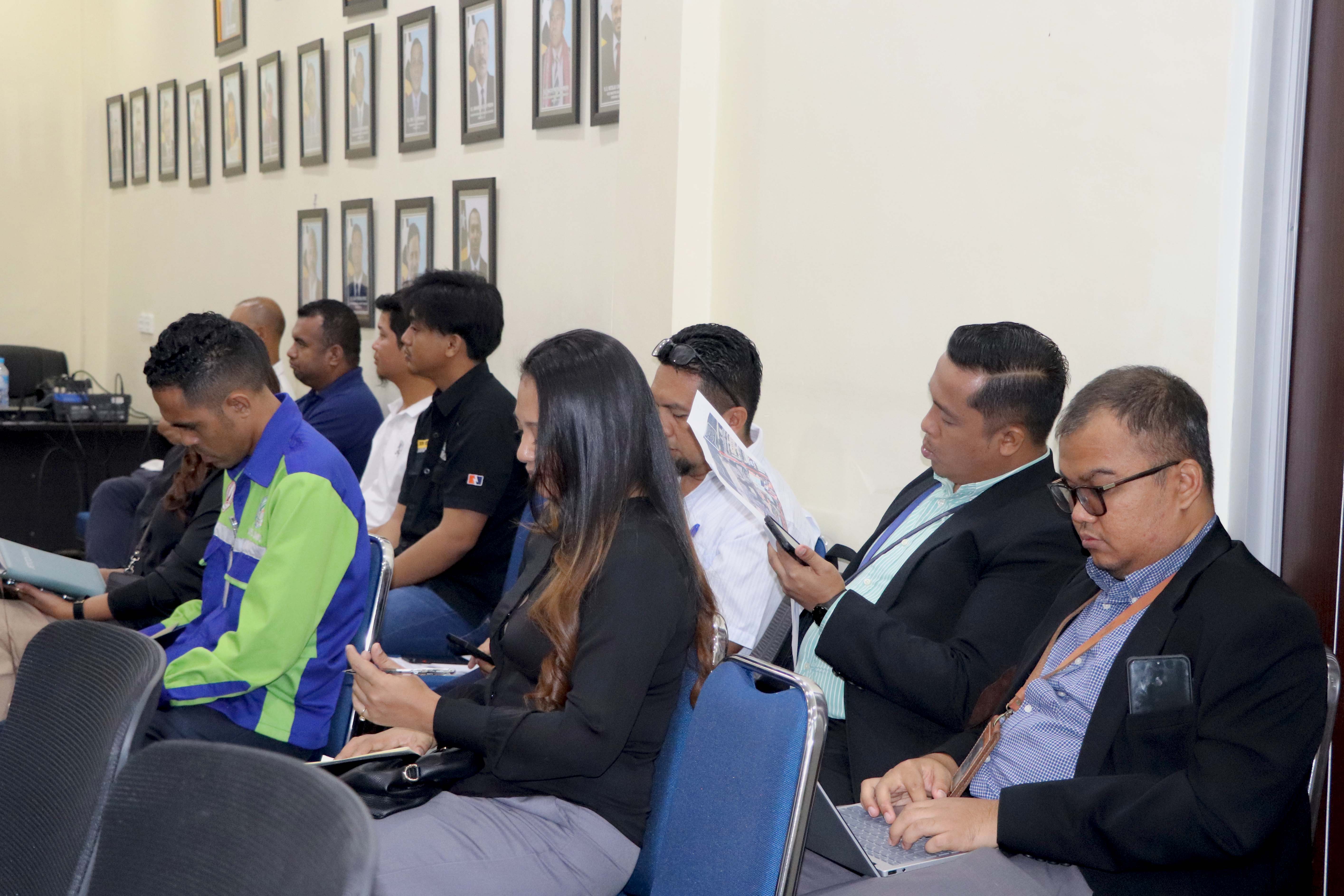 Díli, 21/10/2025, Prezidente Komisaun Ezekutiva (KE) Bee Timor-Leste, Empreza Públika (BTL, E.P), Sr. Gustavo da Cruz, Vise-Prezidente KE BTL, E.P ba Asuntu Tékniku no Vise-Prezidente KE BTL, E.P ba Asuntu Korporativu, akompaña hosi Diretór DEI, Jestór Infraestrutura no Jestór RP & GIS hamutuk ho PMU Bee no Saneamentu inklui kompañia BTK Karya Timor-Leste hala’o sorumutu ho parte relevante sira hanesan, ANLA, I.P, BNU, UNTL, Banku Mandiri, PNTL, Aroma Timor, MOP, Pateo, EDTL, E.P, Loja Lay, PAM Díli, DNTT Trade Invest TL no Lideransa suku Colmera, iha sala reuniaun MOP, Caicoli.