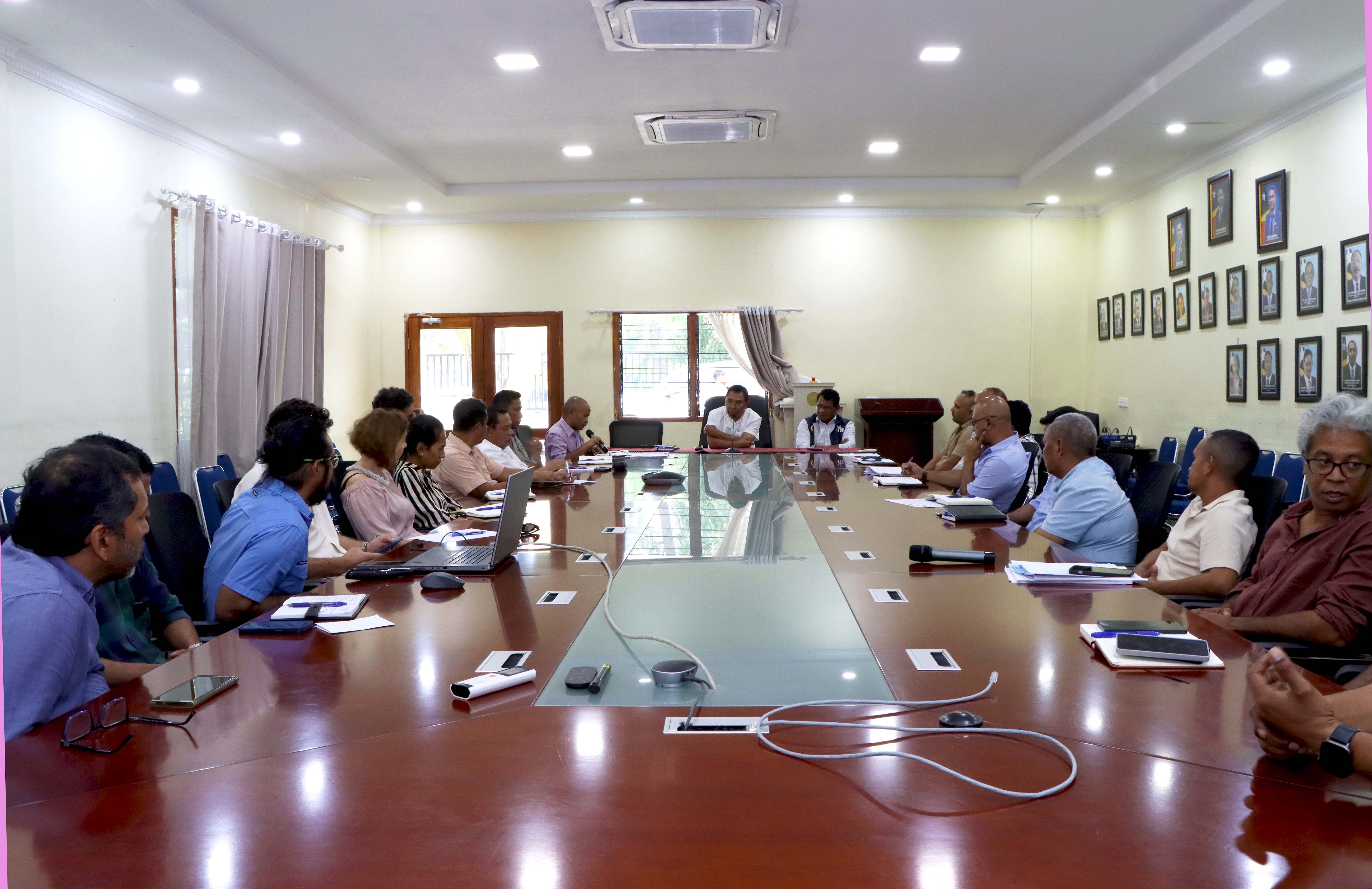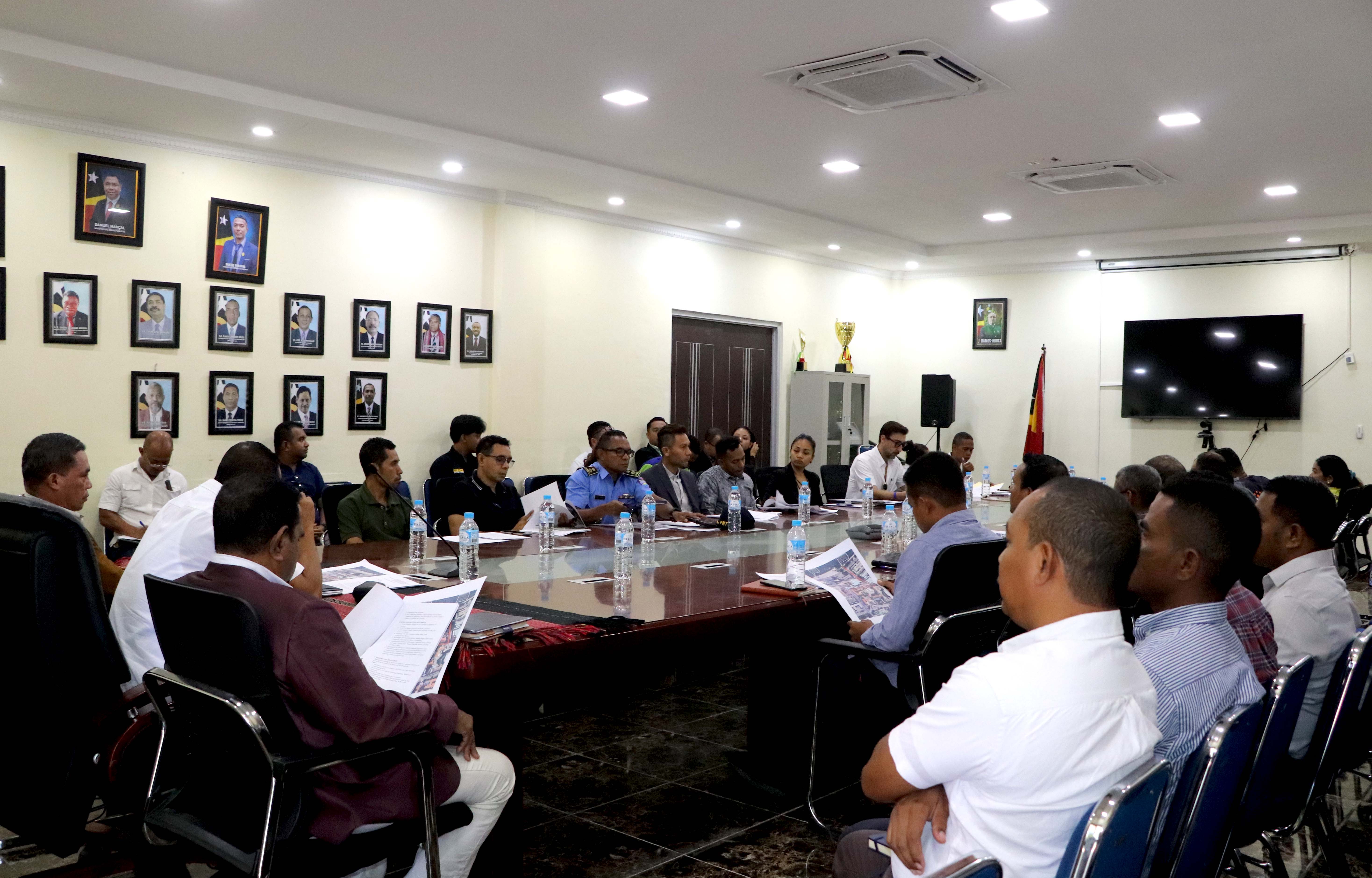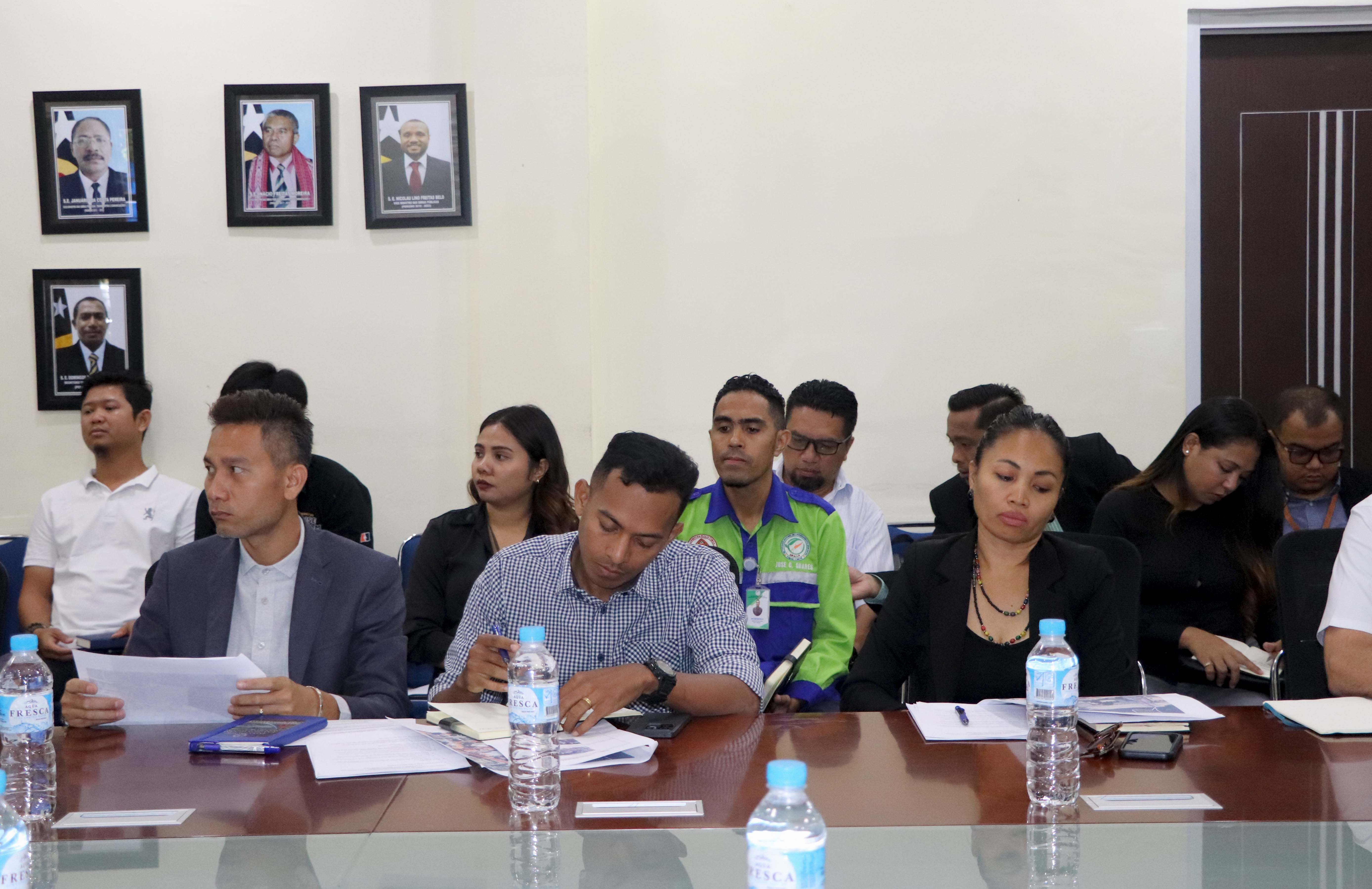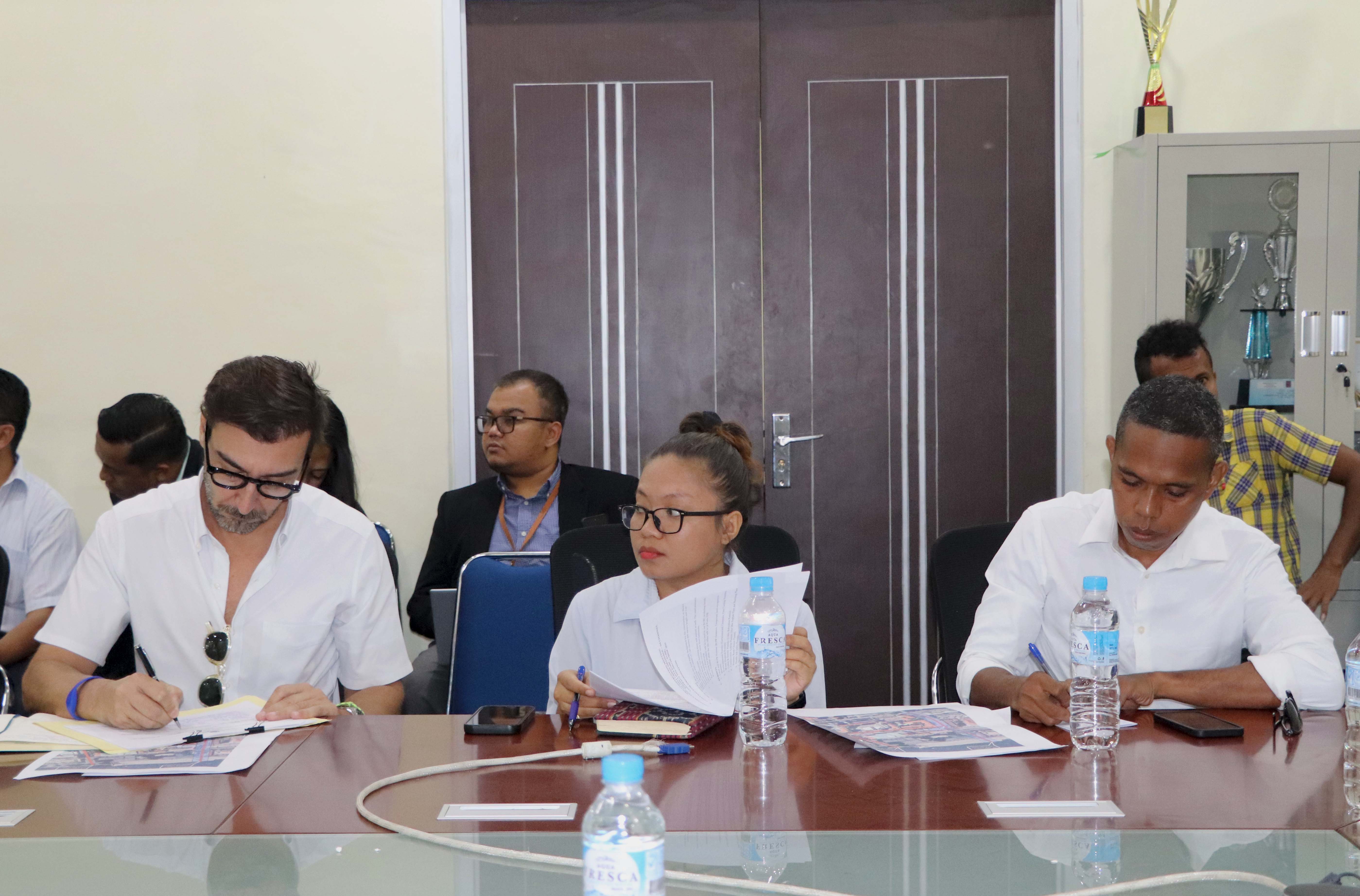 Díli, 21/10/2025, Prezidente Komisaun Ezekutiva (KE) Bee Timor-Leste, Empreza Públika (BTL, E.P), Sr. Gustavo da Cruz, Vise-Prezidente KE BTL, E.P ba Asuntu Tékniku no Vise-Prezidente KE BTL, E.P ba Asuntu Korporativu, akompaña hosi Diretór DEI, Jestór Infraestrutura no Jestór RP & GIS hamutuk ho PMU Bee no Saneamentu inklui kompañia BTK Karya Timor-Leste hala’o sorumutu ho parte relevante sira hanesan, ANLA, I.P, BNU, UNTL, Banku Mandiri, PNTL, Aroma Timor, MOP, Pateo, EDTL, E.P, Loja Lay, PAM Díli, DNTT Trade Invest TL no Lideransa suku Colmera, iha sala reuniaun MOP, Caicoli.