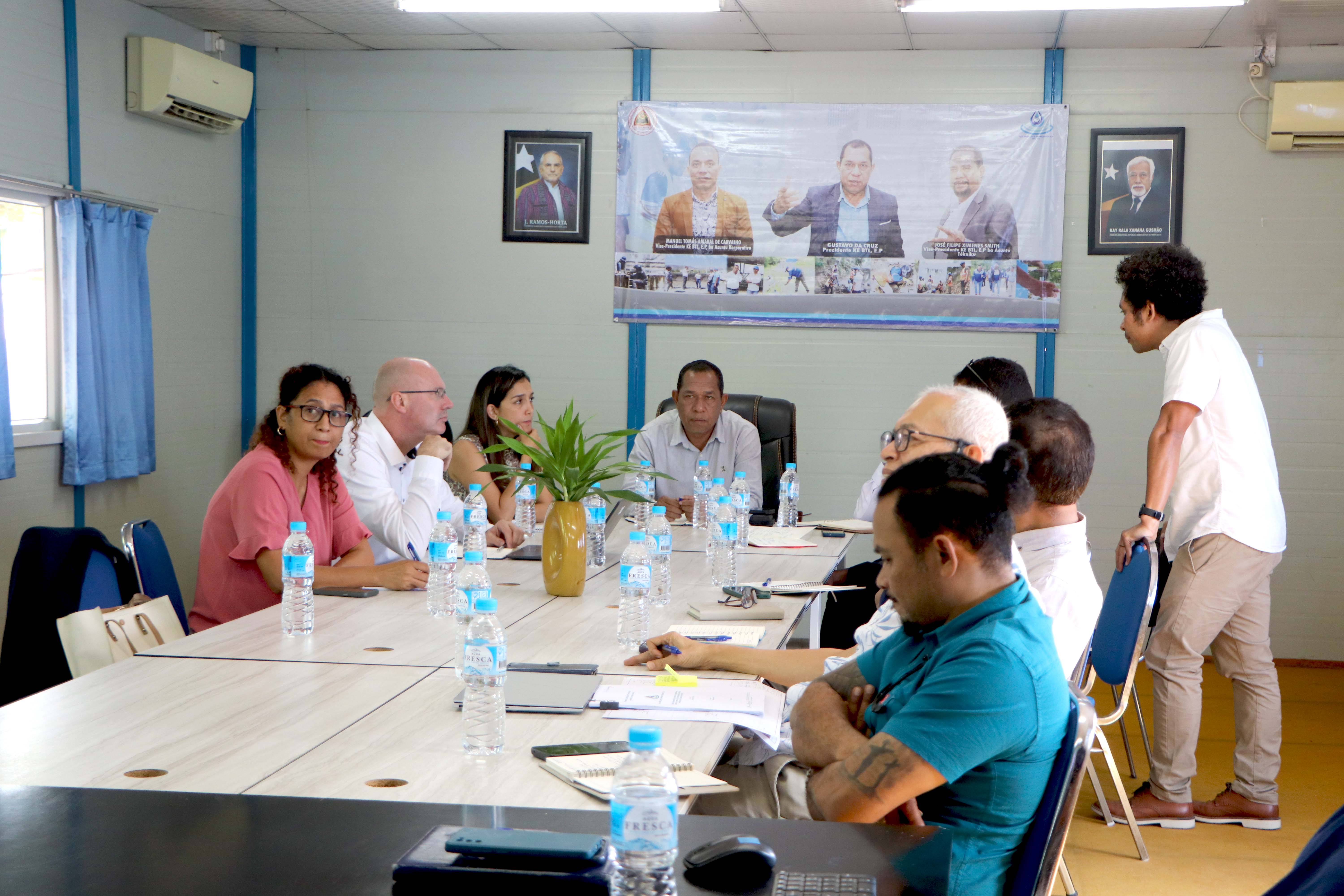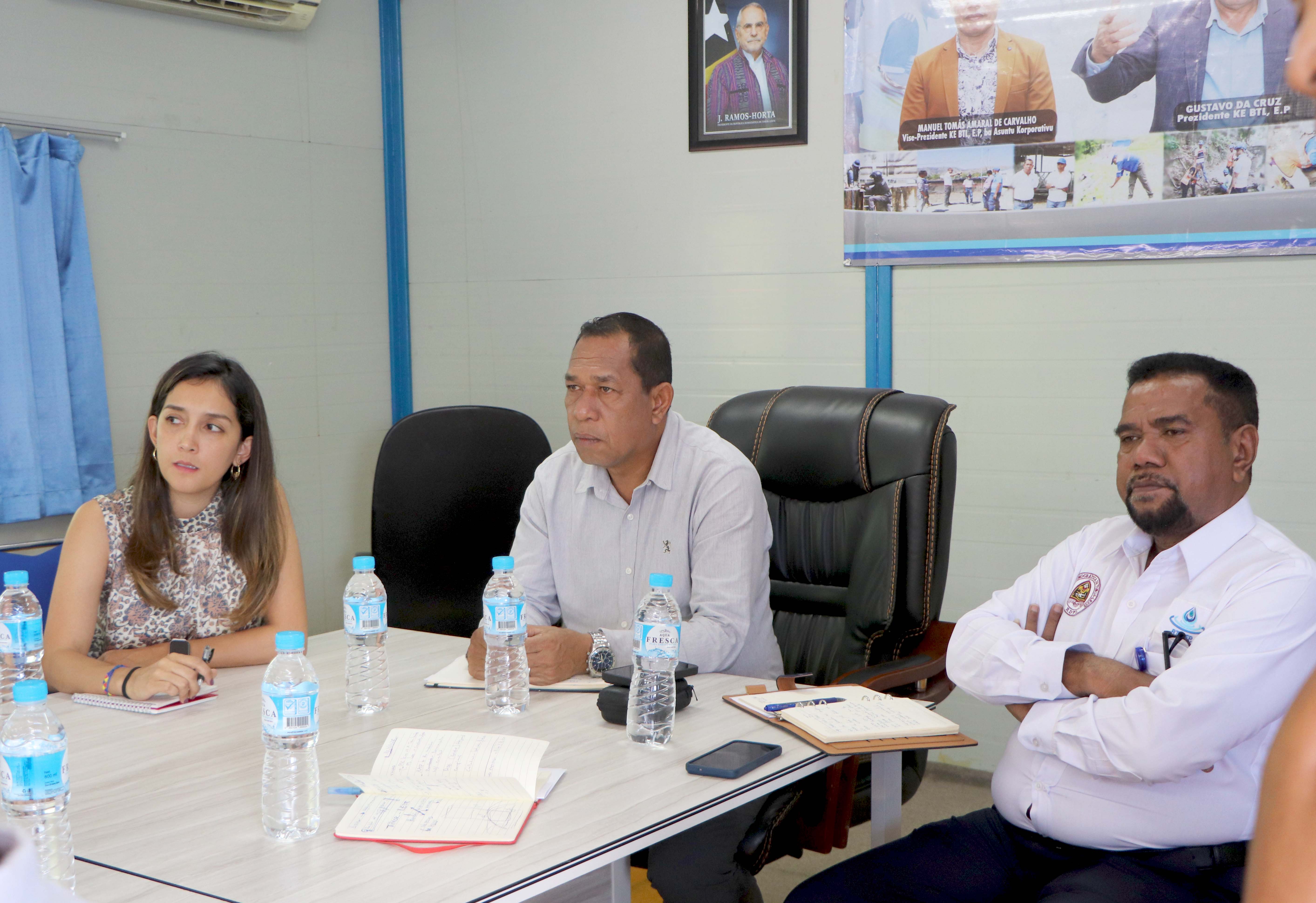๐๐ขฬ๐ฅ๐ข, ๐๐ ๐๐๐ง๐๐ข๐ซ๐ฎ ๐๐๐๐. Prezidente Komisaun Ezekutiva (KE) Bee Timor-Leste, Empreza Públika (BTL, E.P), Gustavo da Cruz ho Vise-Prezidente KE BTL, E.P ba Asuntu Tékniku, José Filipe Ximenes Smith, hamutuk ho Koordenadór PMU ๐๐๐ก๐๐๐ ho ekipa, hala’o enkontru koordenasaun servisu ho reprezentante ๐๐๐๐๐ ๐ต๐๐๐ ๐บ๐๐๐ข๐ (WBG)/Grupu Banku Mundiál iha Timor Leste. Enkontru ne’e realiza iha sala reuniaun BTL, E.P Caicoli.
