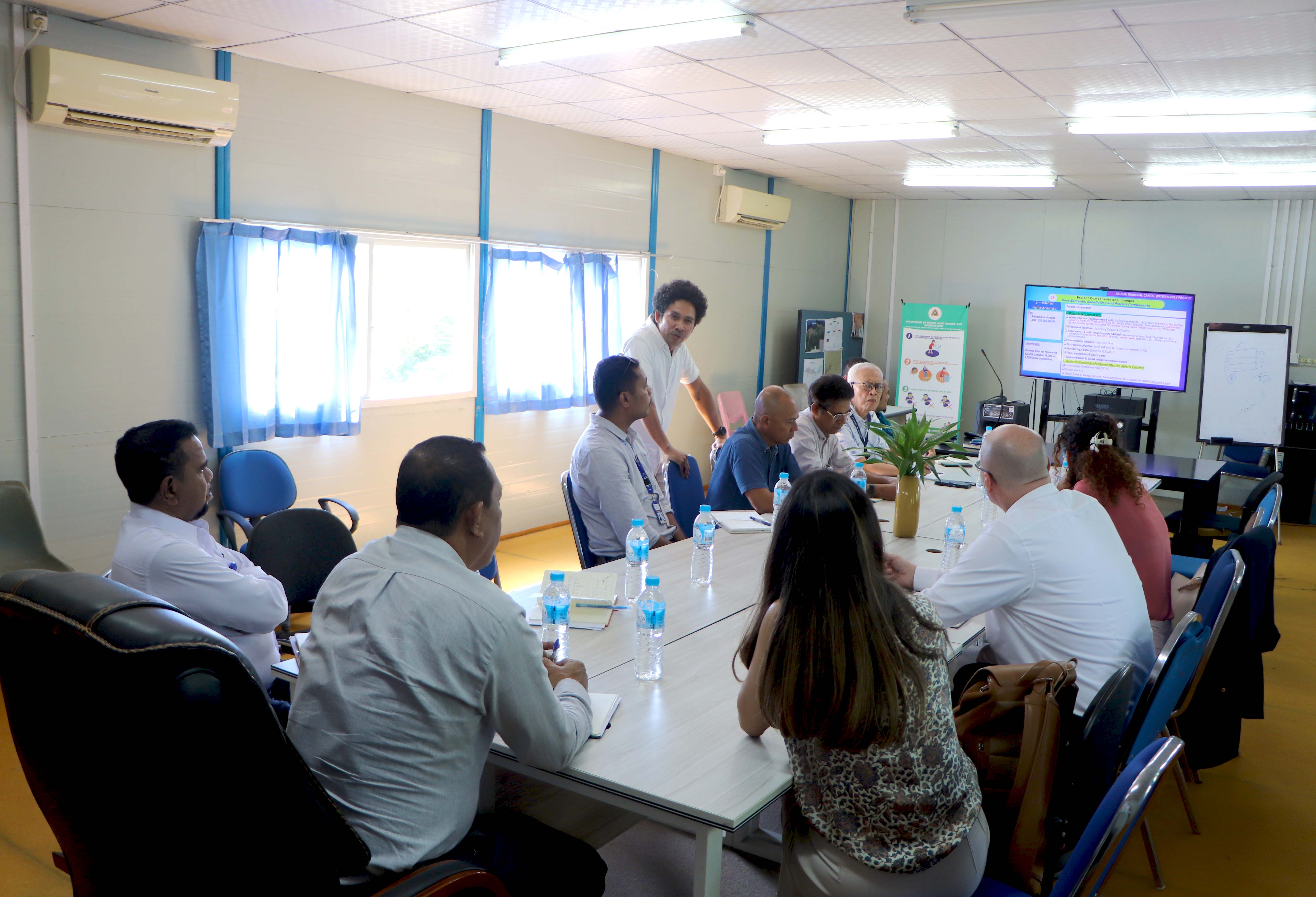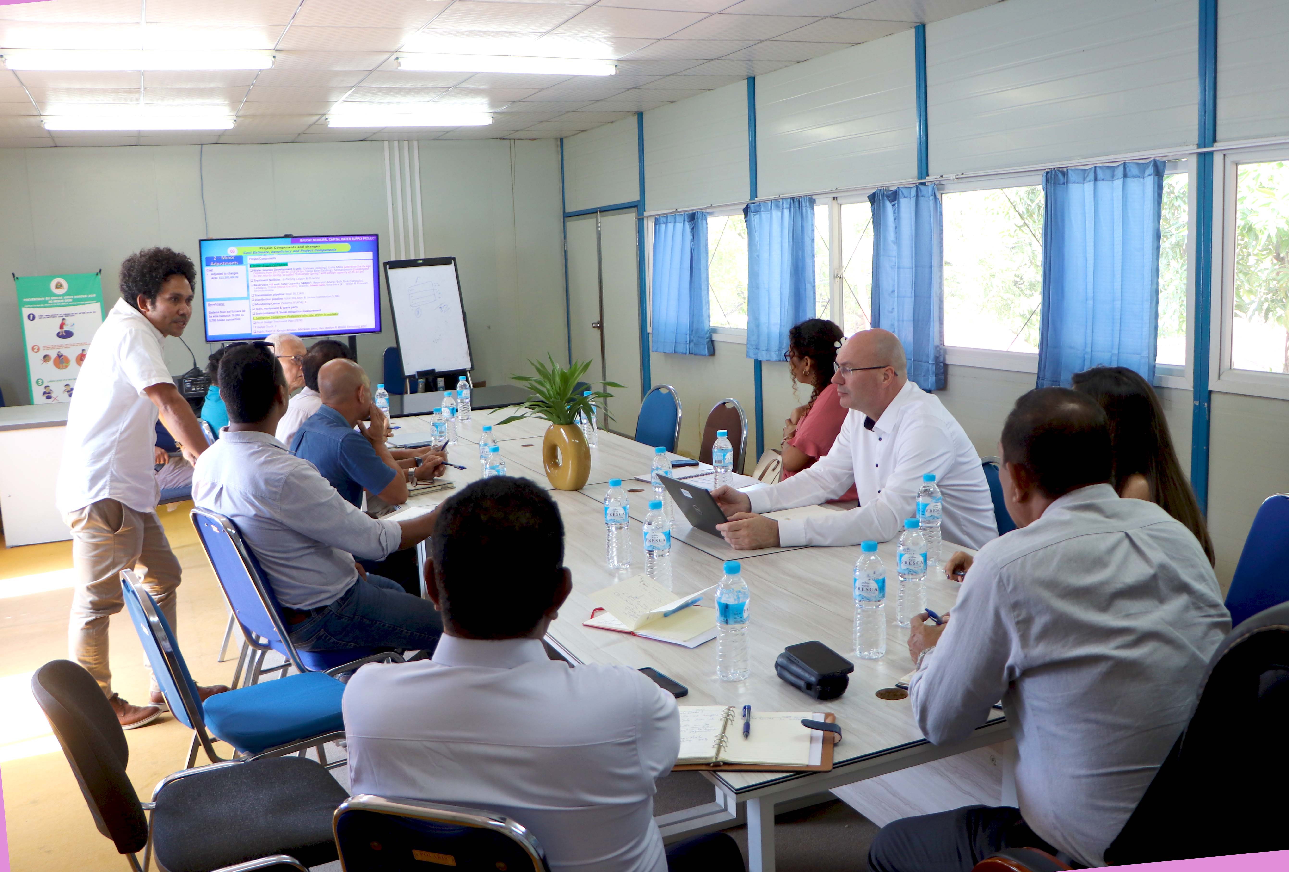Sorumutu ne’e, hodi koordena ou deskute kona-bá projetu sistema bee moos ba kapitál Munisípiu Baucau nian, ne’ebé antes ne’e kansela ona, maibé daudaun ne’e, parte ๐๐๐๐๐ ๐ต๐๐๐ ๐บ๐๐๐ข๐ haree oinsá atu bele kontinua fila-fali projetu referidu. Tanba ne’e ohin, parte BTL, E.P mós fó ona esplikasaun kona-bá lala’ok projetu ne’e, atu sira mos bele entende.