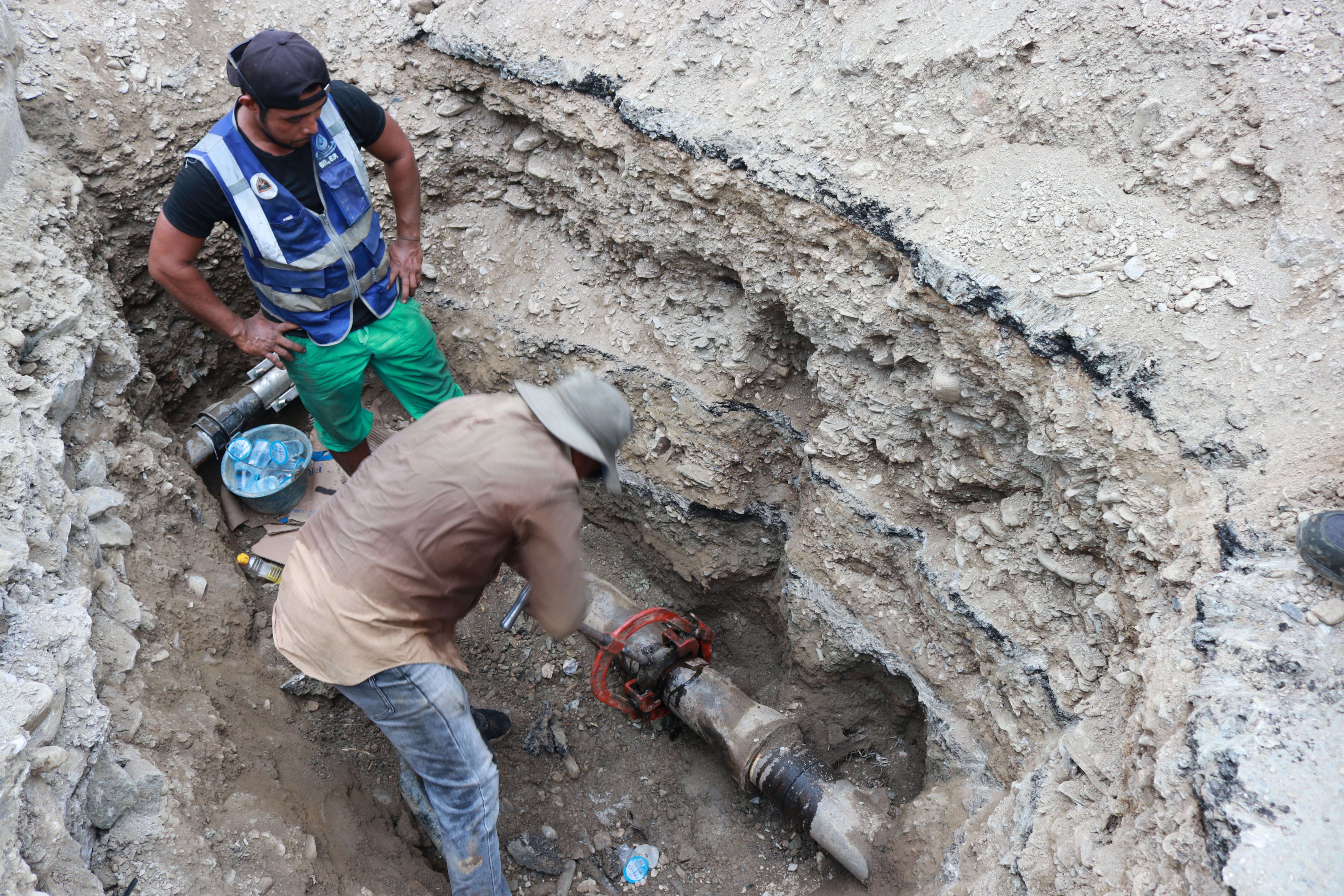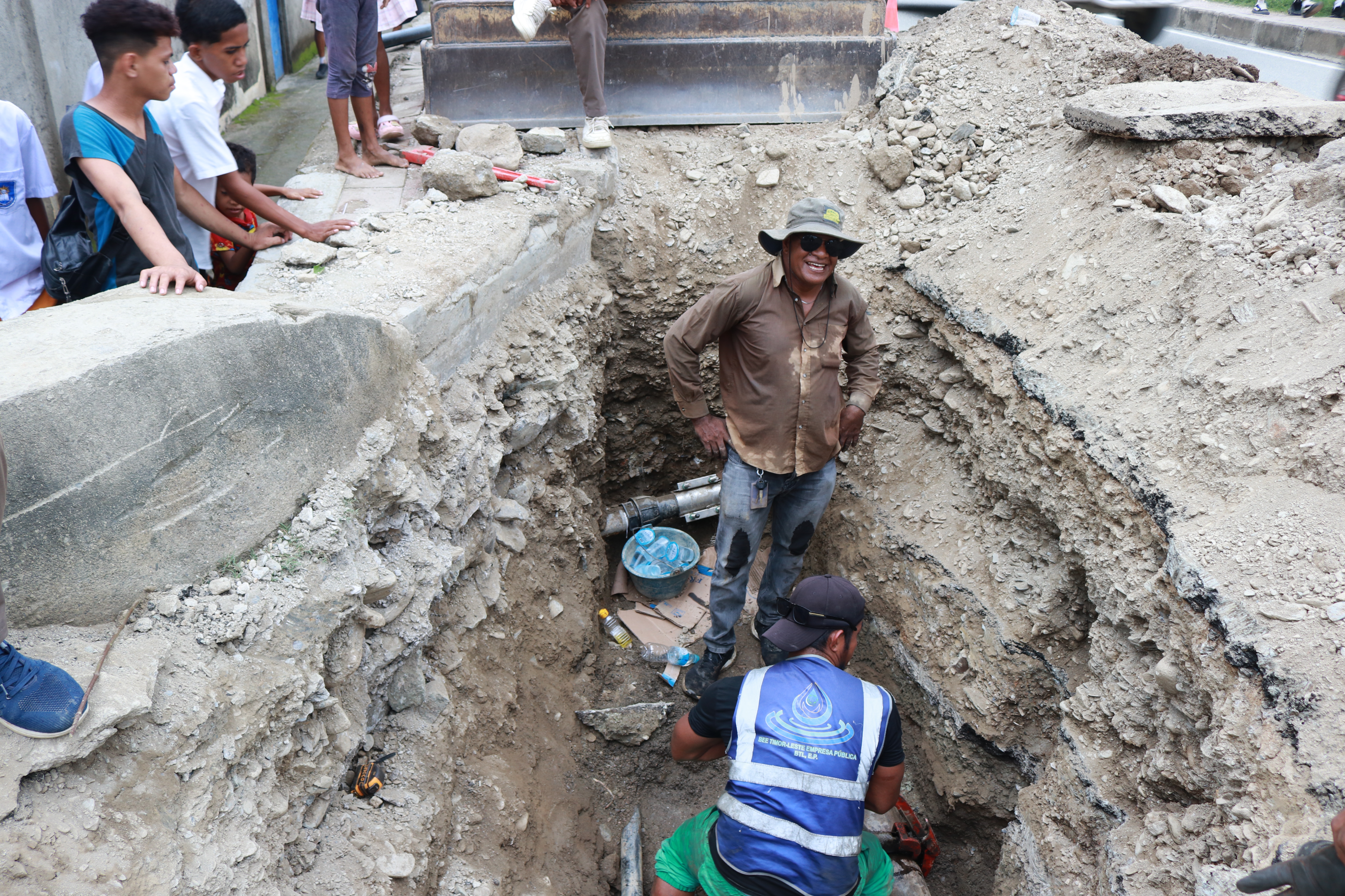 Dili,23/02/2026.Vise-Prezidente KE BTL, E.P ba Asuntu Tékniku, José Filipe Ximenes Smith, Vise-Prezidente KE BTL, E.P ba Asuntu Korporativu, Manuel Tomas Amaral de Carvalho,halo Observasaun ba servisu Ekipa Tékniku Operadsaun no Manutensaun Bee Timor-Leste, Empreza Públika (BTL, E.P) ne'ebe kontinua halo servisu melloramentu sistema kanalizasaun bee, iha Aldeia Kakeu Laran ,suku Becora.