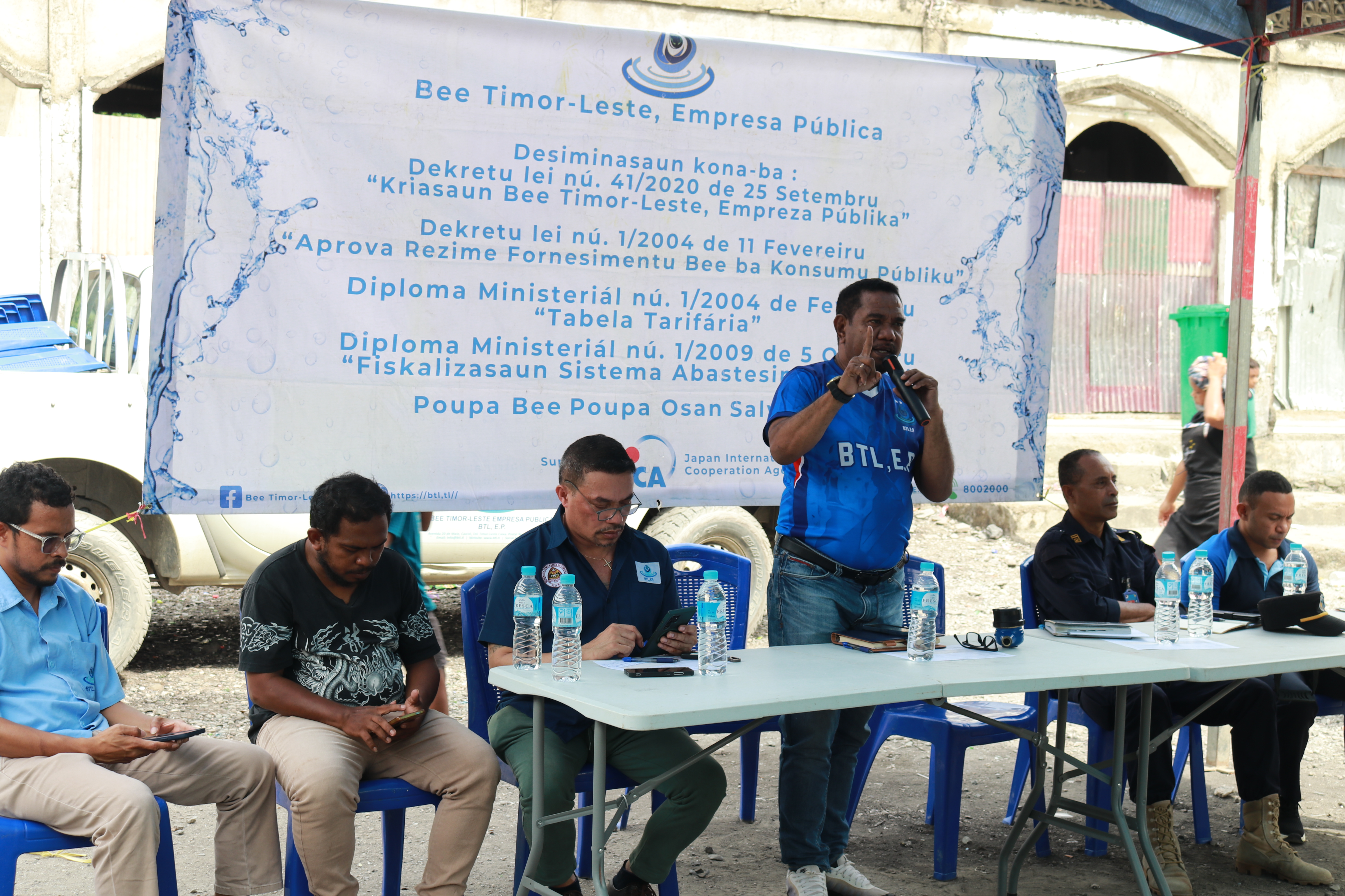 Iha atividade sosializasaun ne’e, Ekipa Tekniku BTL, E.P partilha informasaun detalla kona-ba Dekretu Lei nú. 41/2020 loron 25 fulan Setembru ne’ebé ko’alia kona-bá “Kriasaun Bee Timor-Leste, Empreza Públika (BTL, E.P), Dekretu Lei nú. 4/2004 loron 11 fulan Fevereiru, kona-bá “Aprova Rejime Fornesimentu Bee ba Konsumu Públiku”, nune’e mos Diploma Ministeriál nú. 1/2004 loron 11 fulan Fevereiru ne’ebé ko’alia kona-bá “Tabela Tarifária” no ikus liu Diploma Ministeriál nú. 1/2009 loron 5 fulan Outubru, kona-bá “Fiskalizasaun Sistema Abastesimentu Bee”.