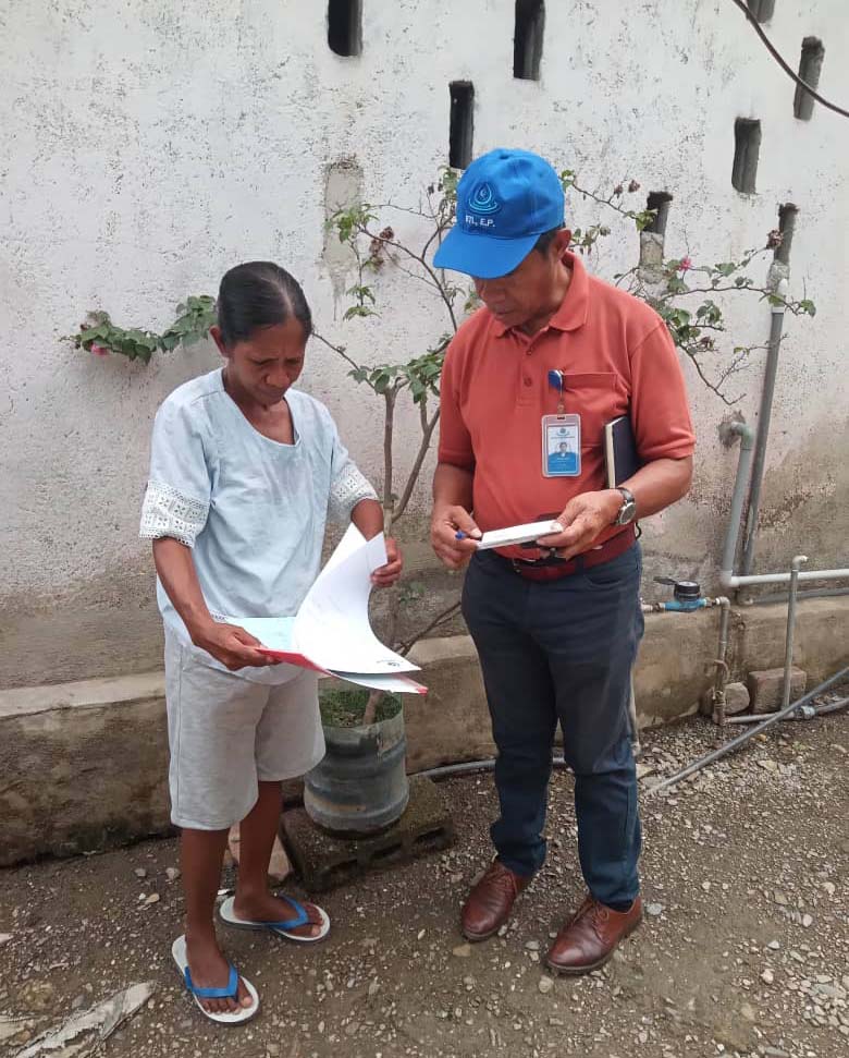 Díli, 15/01/2025. Vise-Prezidente Komisaun Ezekutiva (KE) Bee Timor-Leste, Empreza Públika (BTL, E.P) ba Asuntu Tékniku, Sr. José Filipe Ximenes Smith akompaña hosi Diretór Operasaun no Manutensaun (DOM) ho ekipa nomos Xefe aldeia La’o Rai, tun ba terrenu hodi observa direta koneksaun ilegál sira iha aldeia La’o Rai, suku Culuhun, postu-administrativu Cristo Rei, Díli.