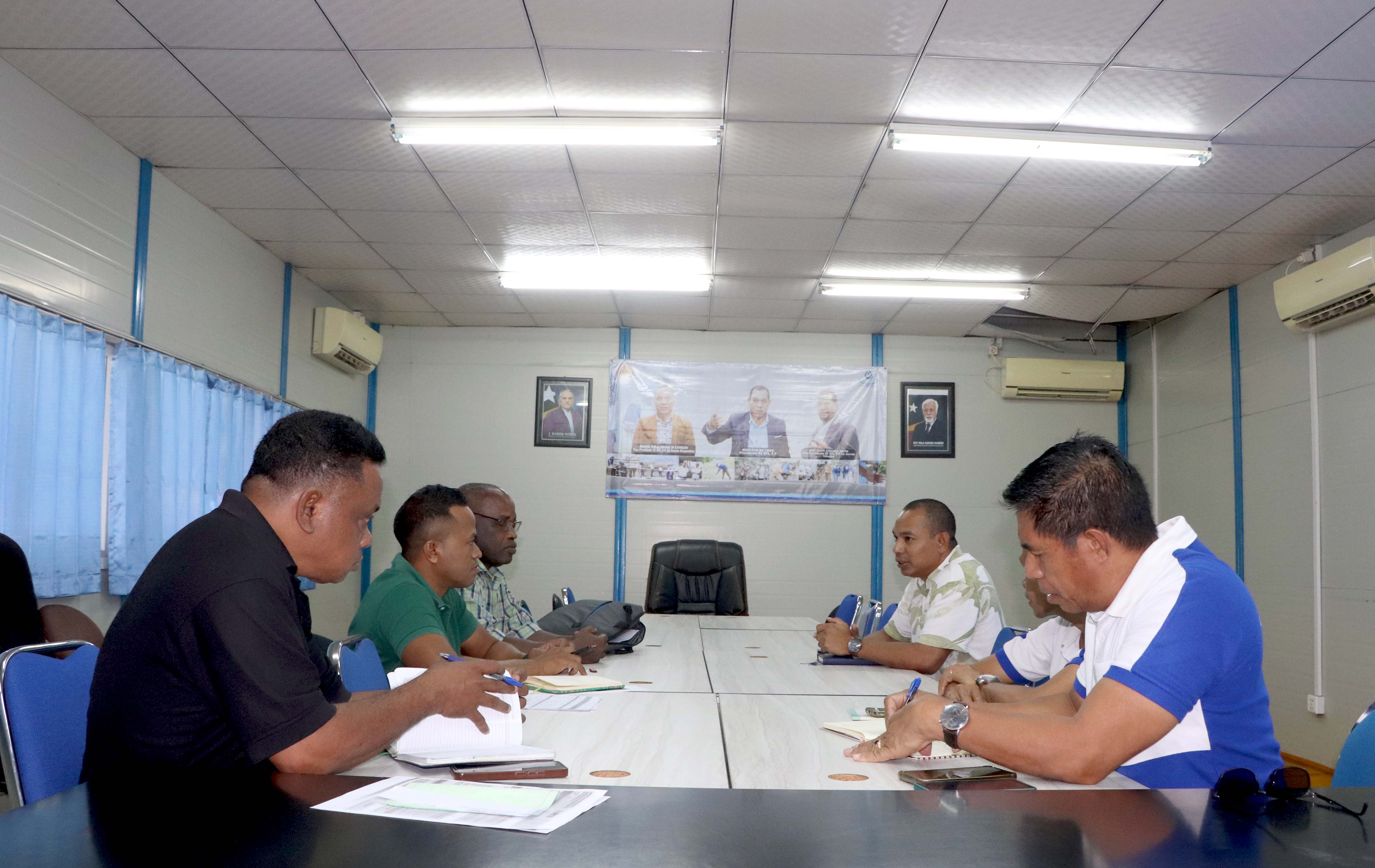 Díli, 08/01/2024, Vise-Prezidente Komisaun Ezekutiva Bee Timor-Leste, Empreza Públika (BTL, E.P) ba Asuntu Sistema Bee, Saneamentu no Drenajen, Sr. Gustavo da Cruz enkontru dahuluk ho Diretór DNRAS Sr. Belarmino Freitas Gomes dos Santos ho ekipa, iha sala reuniaun ezekutiva BTL, E.P, Caicoli.