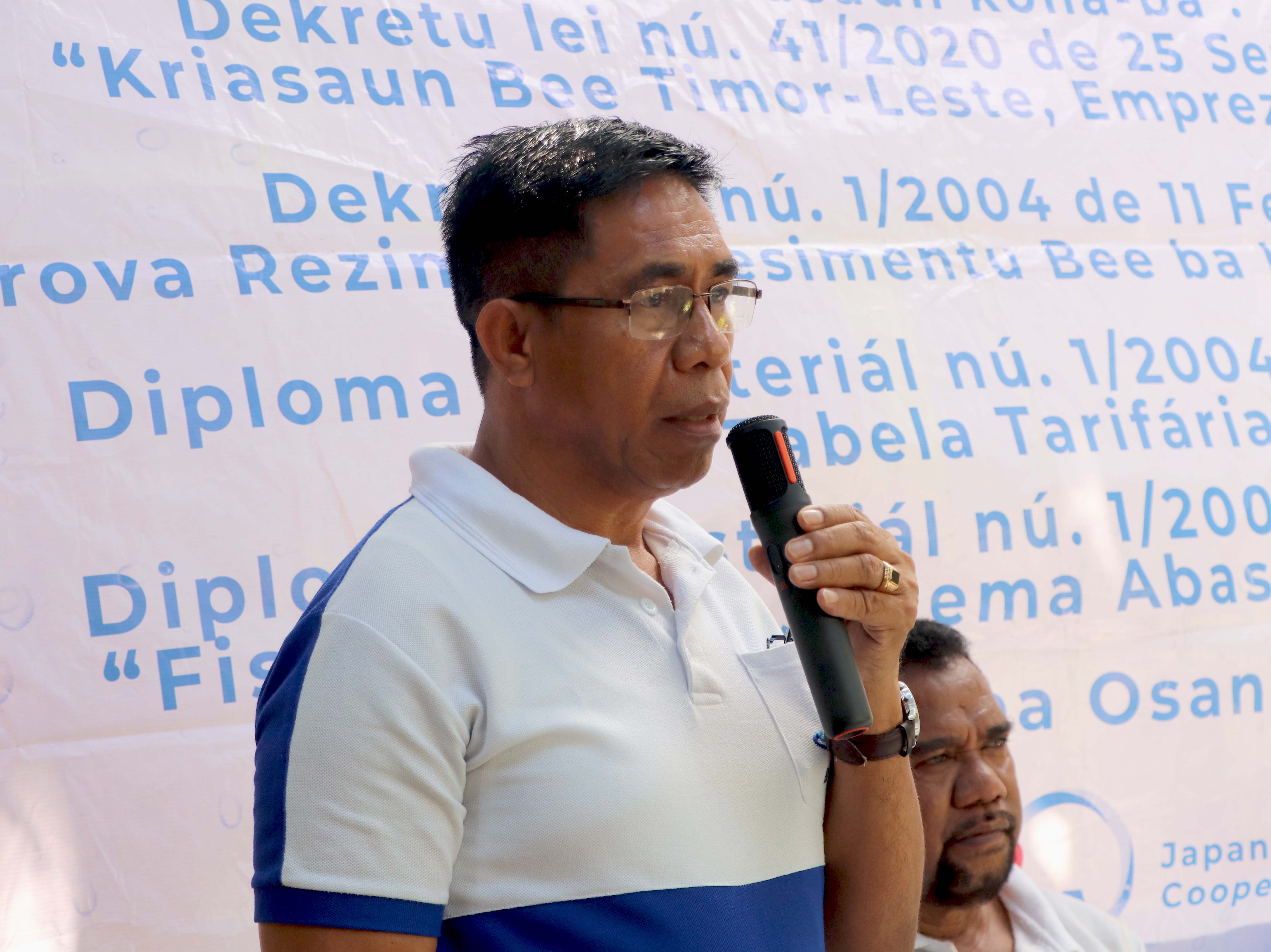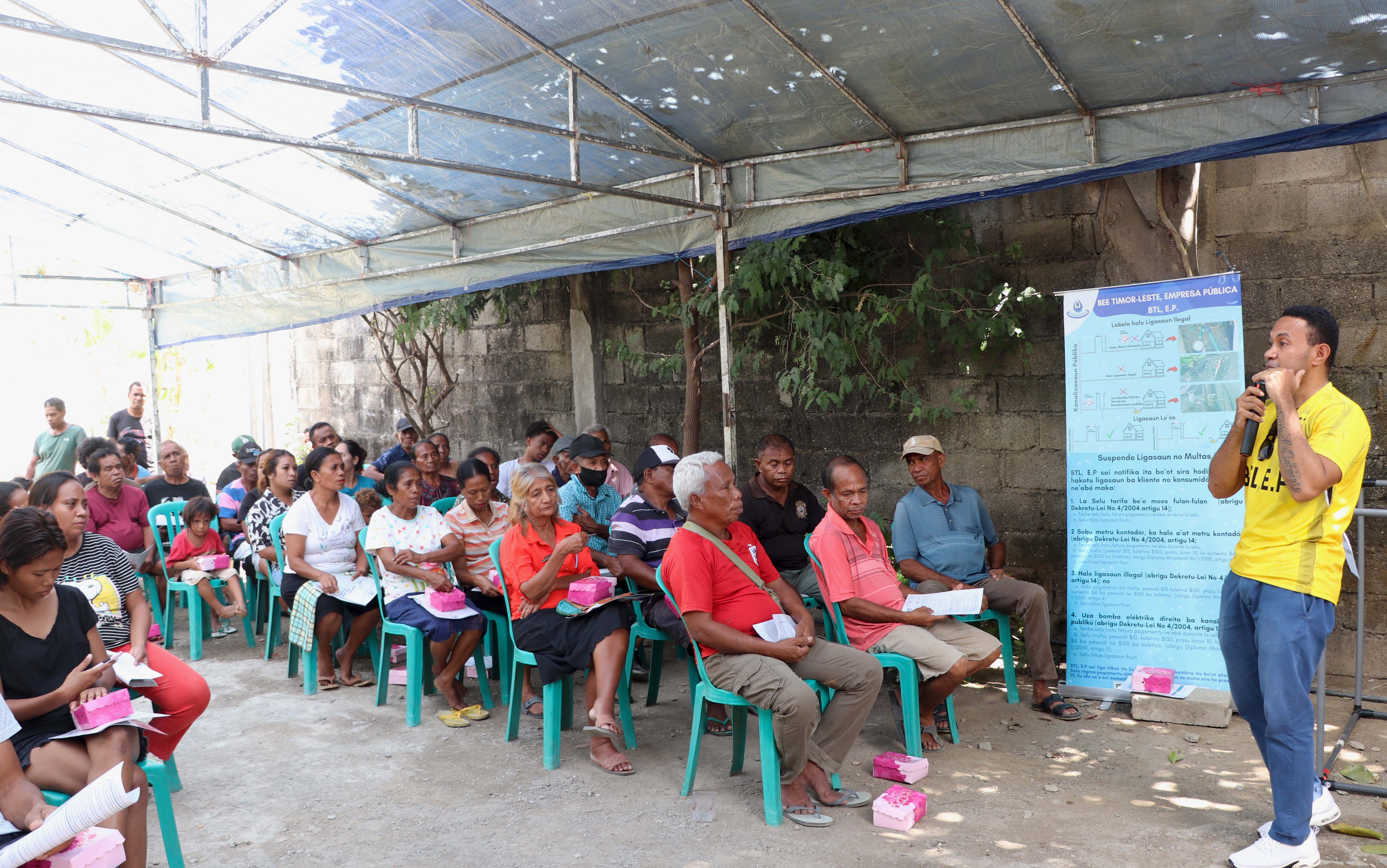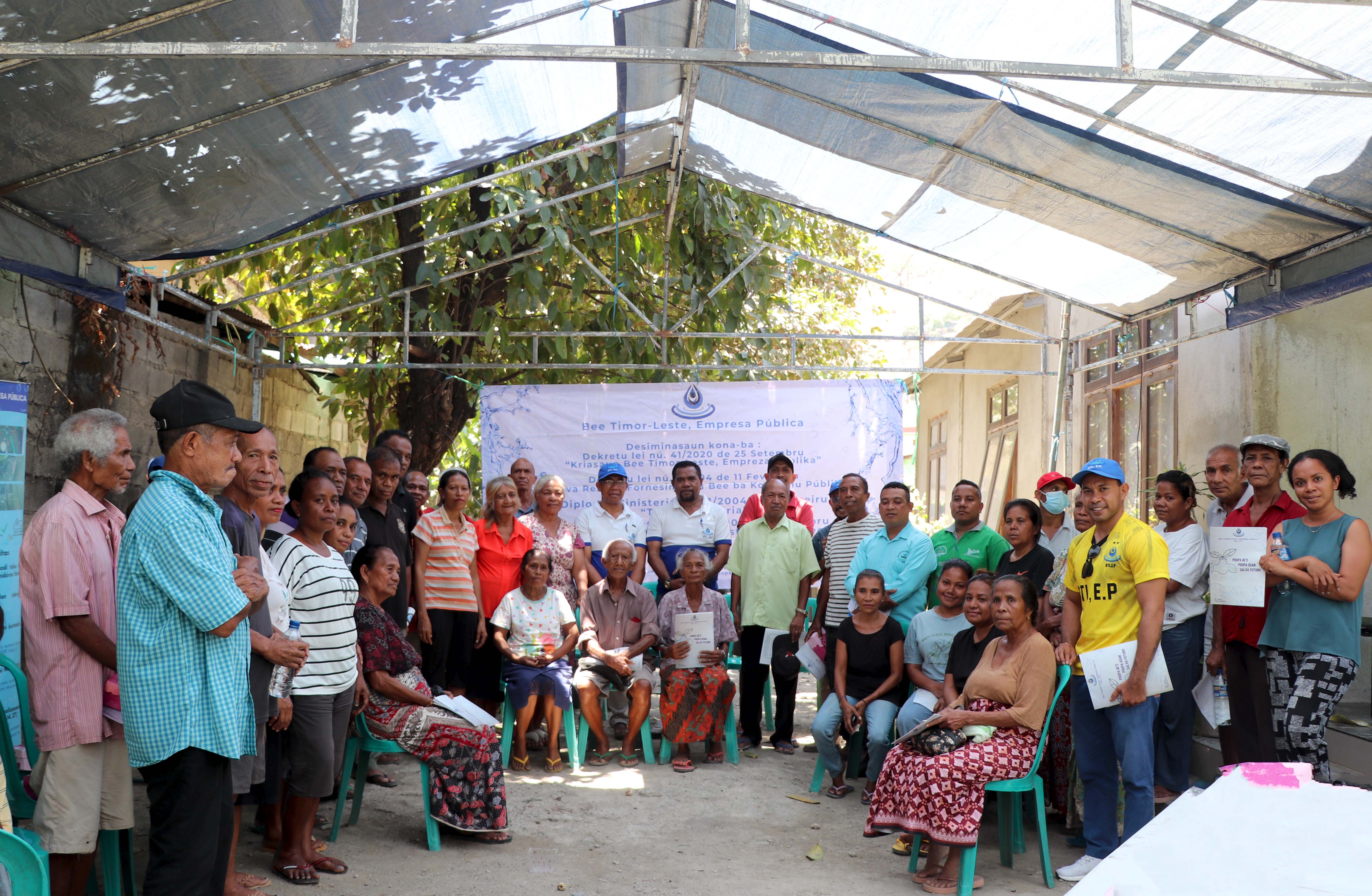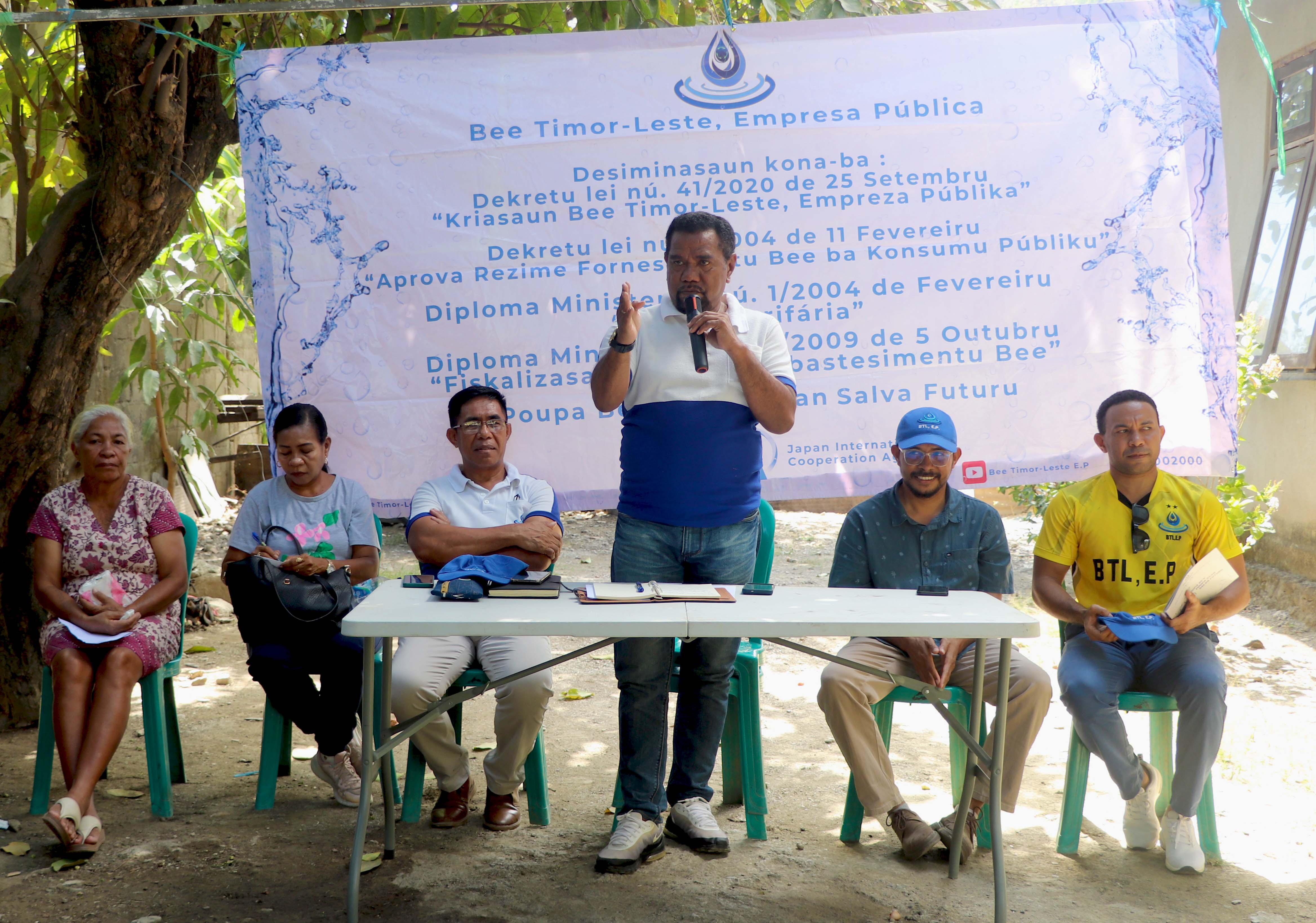 Iha atividade sosializasaun ne’e, hodi partilla informasaun ba abitante sira, liga ba regulamentu ne’ebé abrigu iha Dekretu Lei nú. 41/2020 loron 25 fulan Setembru ne’ebé ko’alia kona-bá “Kriasaun Bee Timor-Leste, Empreza Públika (BTL, E.P), Dekretu Lei nú. 4/2004 loron 11 fulan Fevereiru, kona-bá “Aprova Rejime Fornesimentu Bee ba Konsumu Públiku”, nune’e mos Diploma Ministeriál nú. 1/2004 loron 11 fulan Fevereiru ne’ebé ko’alia kona-bá “Tabela Tarifária” no ikus liu Diploma Ministeriál nú. 1/2009 loron 5 fulan Outubru, kona-bá “Fiskalizasaun Sistema Abastesimentu Bee”. Atu nune’e abitante sira bele entende didi’ak regras BTL, E.P nian, liu-liu oinsá atu selu tarifa bee, proibisaun ba koneksaun ilegál, labele estraga fasilidade públika nomos oinsá atu halo ligasaun foun ba uma.