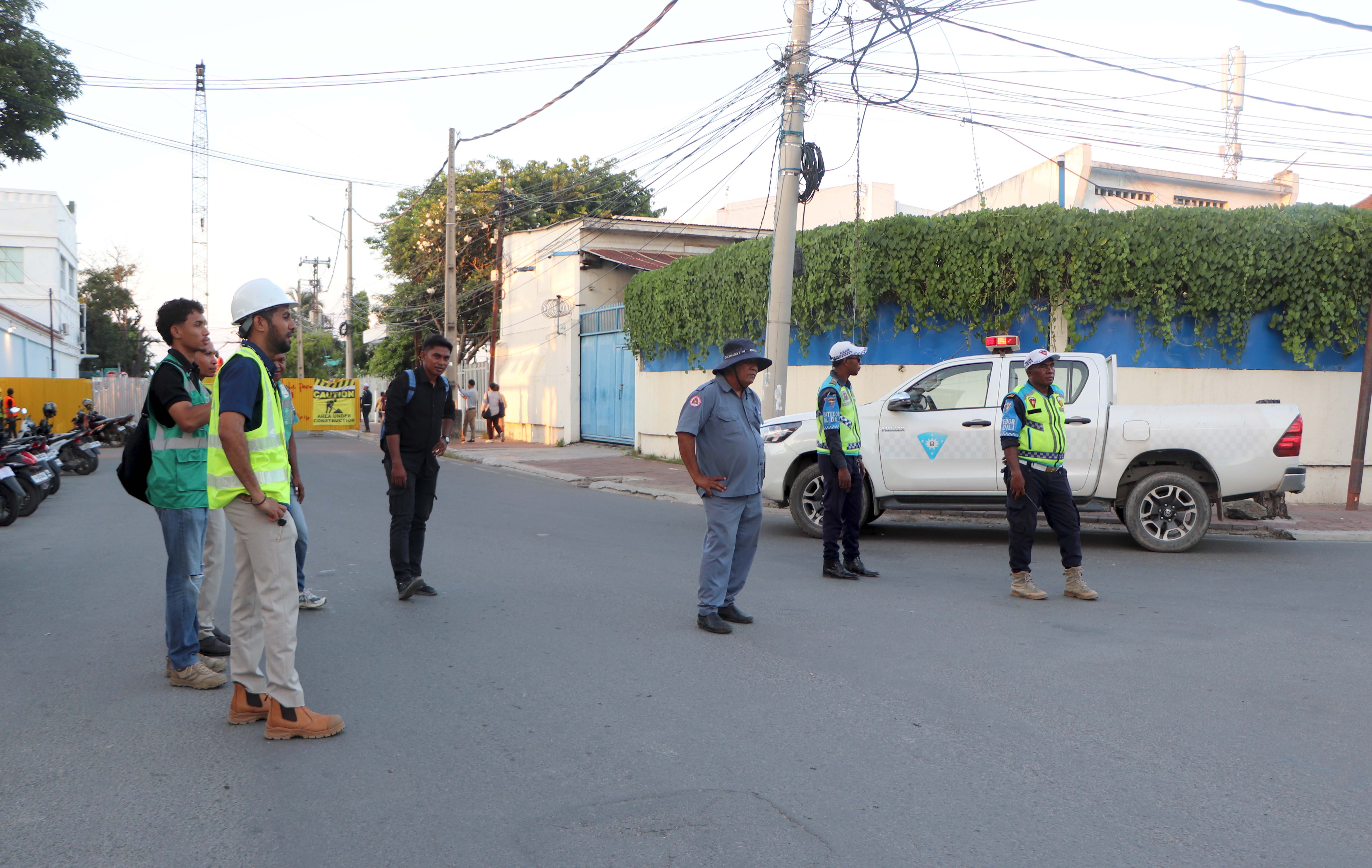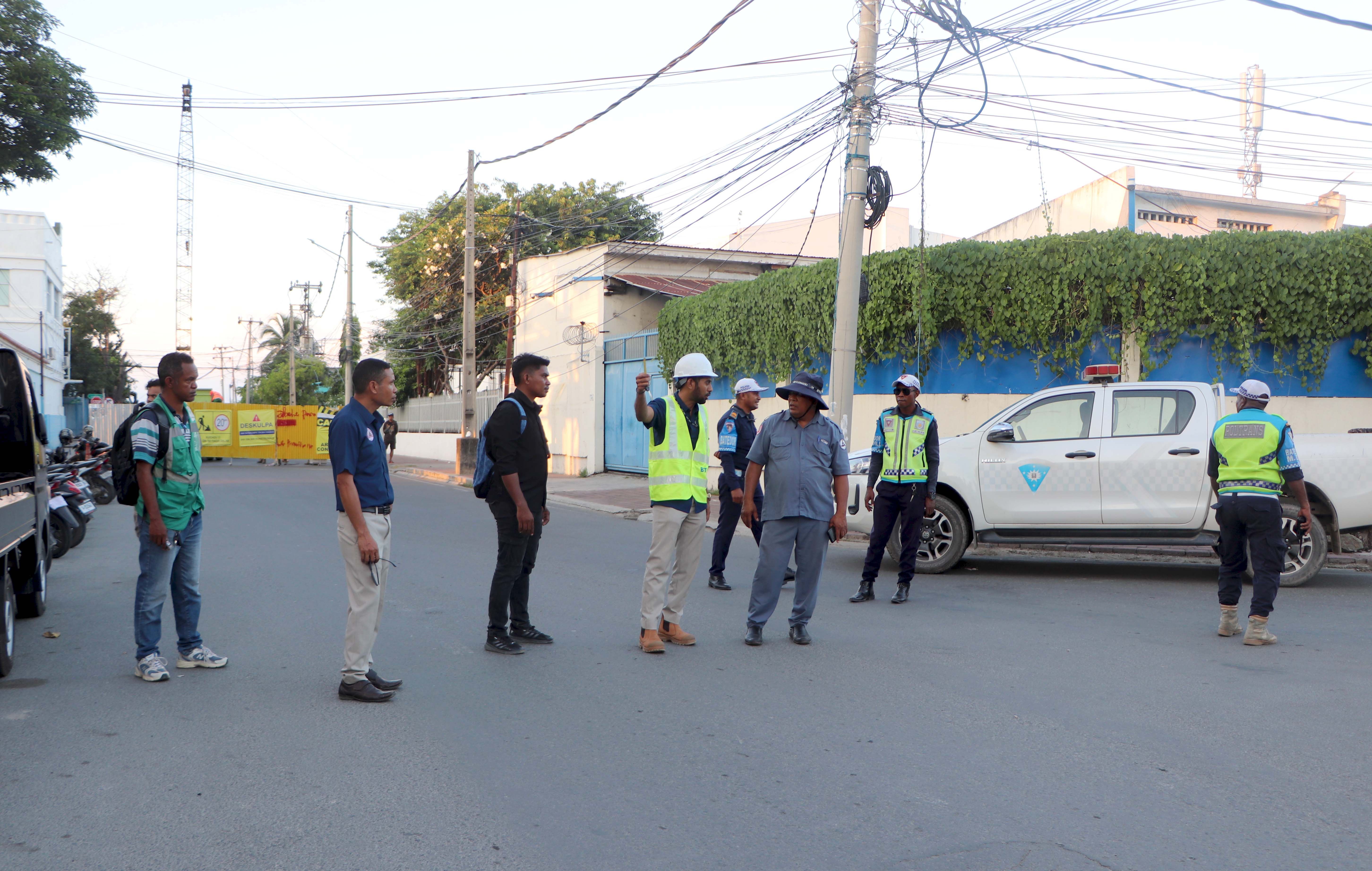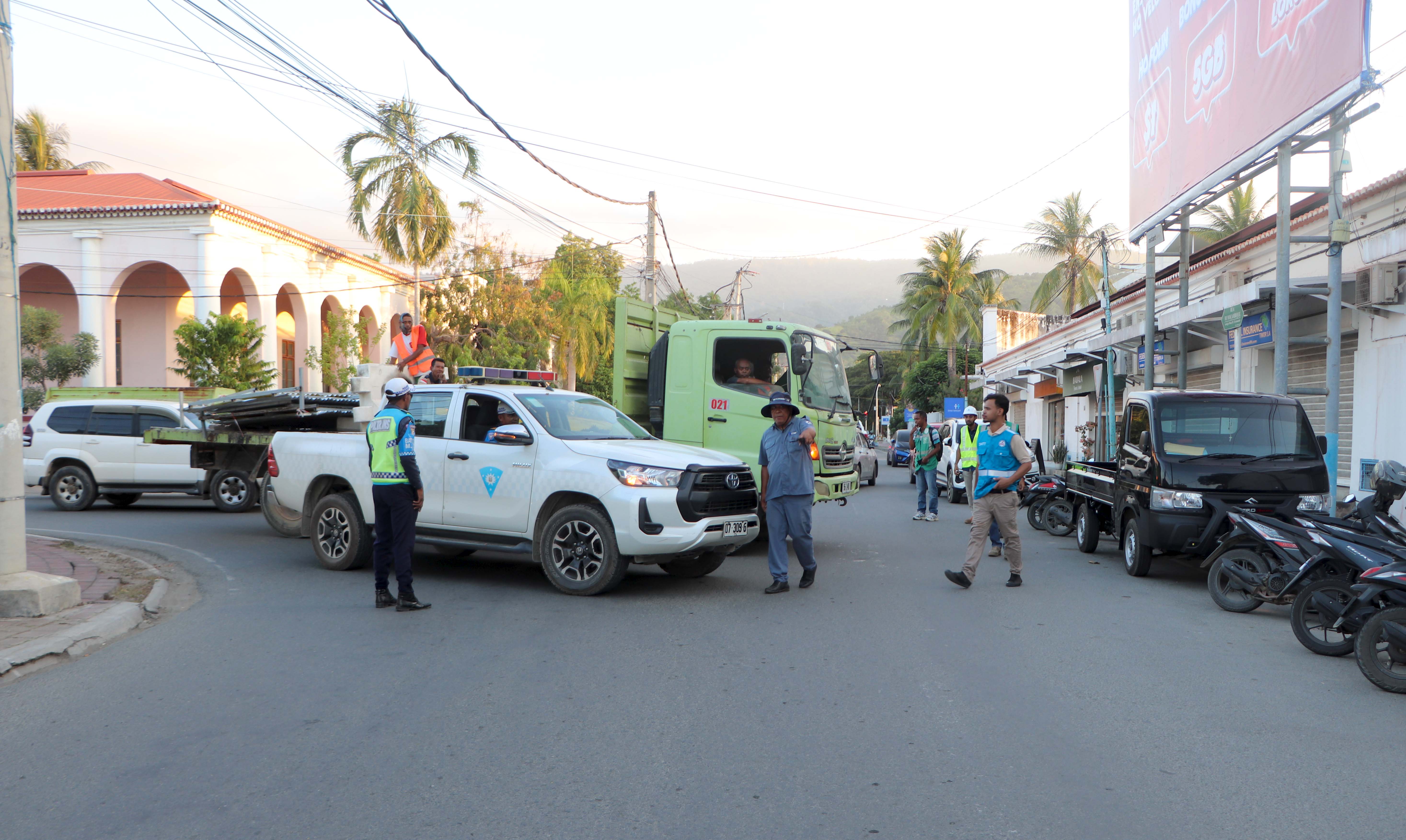 ๐๐ฏ๐๐ซ๐๐ข๐ซ๐ฎ ๐๐๐๐. Ekipa DEI Bee Timor-Leste, Empreza Públika (BTL, E.P) no MOP akompaña parte Diresaun Nasionál Transporte Terrestre (DNTT) no PNTL liu-liu Polísia Unidade Tránzitu Munisípiu Díli, hahú desviu dalan temporáriu hosi diresaun BNU nian bá Colmera nomos hosi diresaun Liceu nian bá Pateo kruzamentu Colmera, ligadu ho servisu projetu konstrusaun drenazen D4 nian, hosi Porto Díli bá Caicoli.