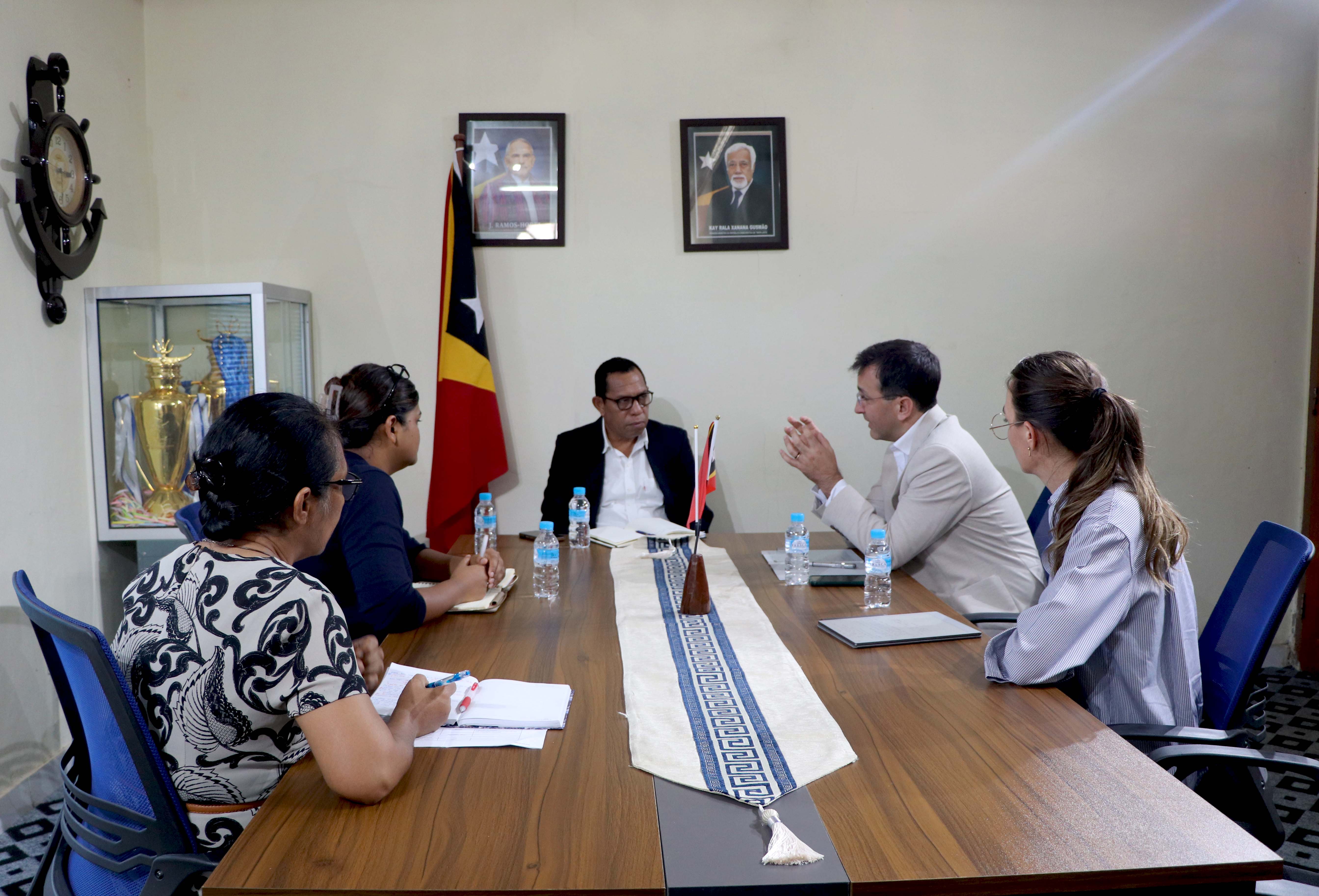 Díli, 12/05/2025, Prezidente Komisaun Ezekutiva, Bee Timor-Leste, Empreza Públika (BTL, E.P), Sr. Gustavo da Cruz, enkontru ekipa JICA ho Boston Consulting Group, reuniaun ne’e hala’o iha Salaun Ezekutivu BTL, E.P, Caicoli.