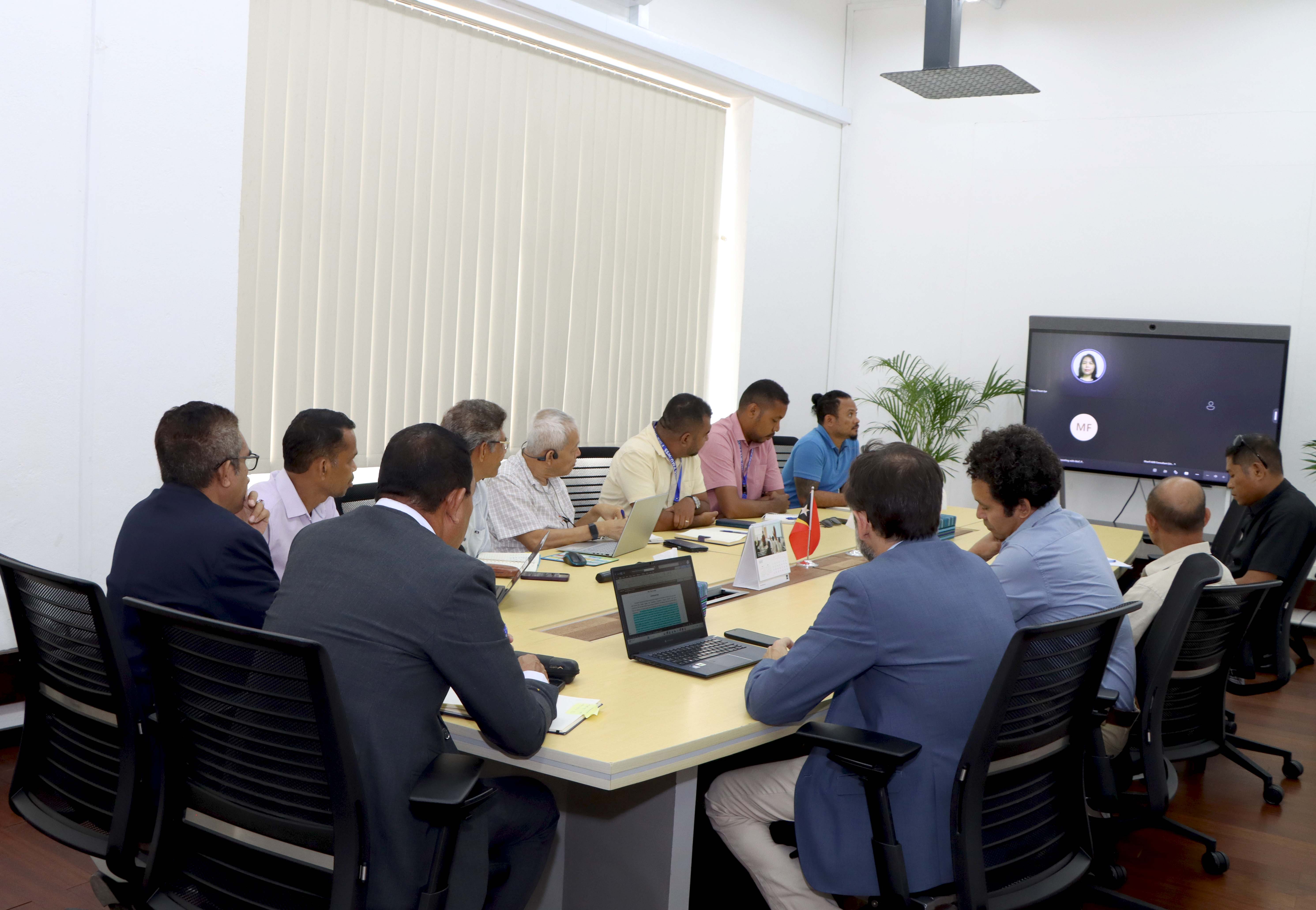 𝐃𝐢́𝐥𝐢, 𝟏𝟔 𝐌𝐚𝐫𝐬𝐮 𝟐𝟎𝟐𝟔. Prezidente Komisaun Ezekutiva (KE) BTL, E.P, Gustavo da Cruz partisipa enkontru ho misaun ADB Timor-Leste nomos ADB iha diáspora via vídeo konferénsia, iha salaun enkontru ADB Timor-Leste (TL) Resident Mission, Colmera.