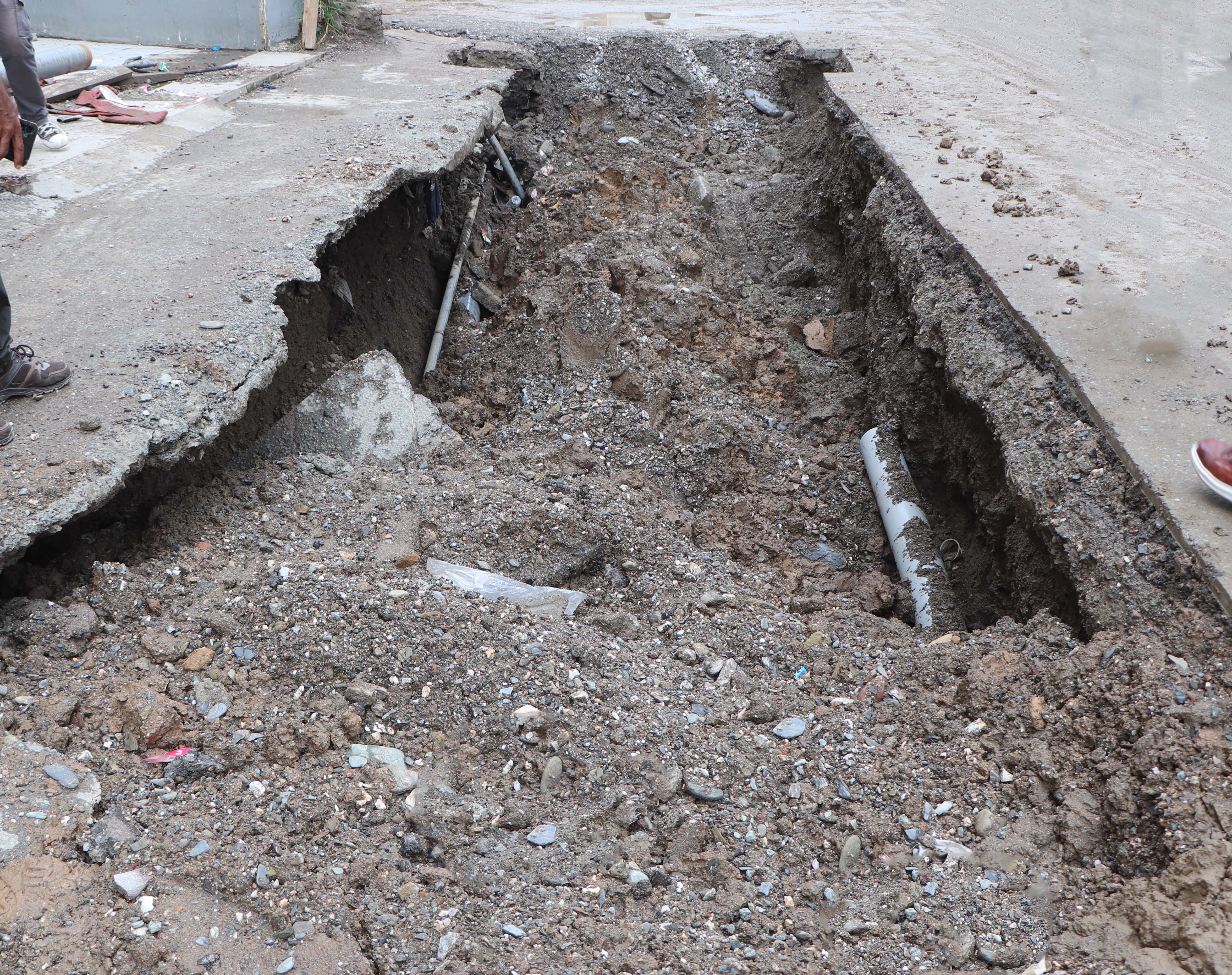 Kanu kanalizasaun ne’ebé kotu ne’e, kauza hosi kompañia ne’ebé kaer obra alargamentu estrada mak ke’e rai, hodi kona kanu, nune’e rezulta liña distribuisaun kotu, hodi afeta fornesimentu bee moos ba konsumidór sira ne’ebé durante ne’e asesu bee hosi kanu refere.