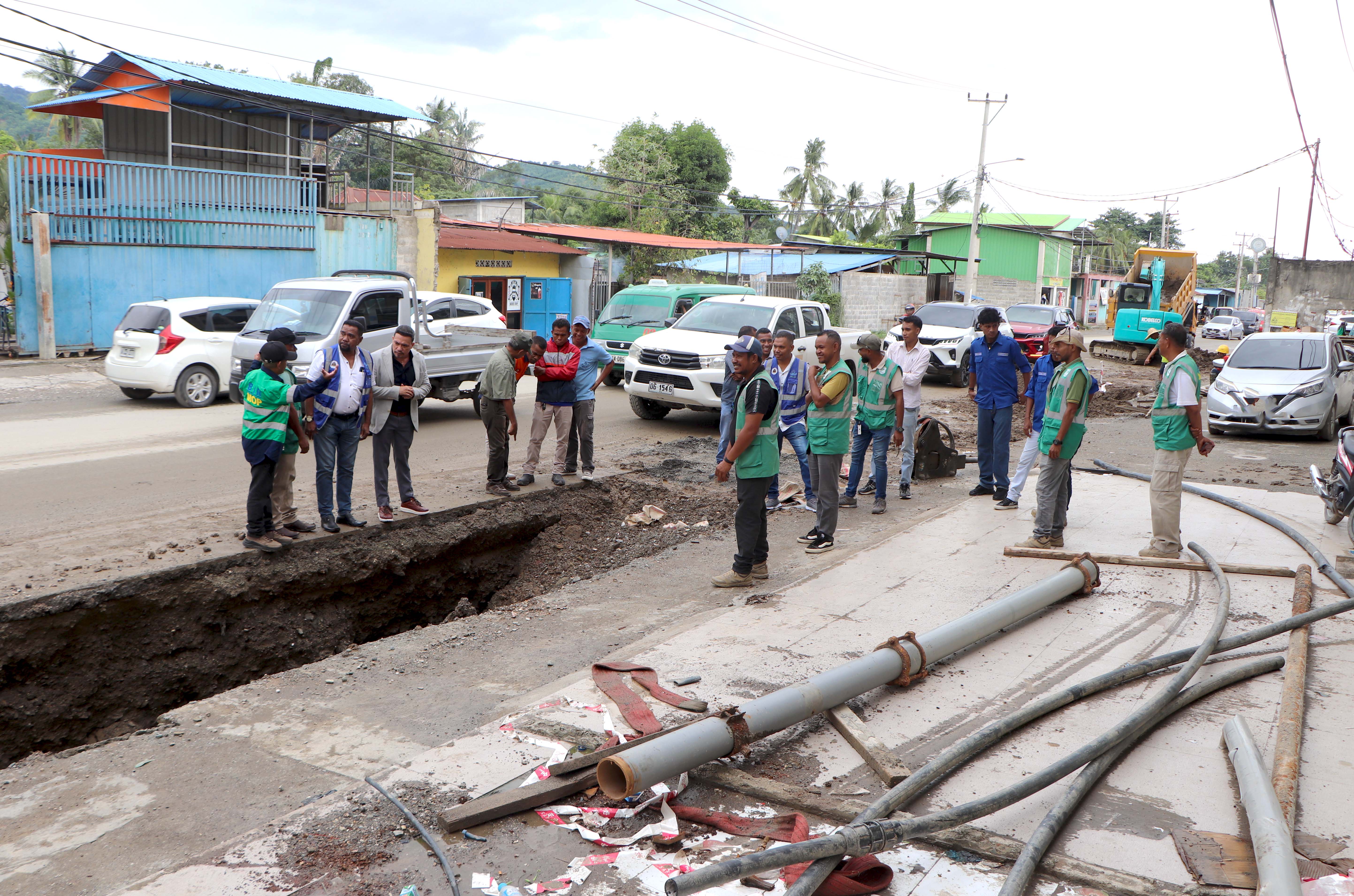 ๐๐ขฬ๐ฅ๐ข, ๐๐ ๐๐๐ง๐๐ข๐ซ๐ฎ ๐๐๐๐. Vise-Prezidente Komisaun Ezekutiva (KE) Bee Timor-Leste, Empreza Públika (BTL, E.P) ba Asuntu Tékniku, José Filipe Ximenes Smith ho Vise-Prezidente KE BTL, E.P ba Asuntu Korporativu, Manuel Tomas Amaral de Carvalho akompaña hosi Jestór Operasaun & Manutensaun (OM), Jestór Infraestrutura ho Enjeñeiru DEI observa direta kanu distribuisaun bee ne’ebé afeta hosi projetu alargamentu estrada, iha Becora/Auhun.