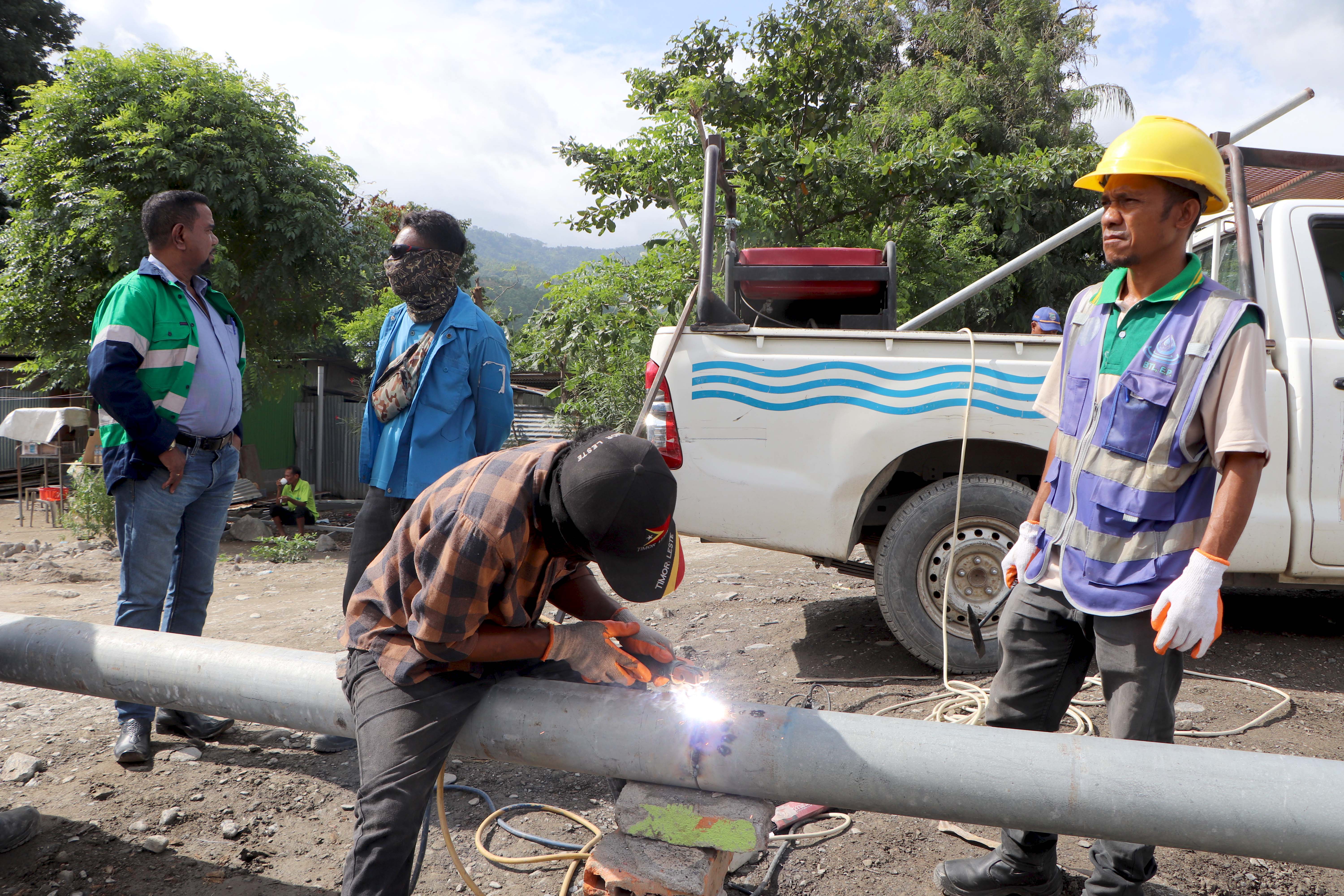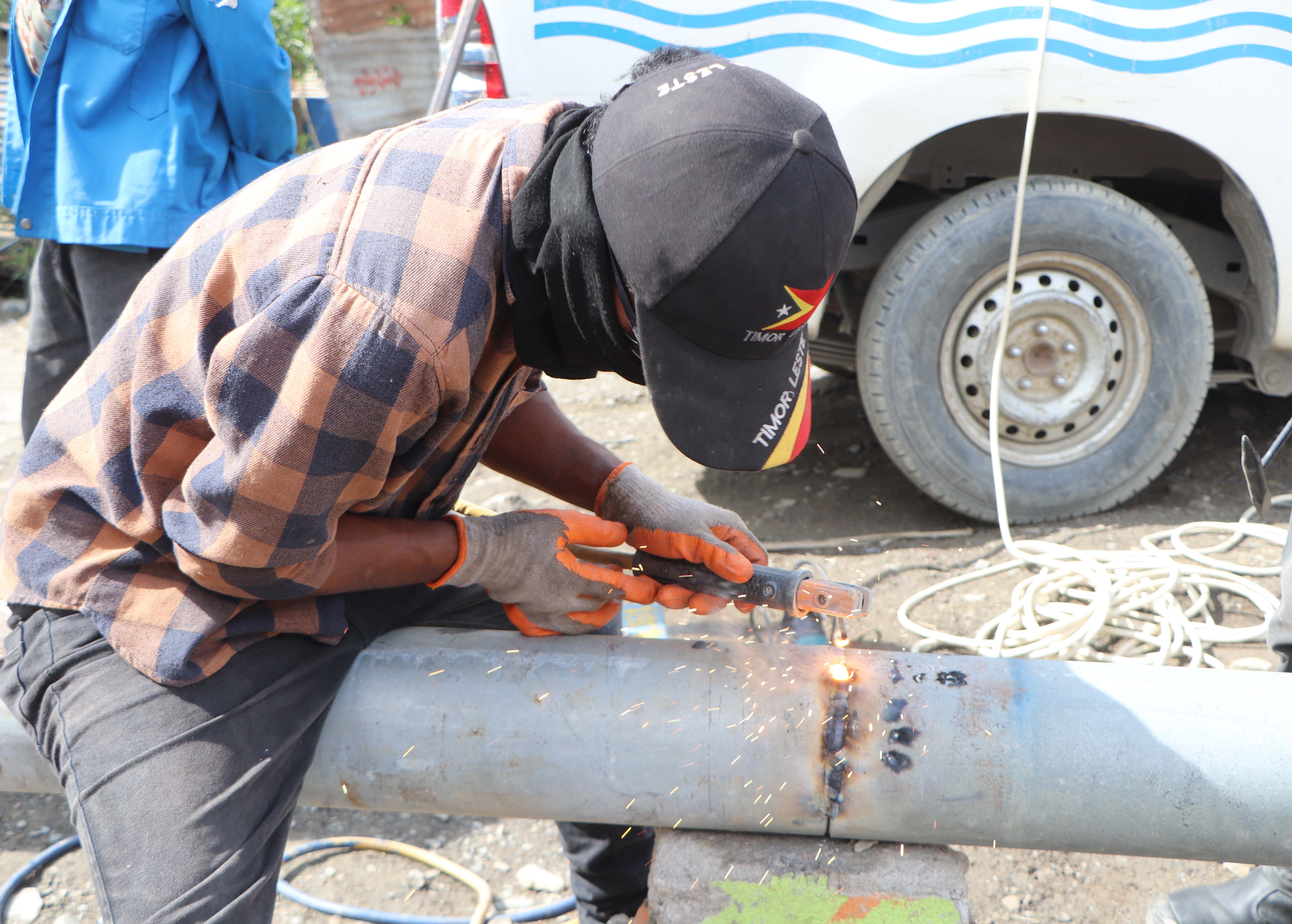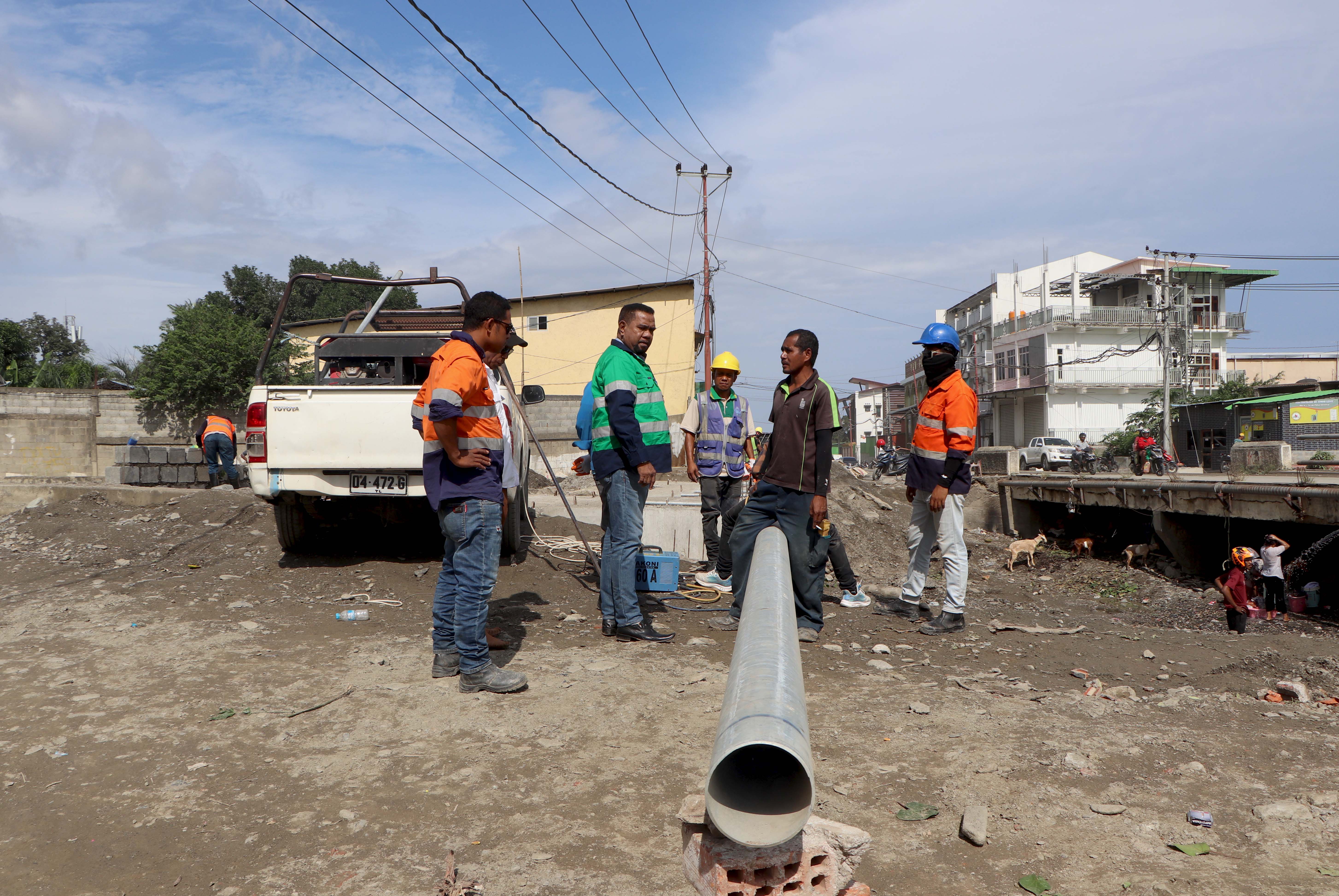 ๐๐ขฬ๐ฅ๐ข, ๐๐ ๐๐๐ง๐๐ข๐ซ๐ฎ ๐๐๐๐. Vise-Prezidente Komisaun Ezekutiva (KE) Bee Timor-Leste, Empreza Públika (BTL, E.P) ba Asuntu Tékniku, José Filipe Ximenes Smith nafatin tun bá terrenu, hodi monitoriza regulár servisu resposta emerjénsia ba instalasaun no solda kanu distribuisaun, iha Becora, ponte Maufelo nian, Postu-administrivu Cristo Rei.