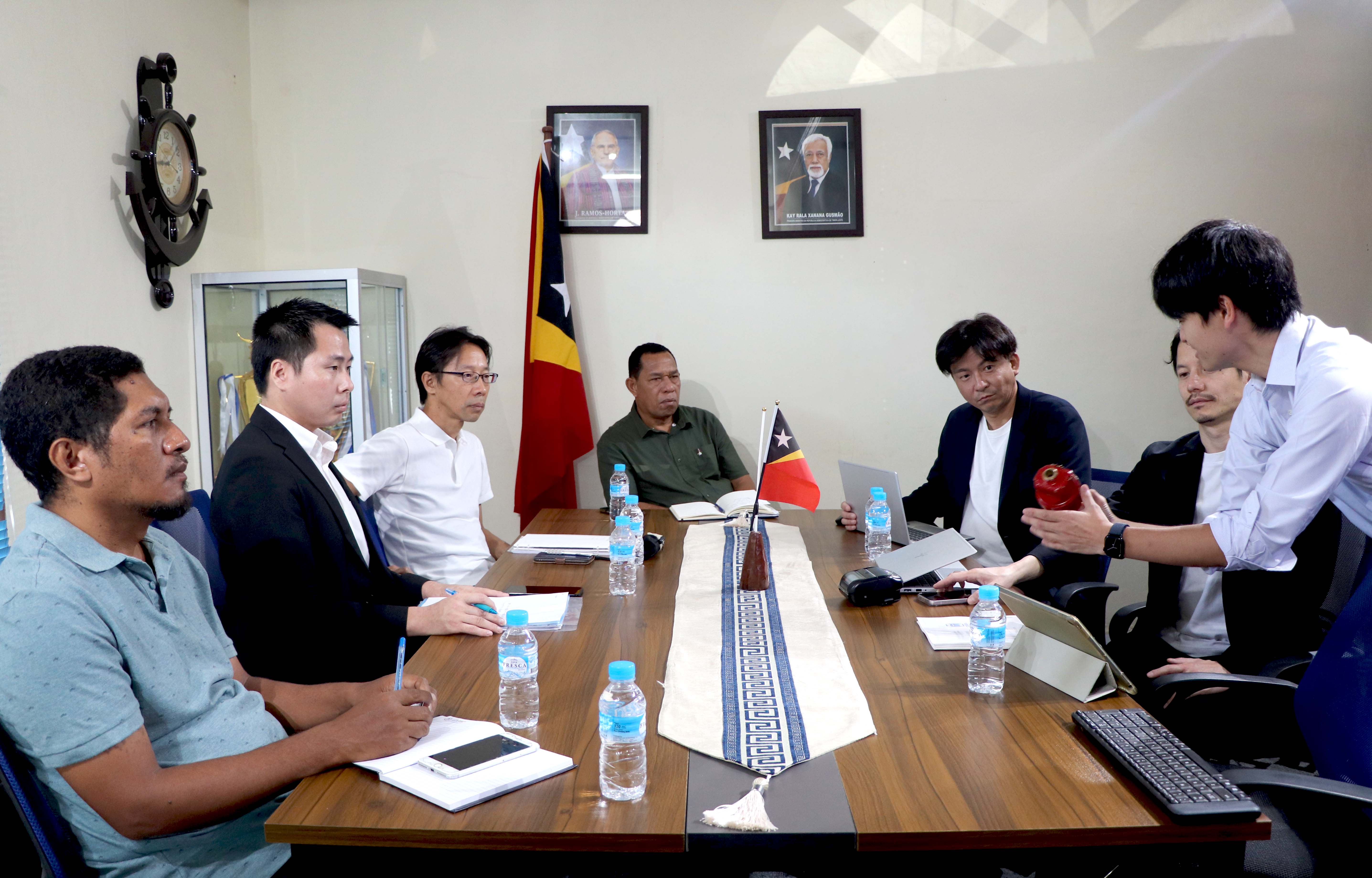 Díli, 14/10/2024, Vise-Prezidente Komisaun Ezekutiva BTL, E.P, ba Asuntu Sistema Bee Saneamentu no Drenajen, Gustavo da Cruz, partisipa enkontru entre EDTL, E.P ho S.E Sekretária Estadu Eletrisidade Bee no Saneamentu, Santos Noronha ho ekipa sira, hodi ko’alia kona-bá komunidade sira, ne’ebé durante ne’e asesu bee hosi sistema kanalizasaun bee moos, maneira ligasaun ilegál ka utiliza bomba eletrika, sorumutu ne’e rasik, hala’o iha Salaun SEEAS, Caicoli.